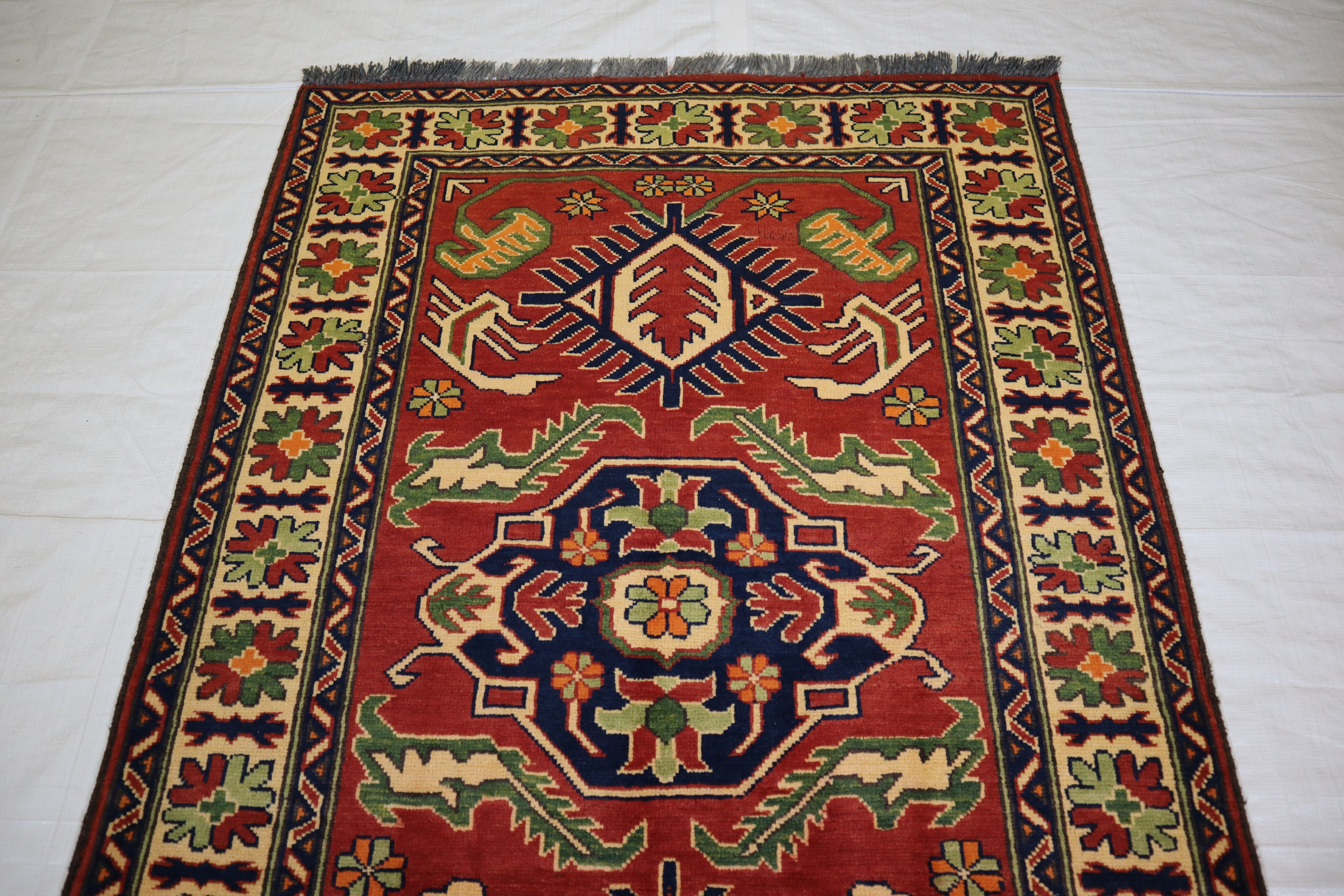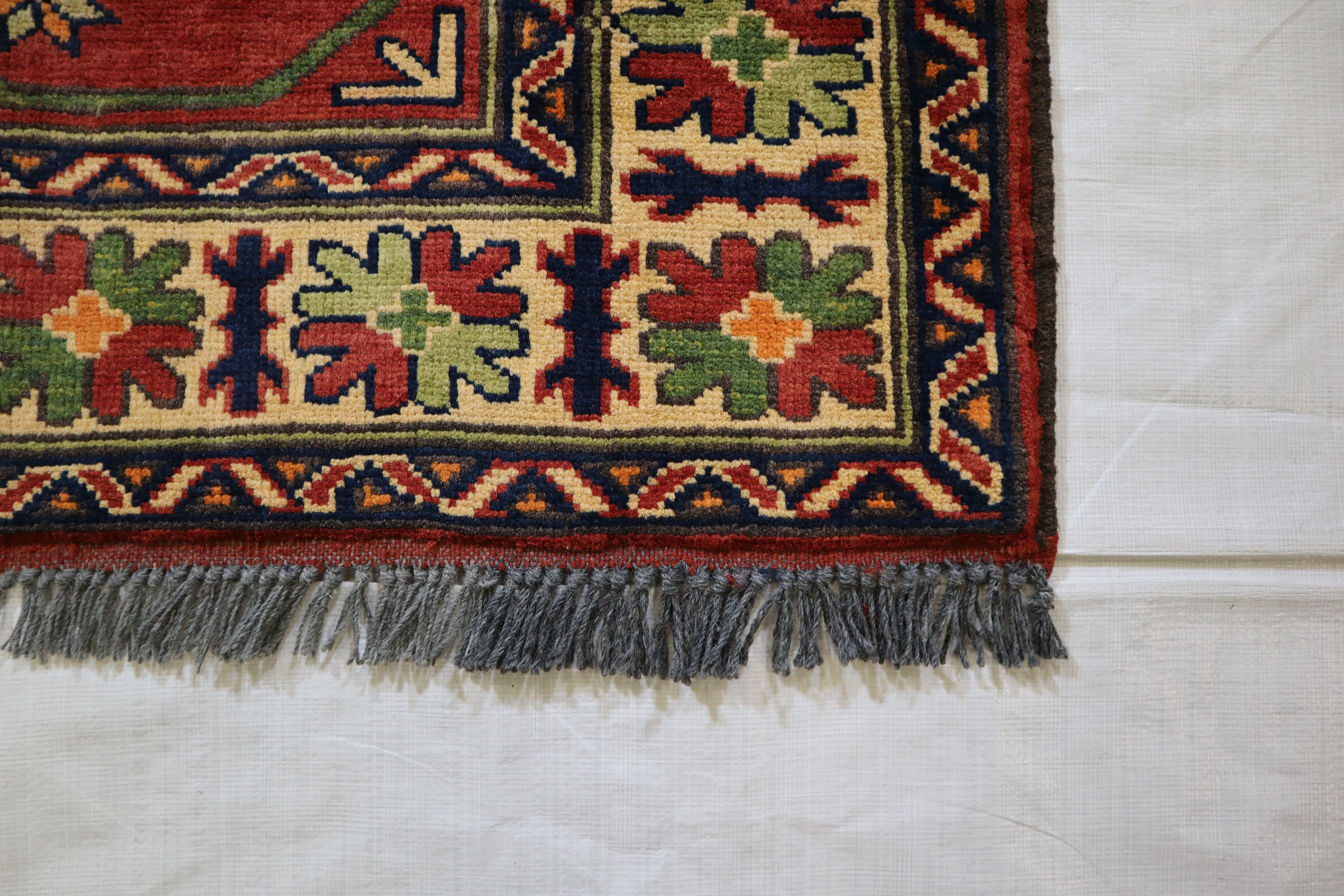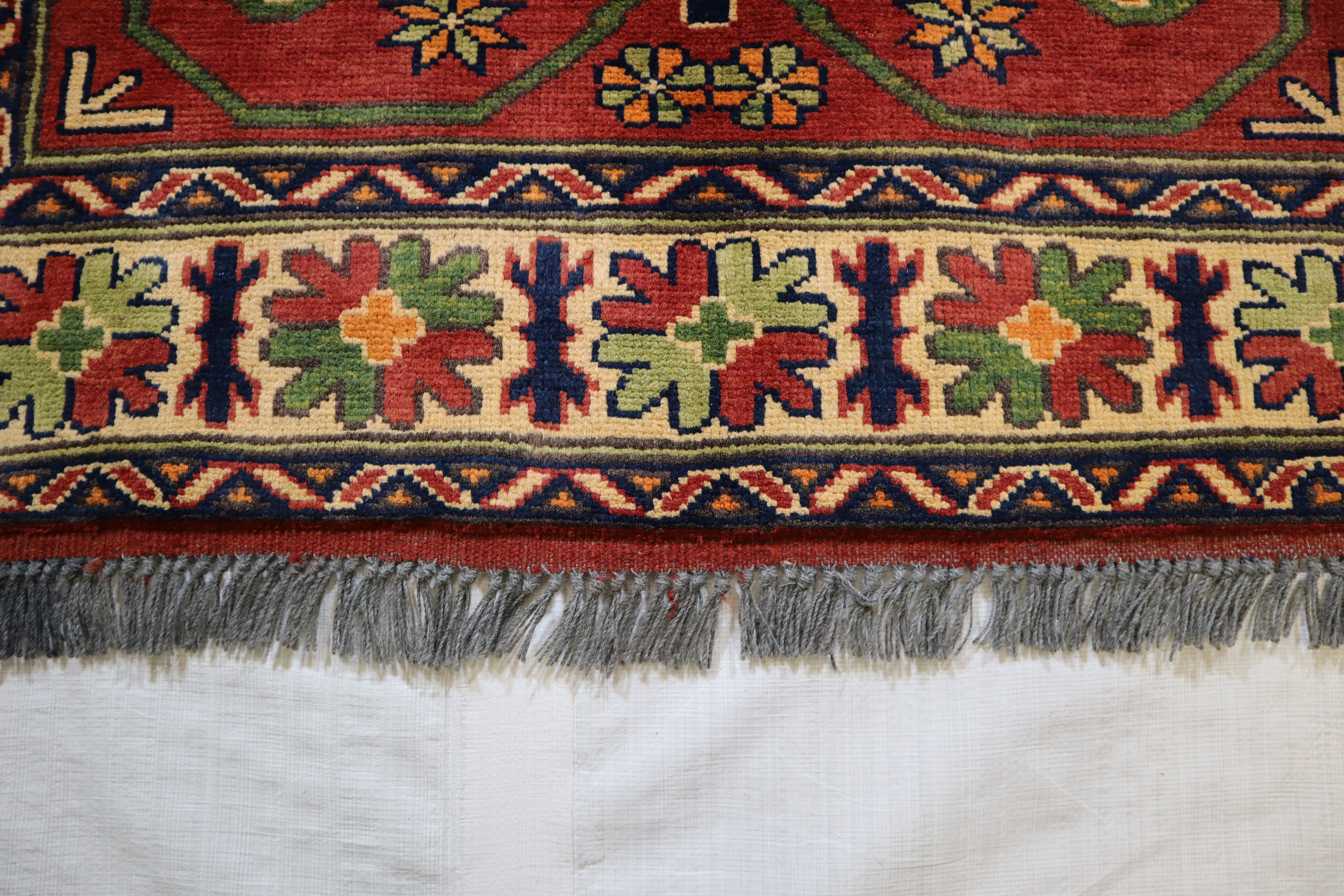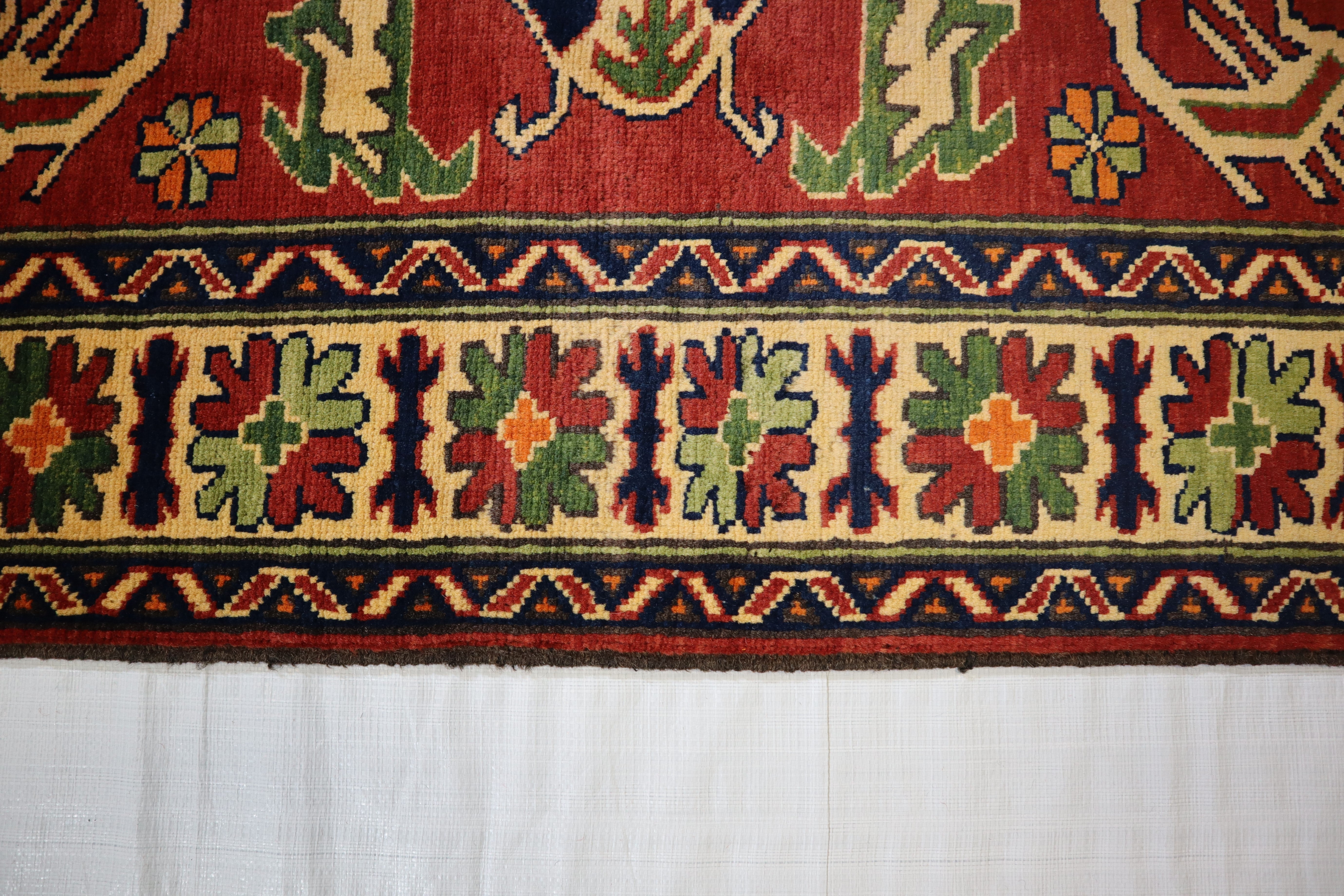 This rug is in an excellent condition. Nice colors and patterning. Very natural wool and super colors.
