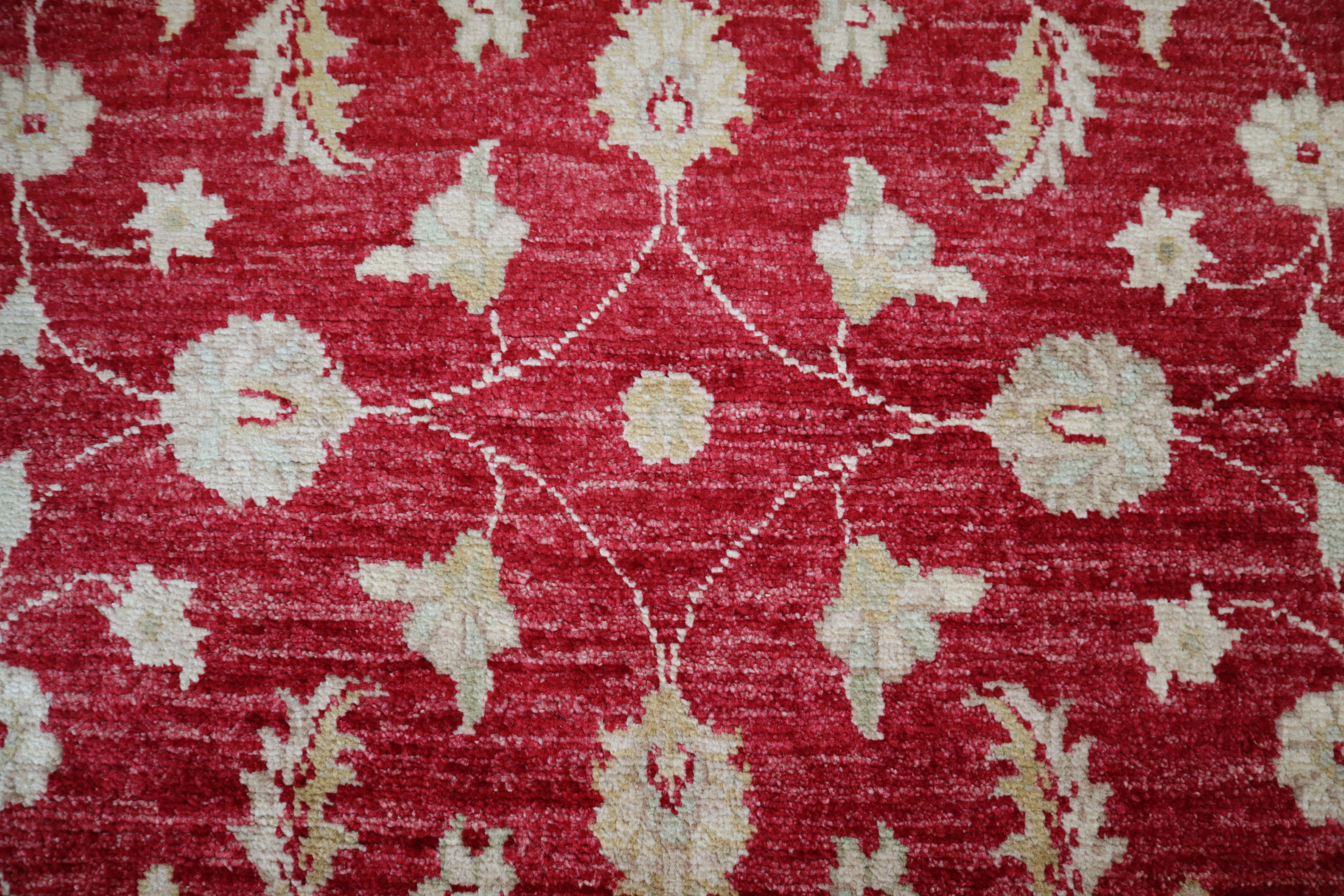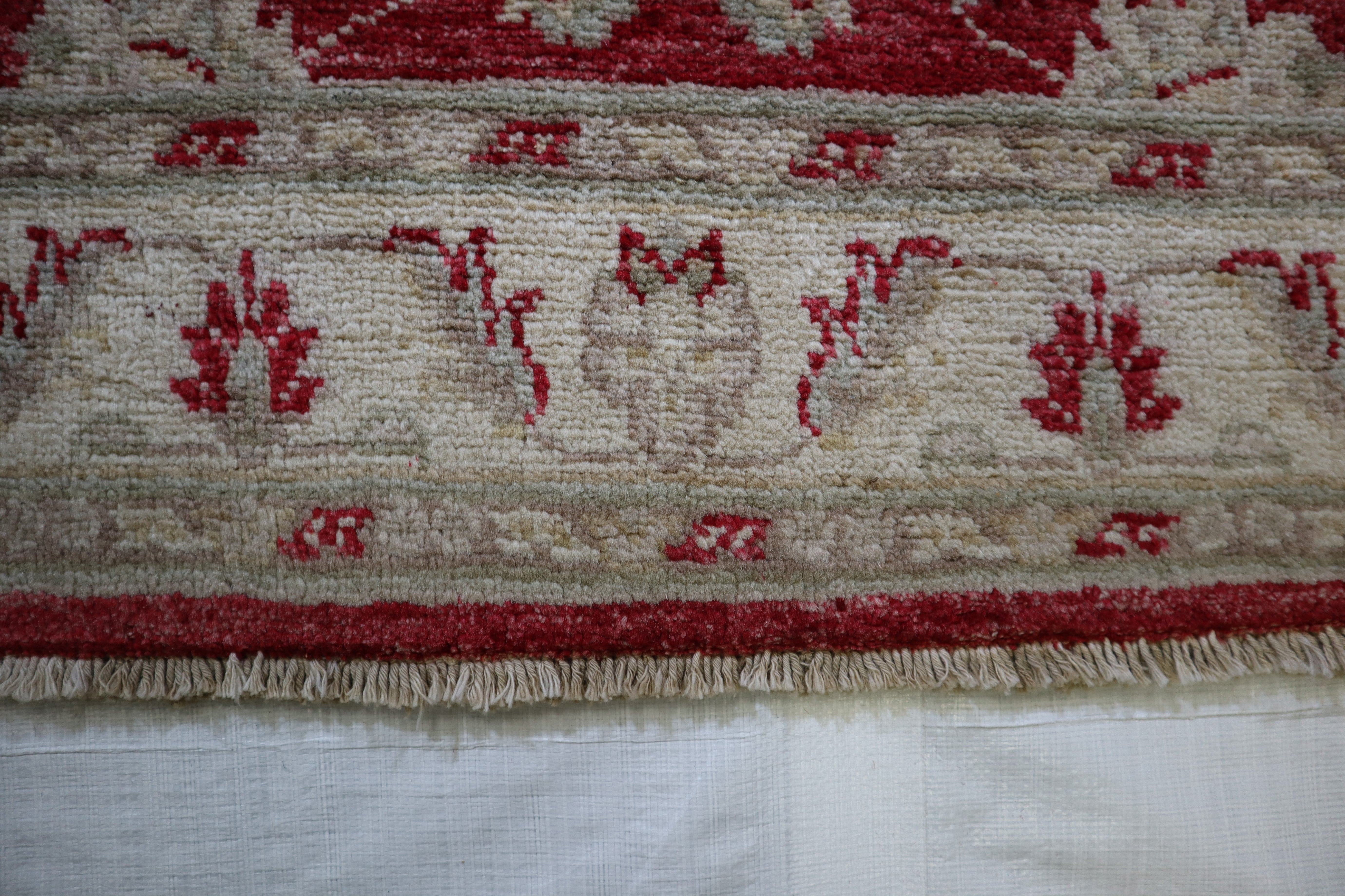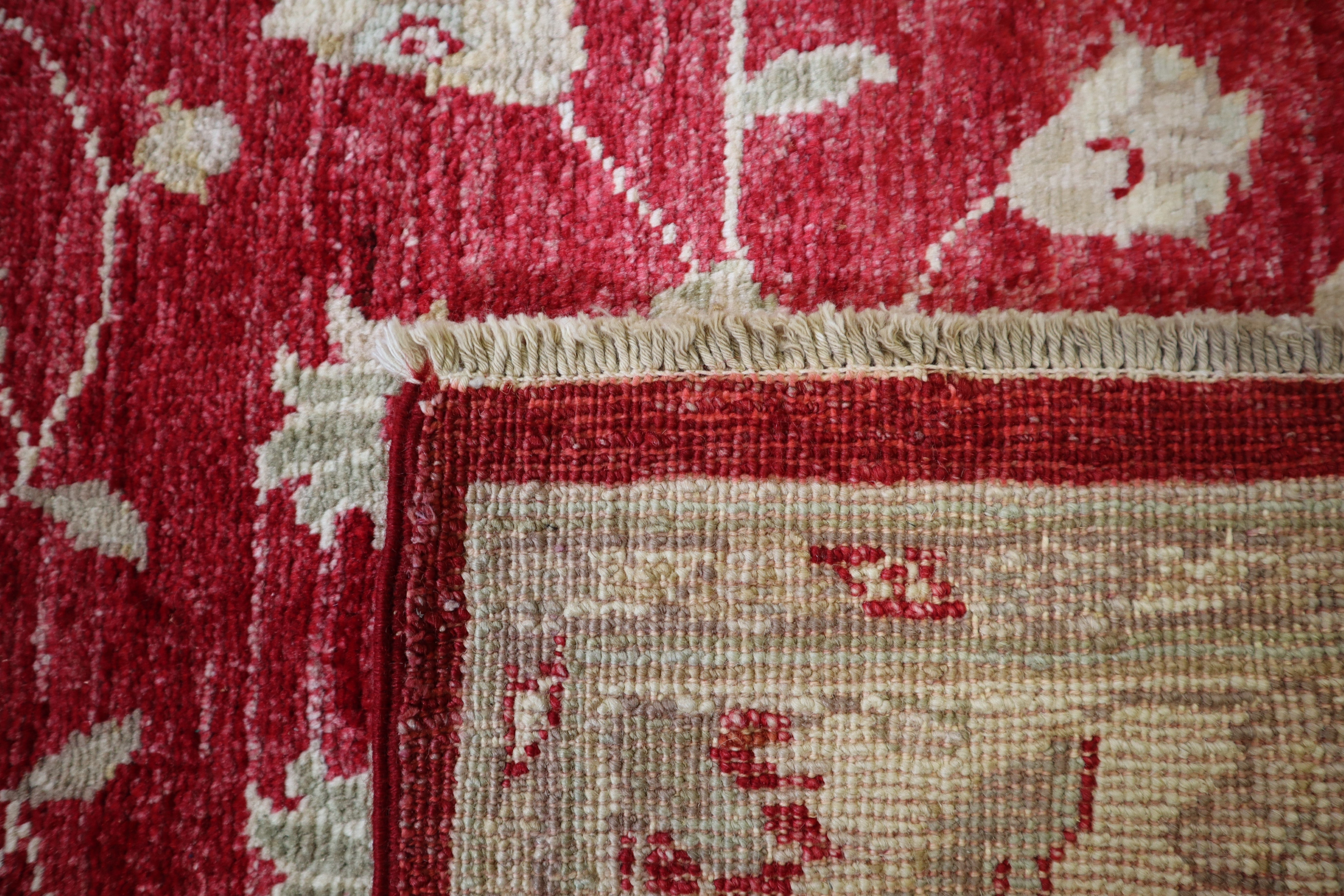 This beautiful hand-knotted rug is made with wool.