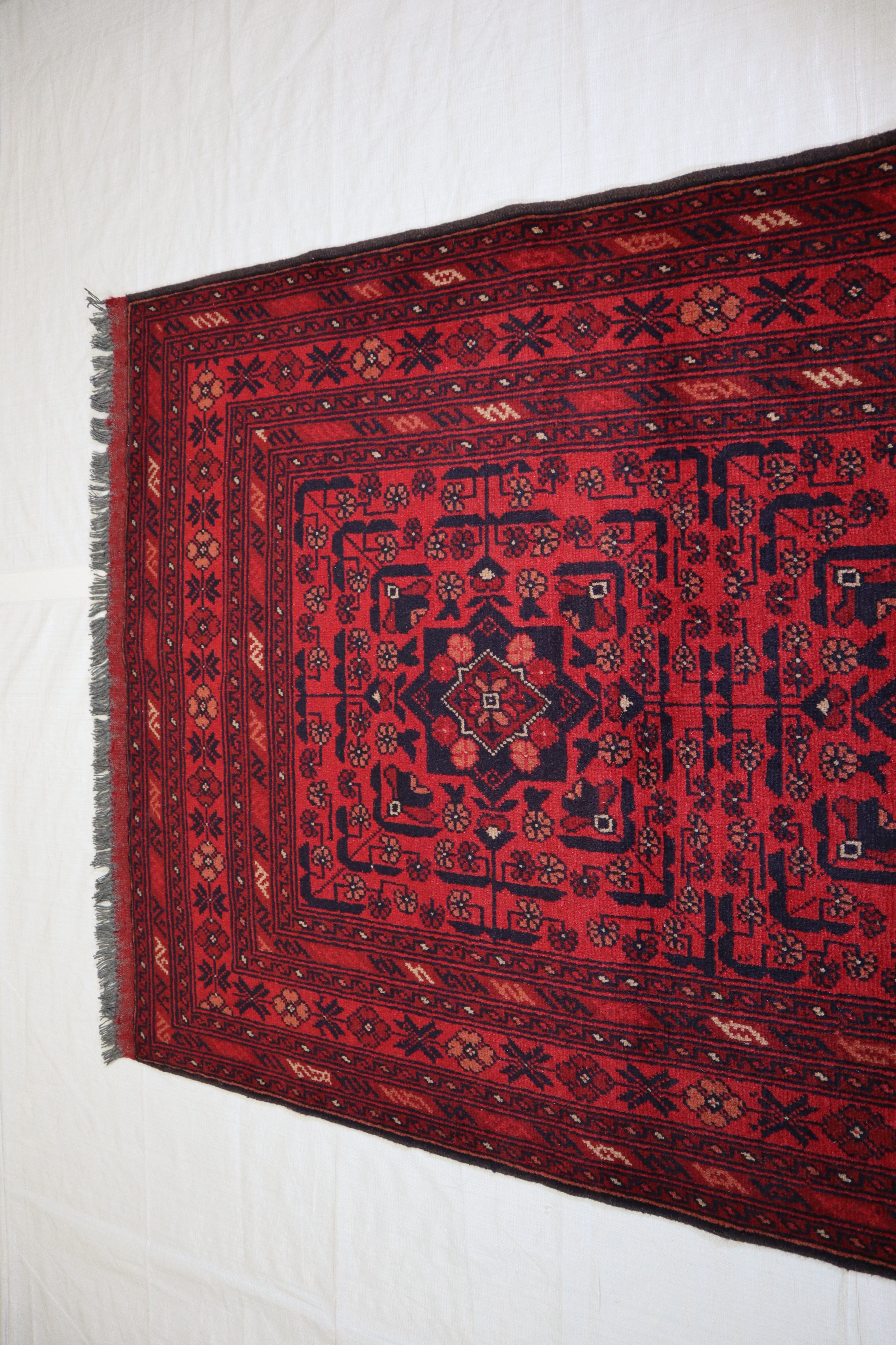 This rug is in an excellent condition. Nice colors and patterning. Very natural wool and super colors.