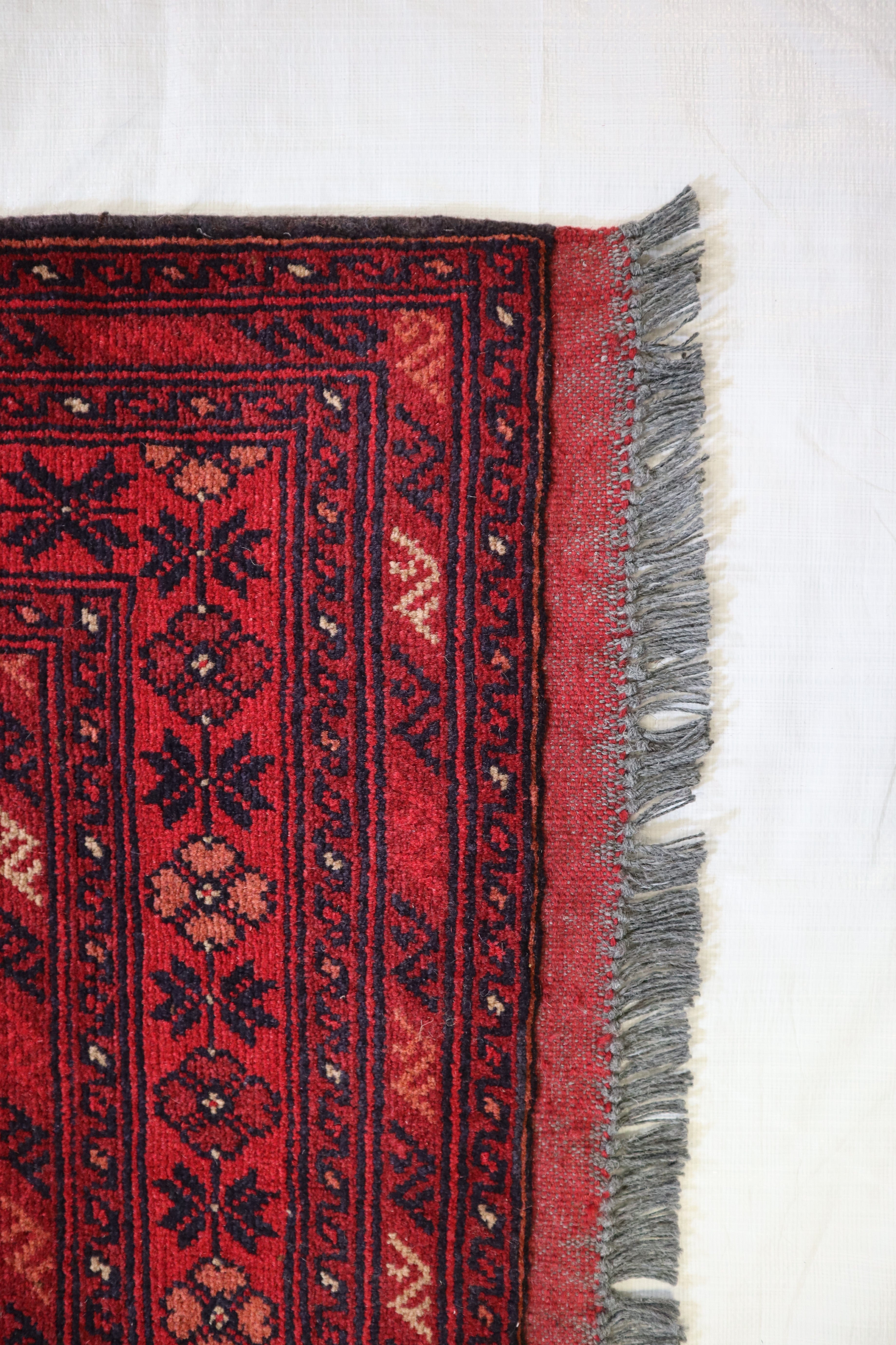 This beautiful handmade rug is made with wool.