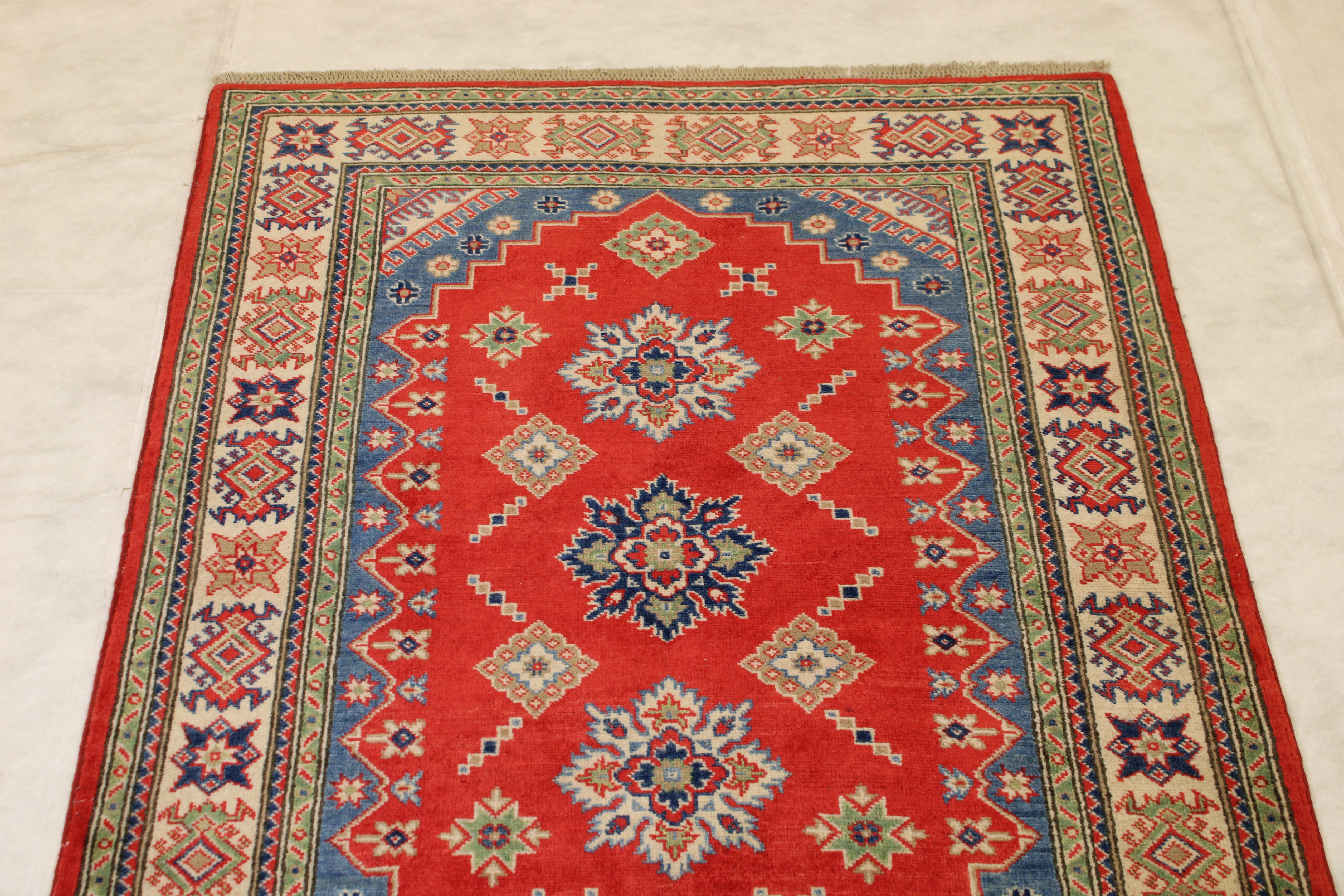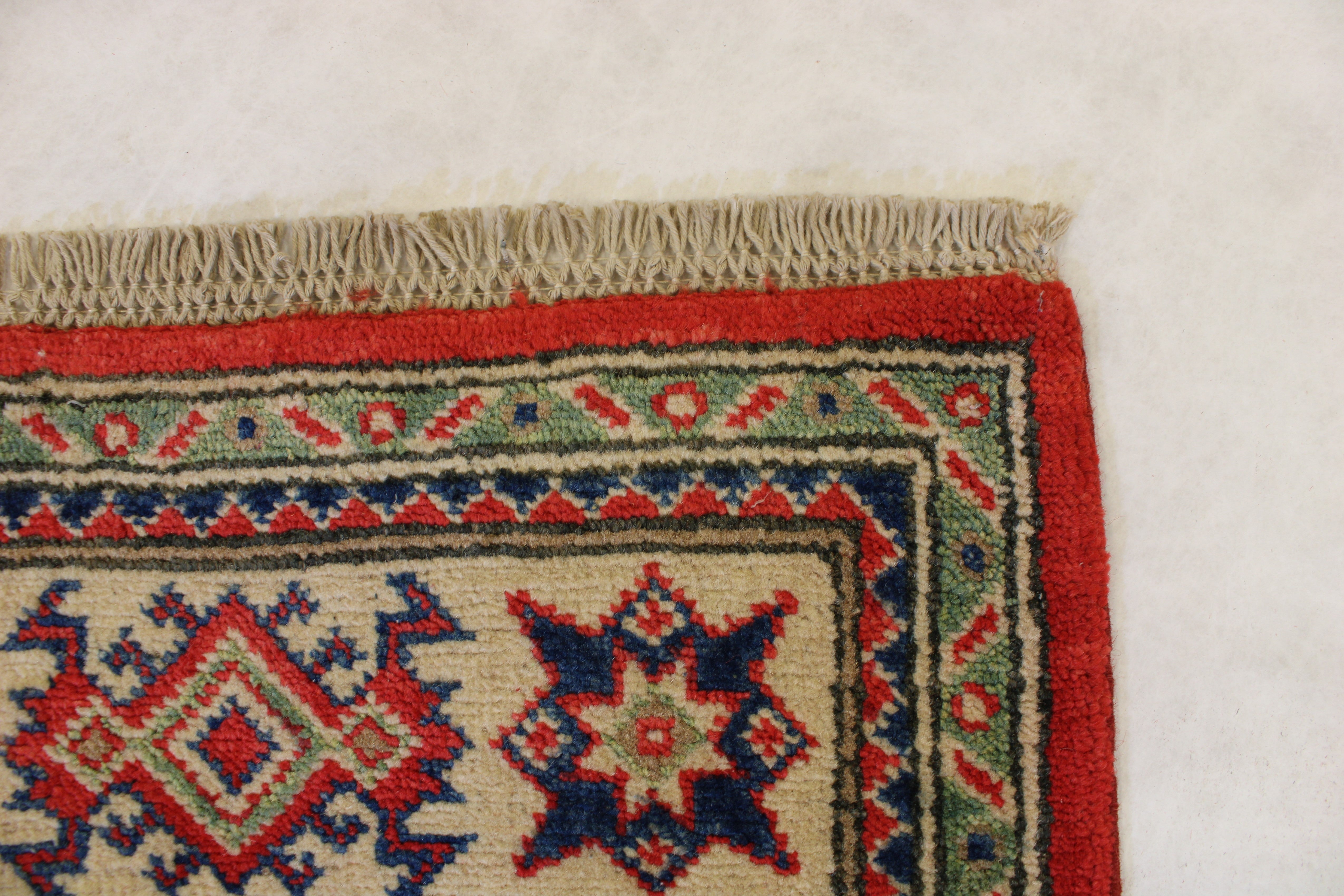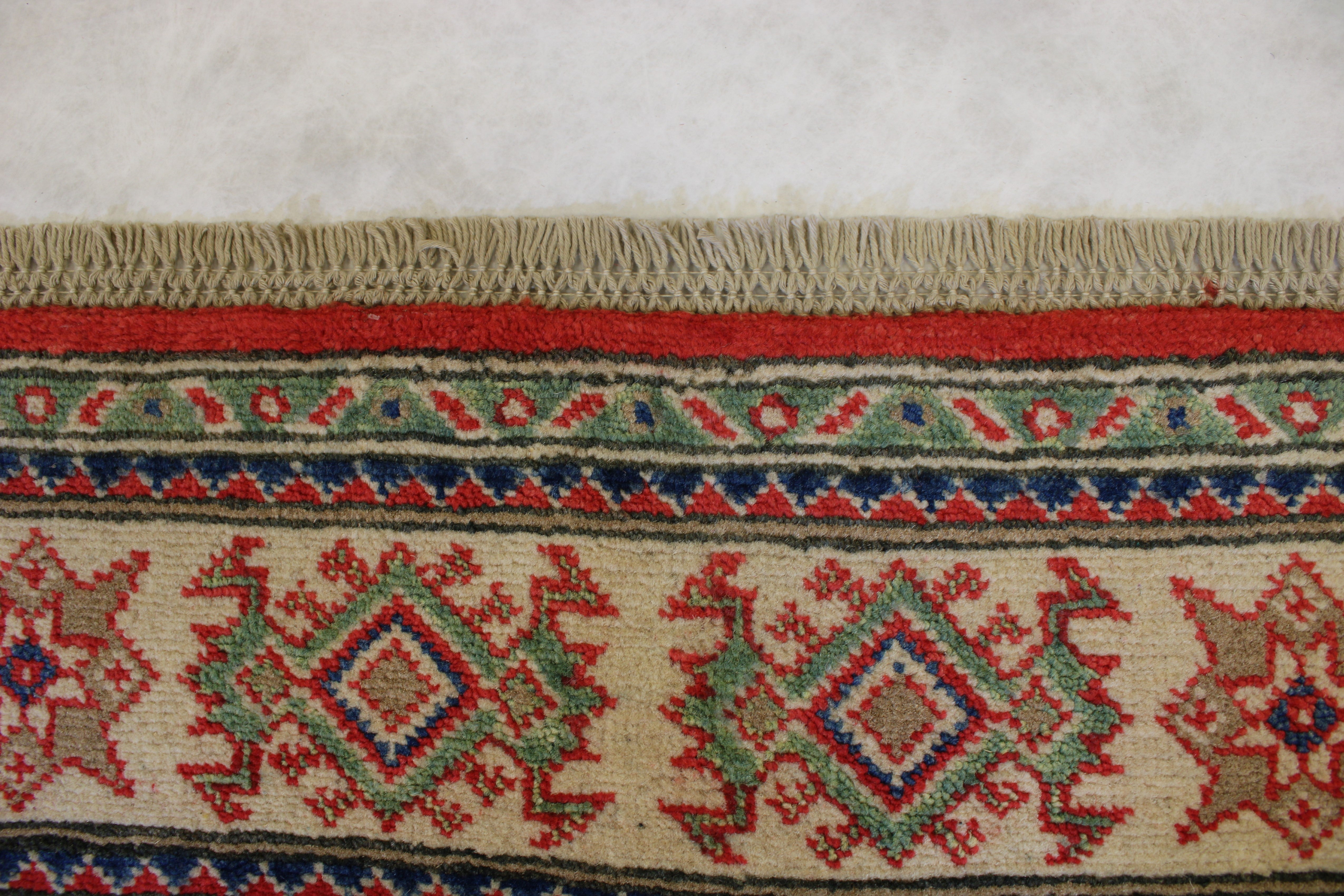 This rug is in an excellent condition. Nice colors and patterning. Very natural wool and super colors.