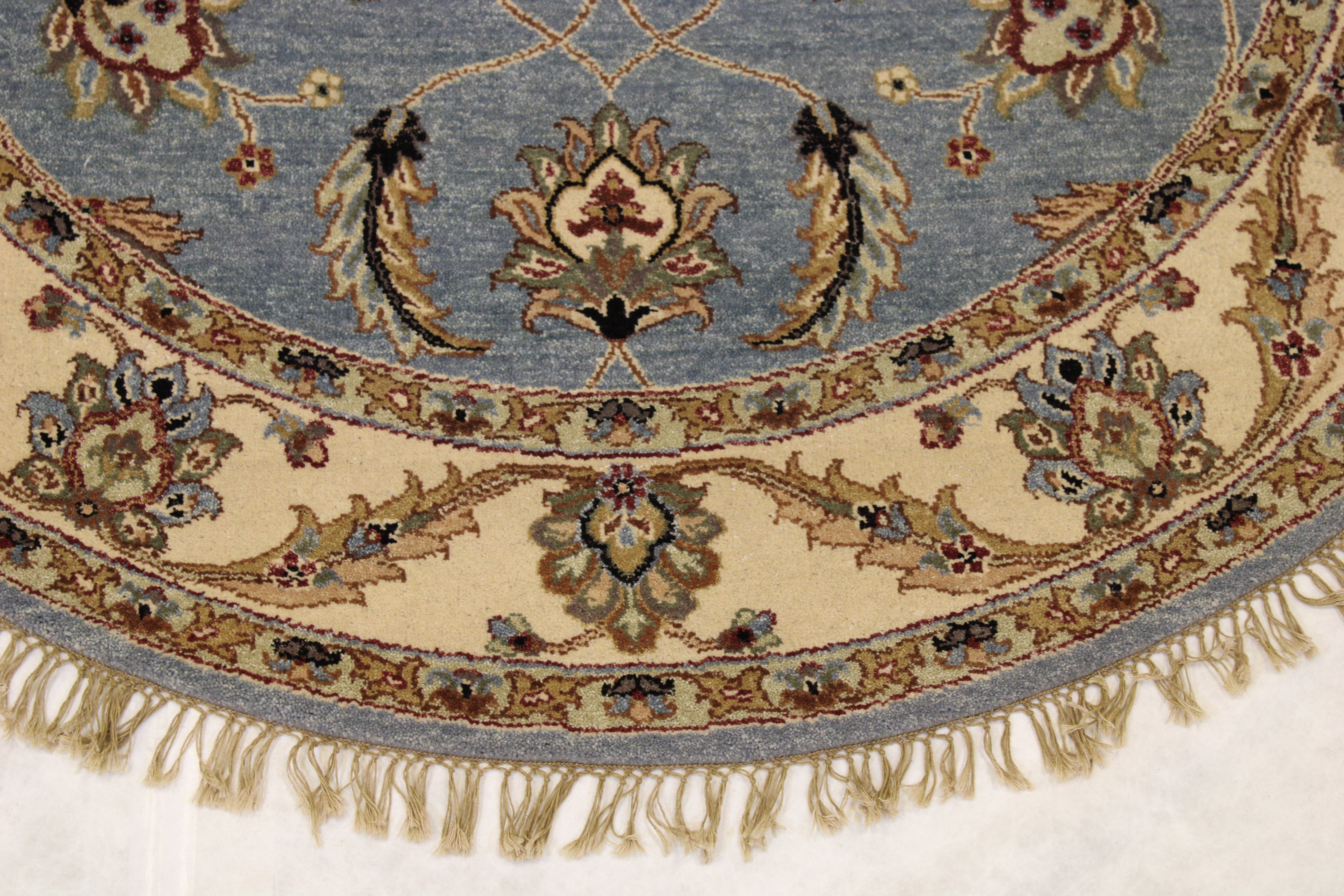 This beautiful hand-knotted rug is made with wool.