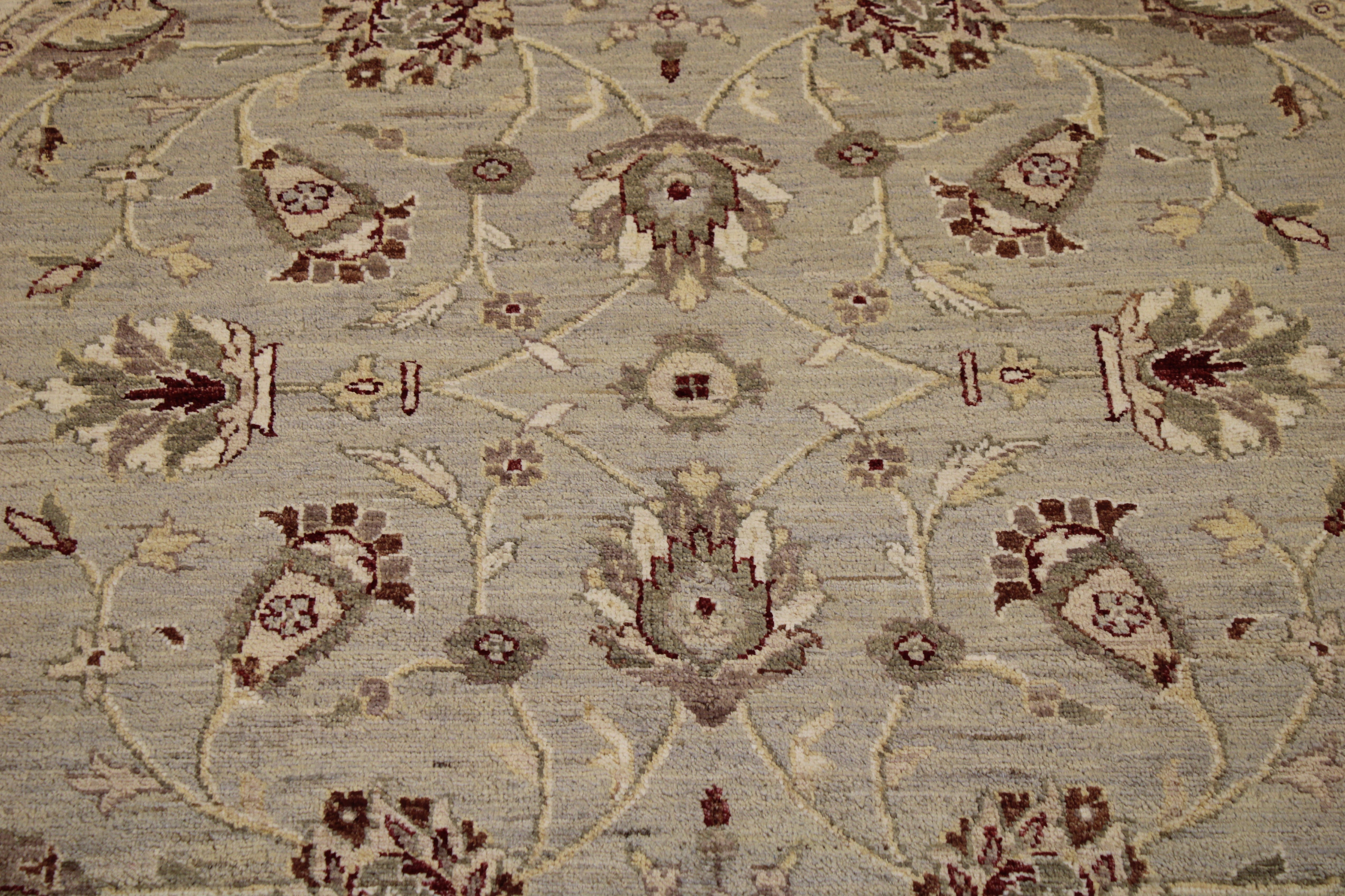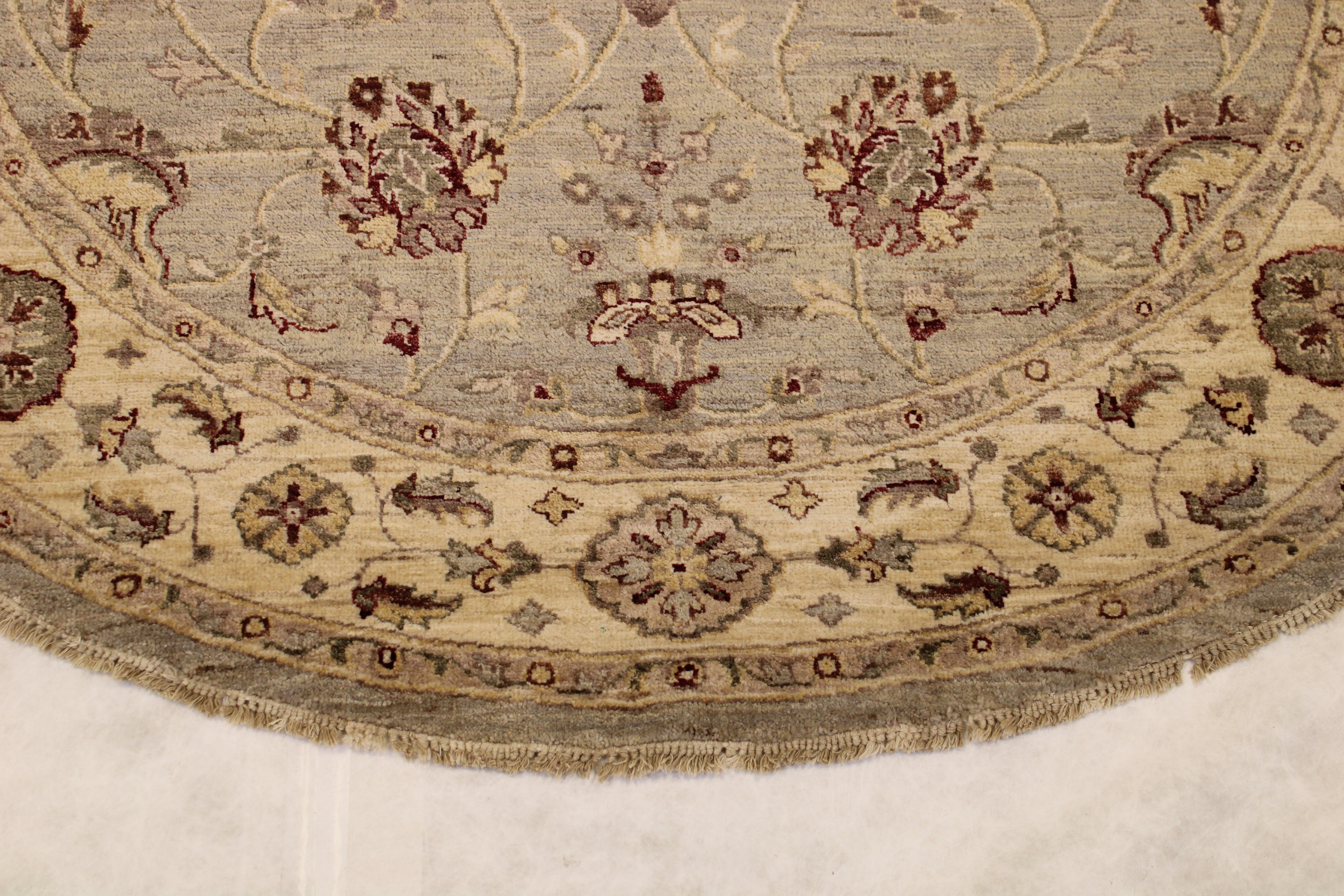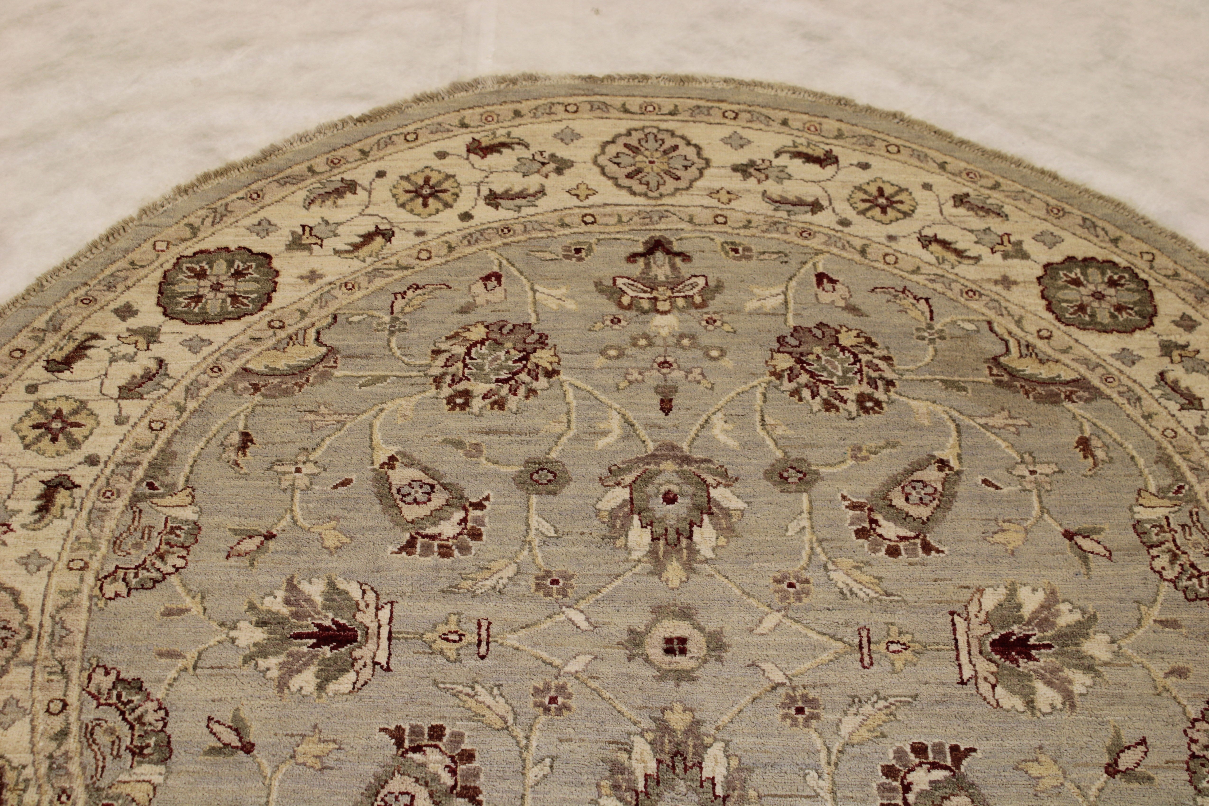 This beautiful hand-knotted round rug is made with natural wool.