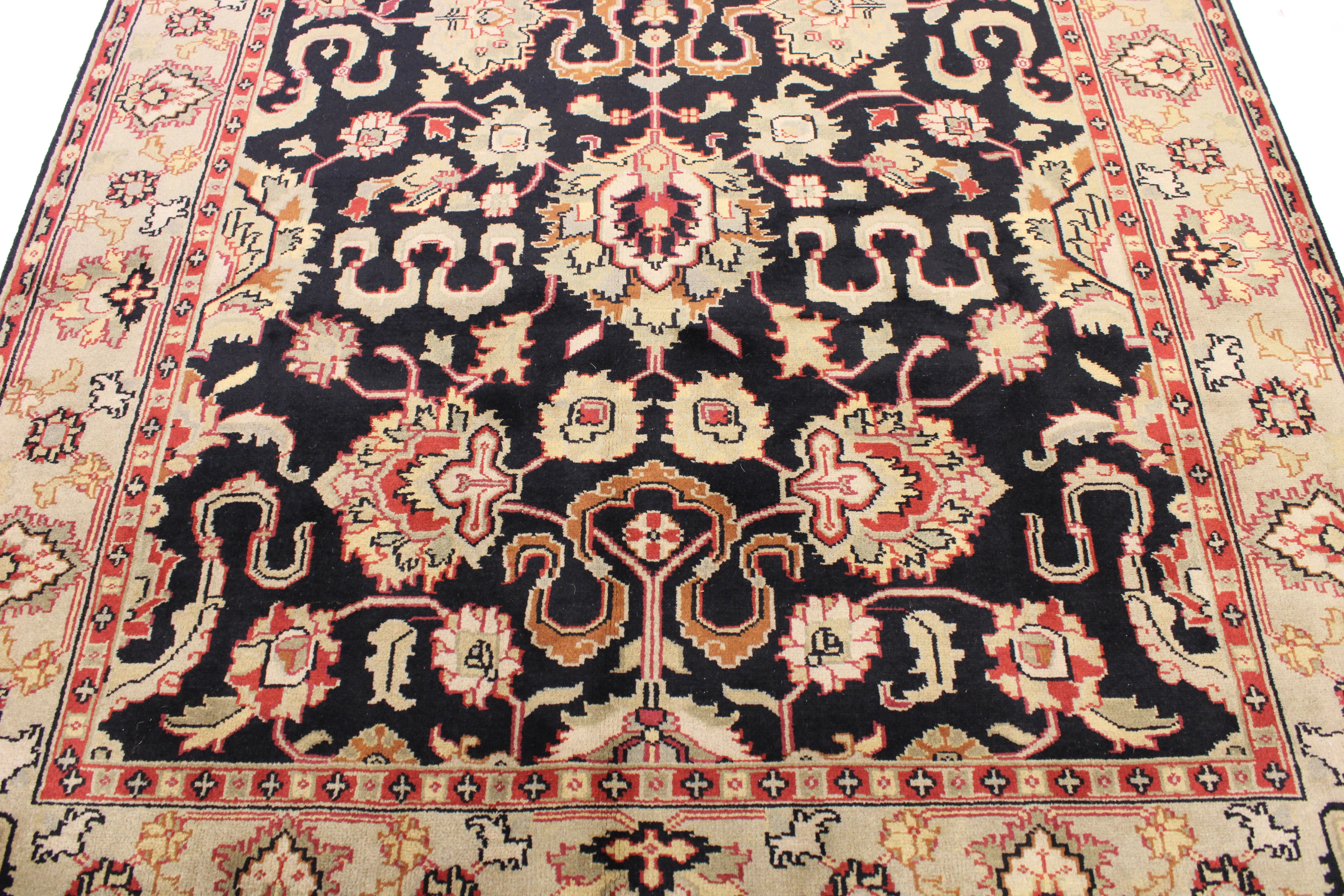 This beautiful hand-knotted rug is made with 100% wool.