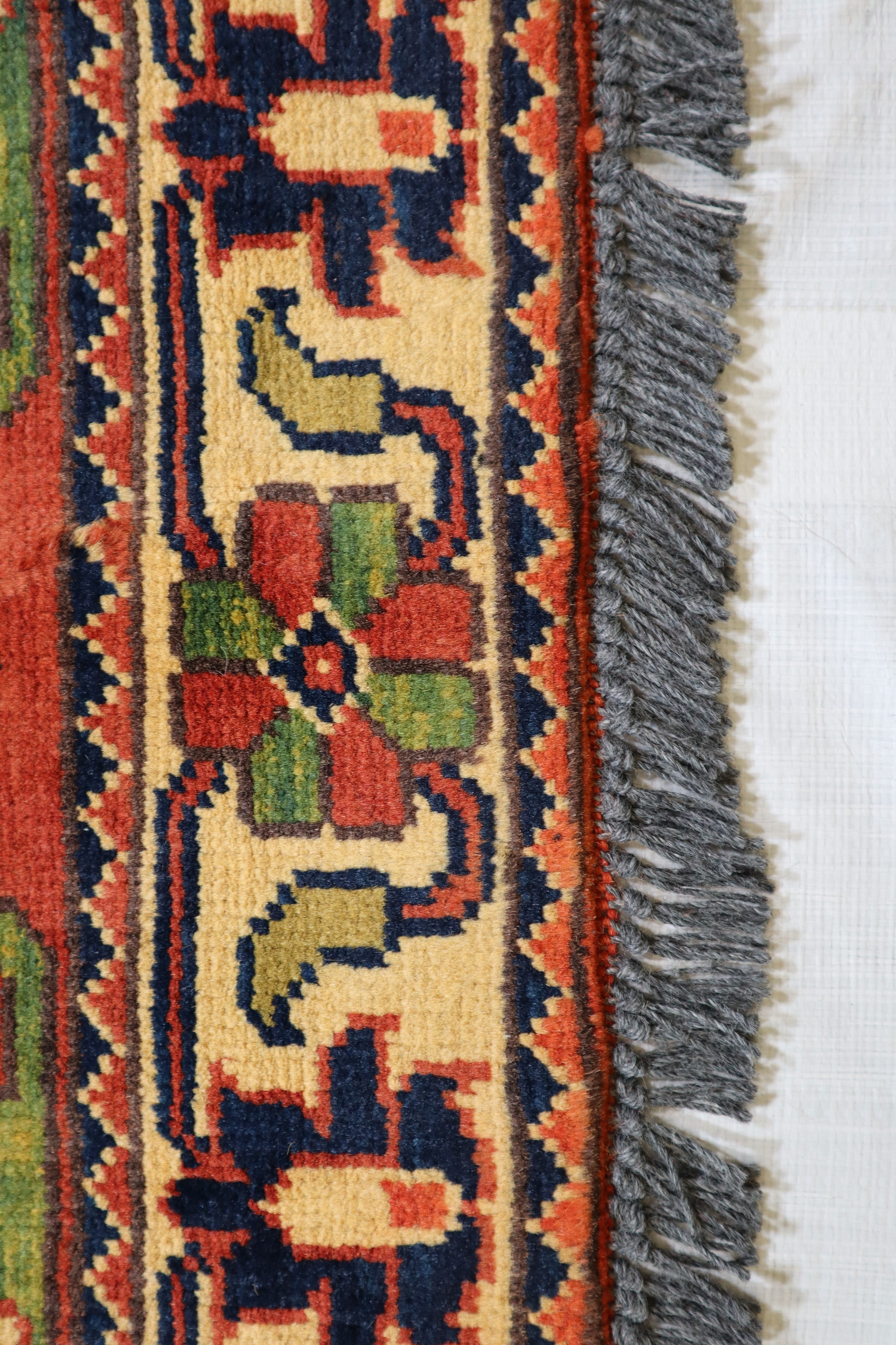 This rug is in excellent condition. Nice colors and patterning. Very natural wool and super colors.