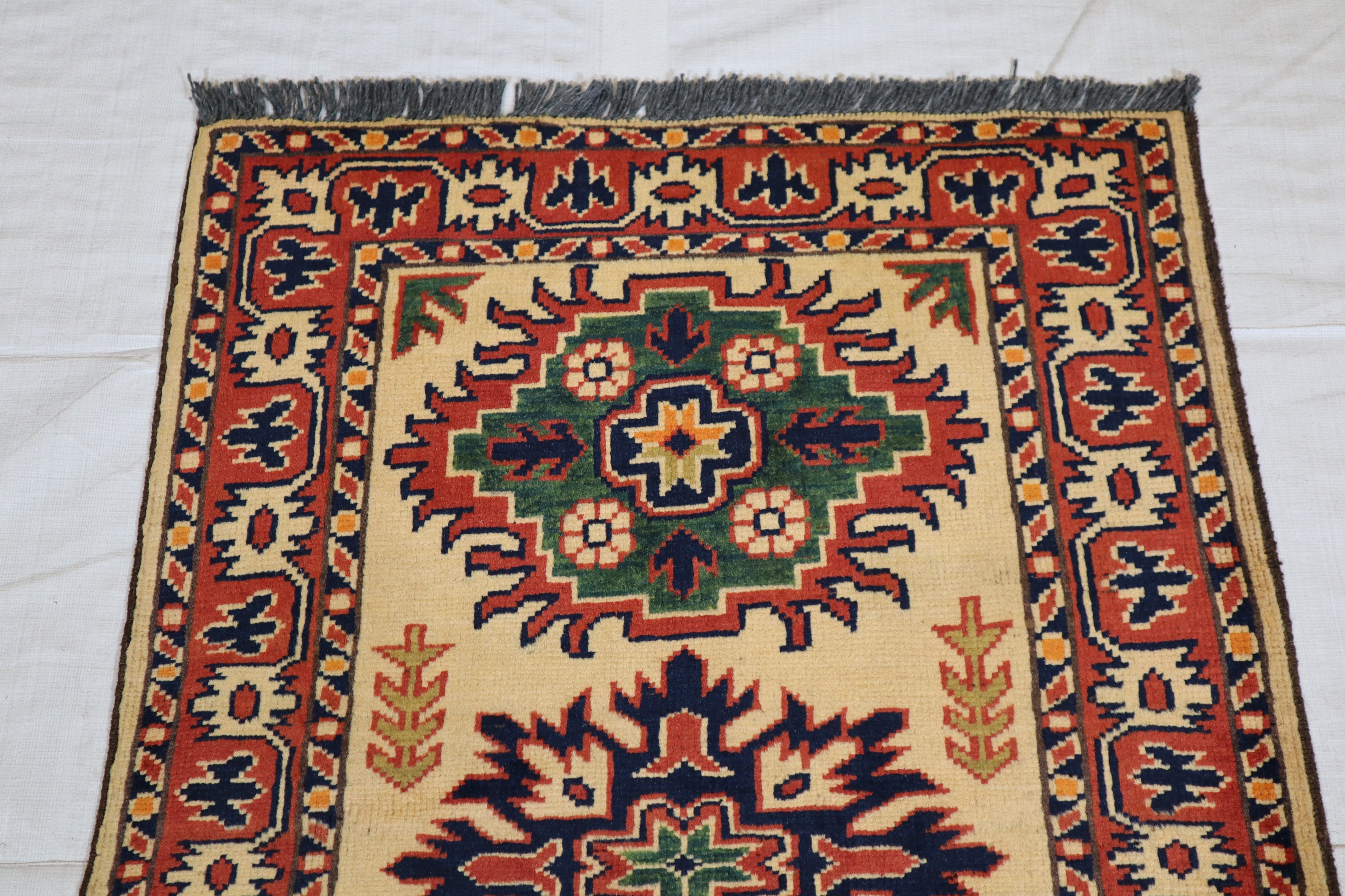 This rug is in excellent condition. Nice colors and patterning. Very natural wool and super colors.