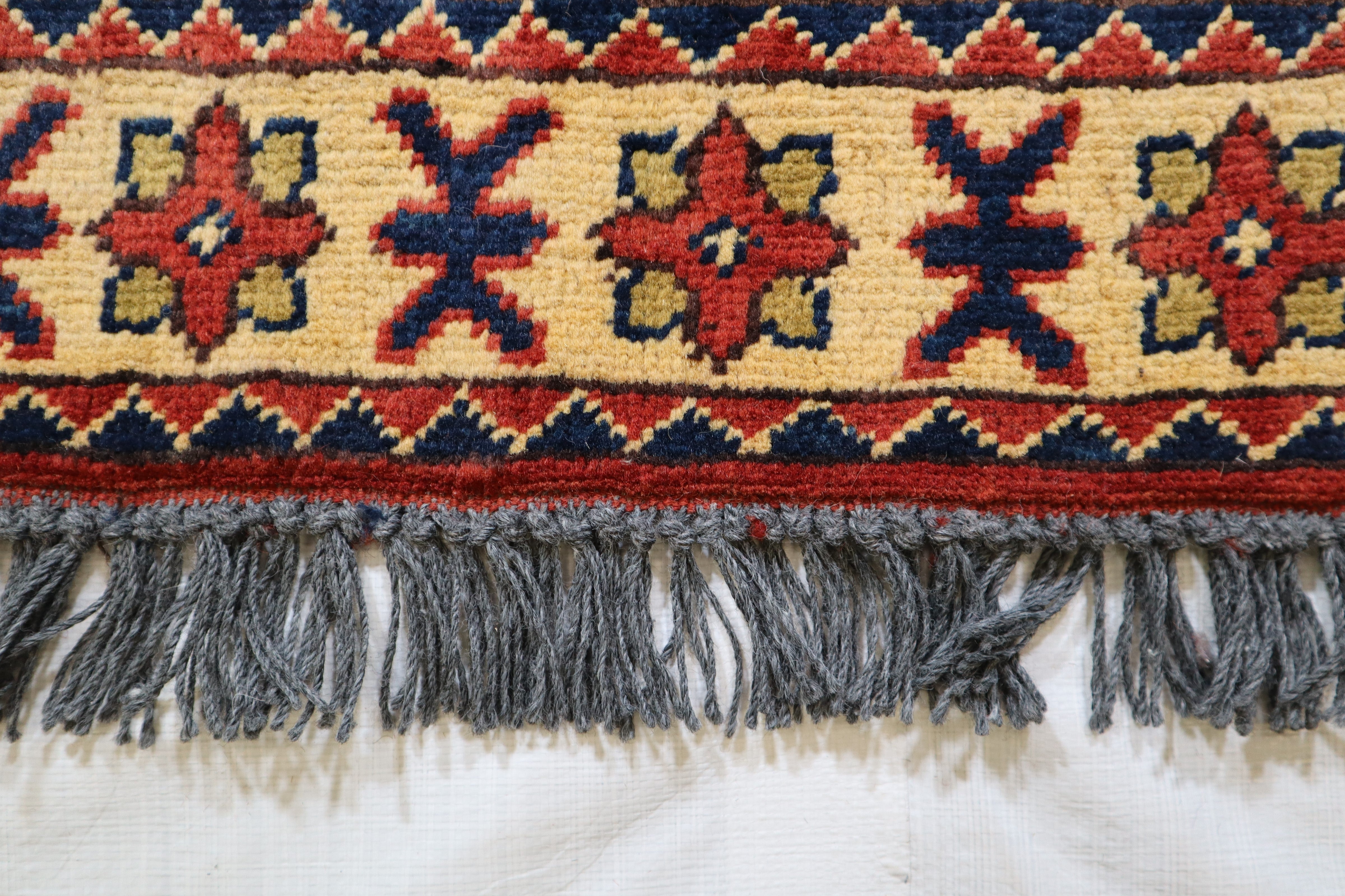 This rug is in excellent condition. Nice colors and patterning. Very natural wool and super colors.