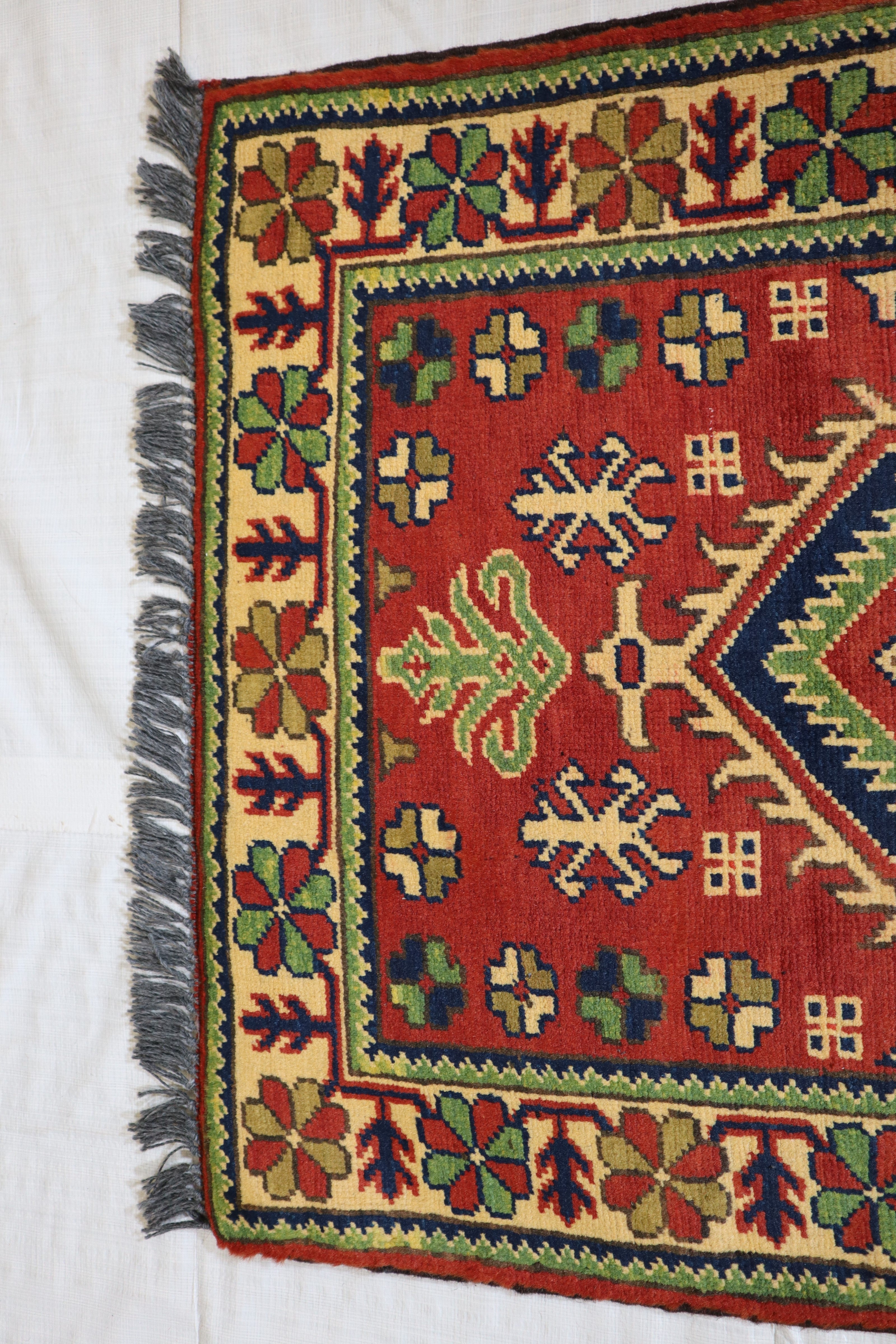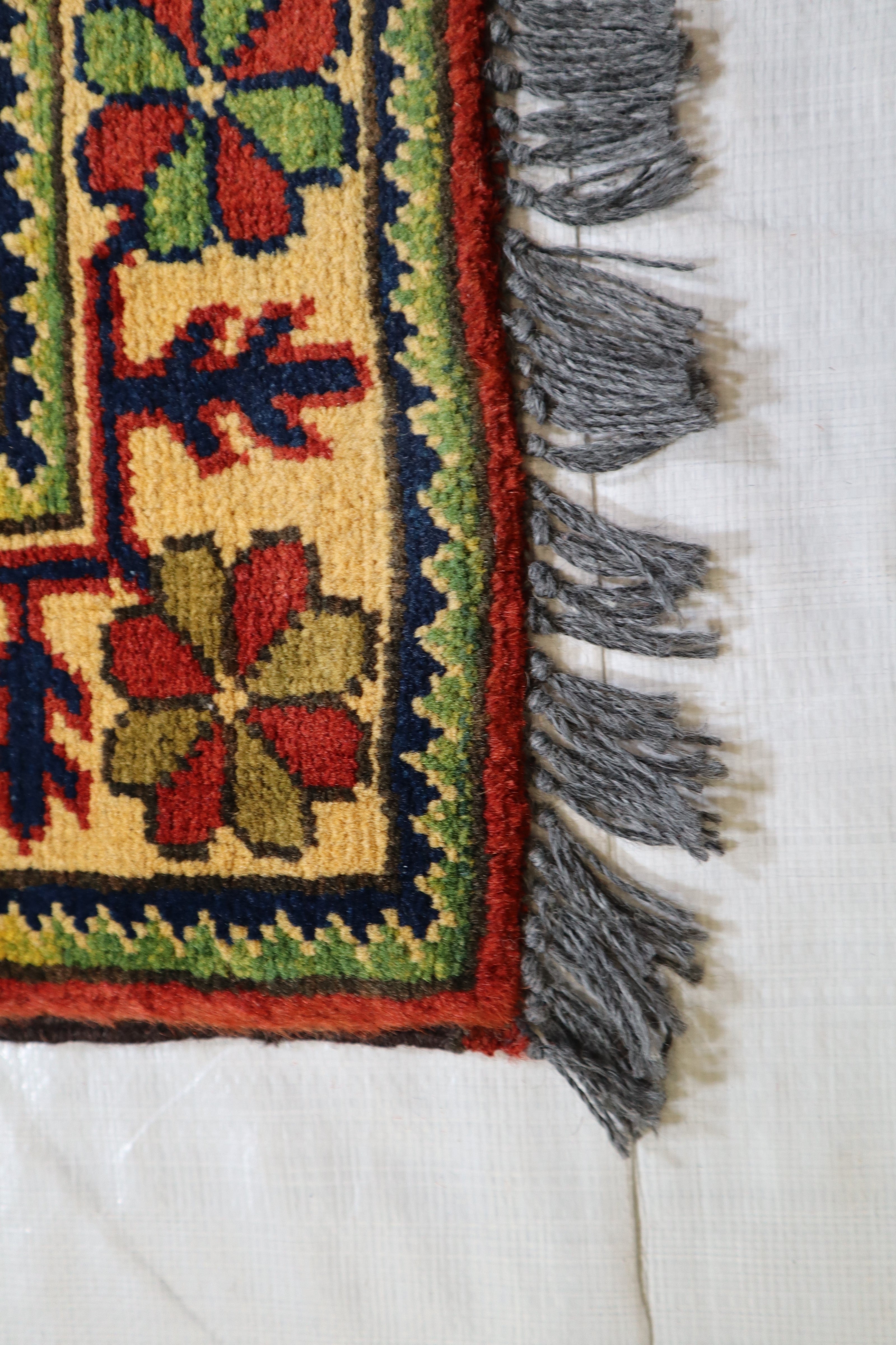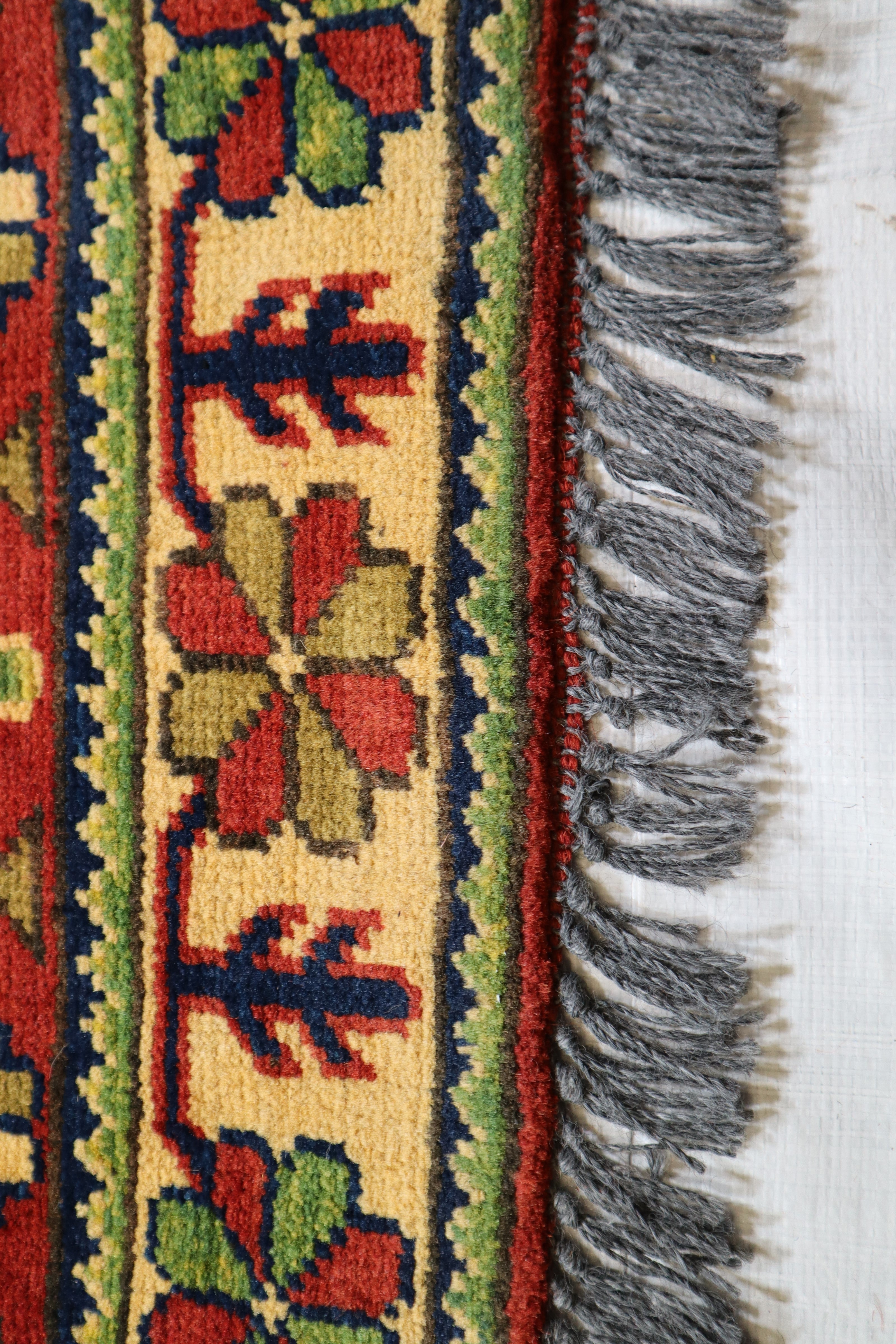 This rug is in excellent condition. Nice colors and patterning. Very natural wool and super colors.