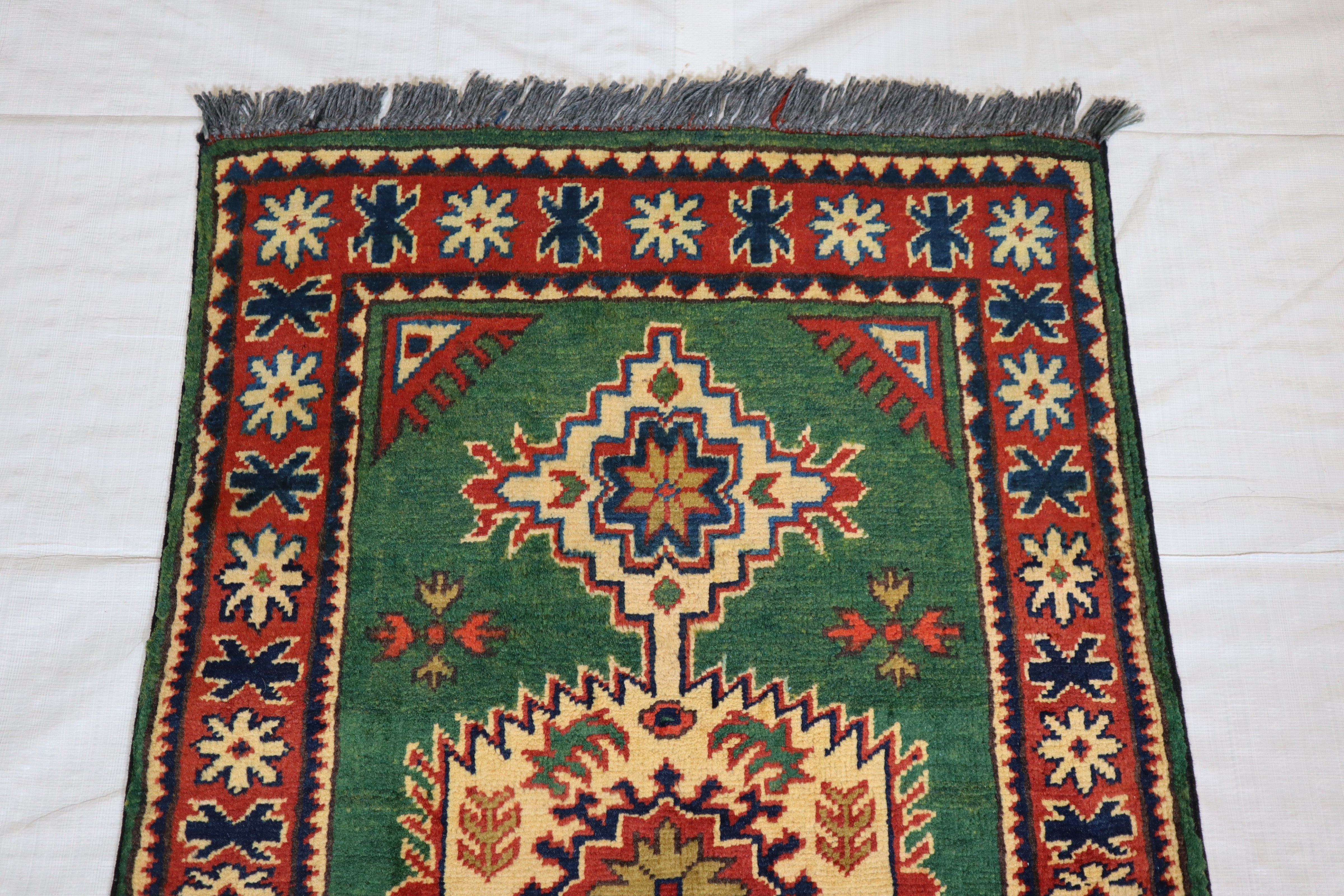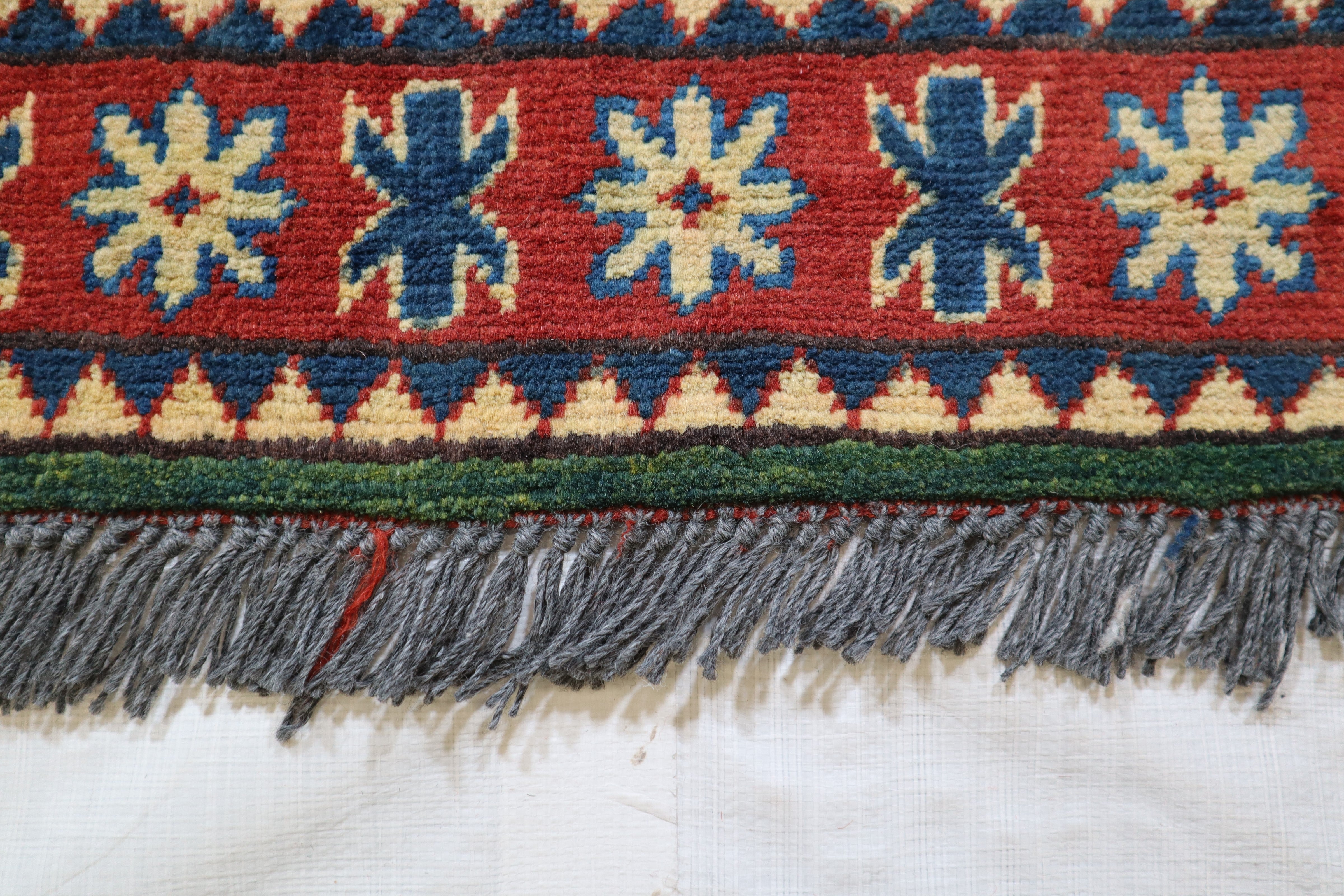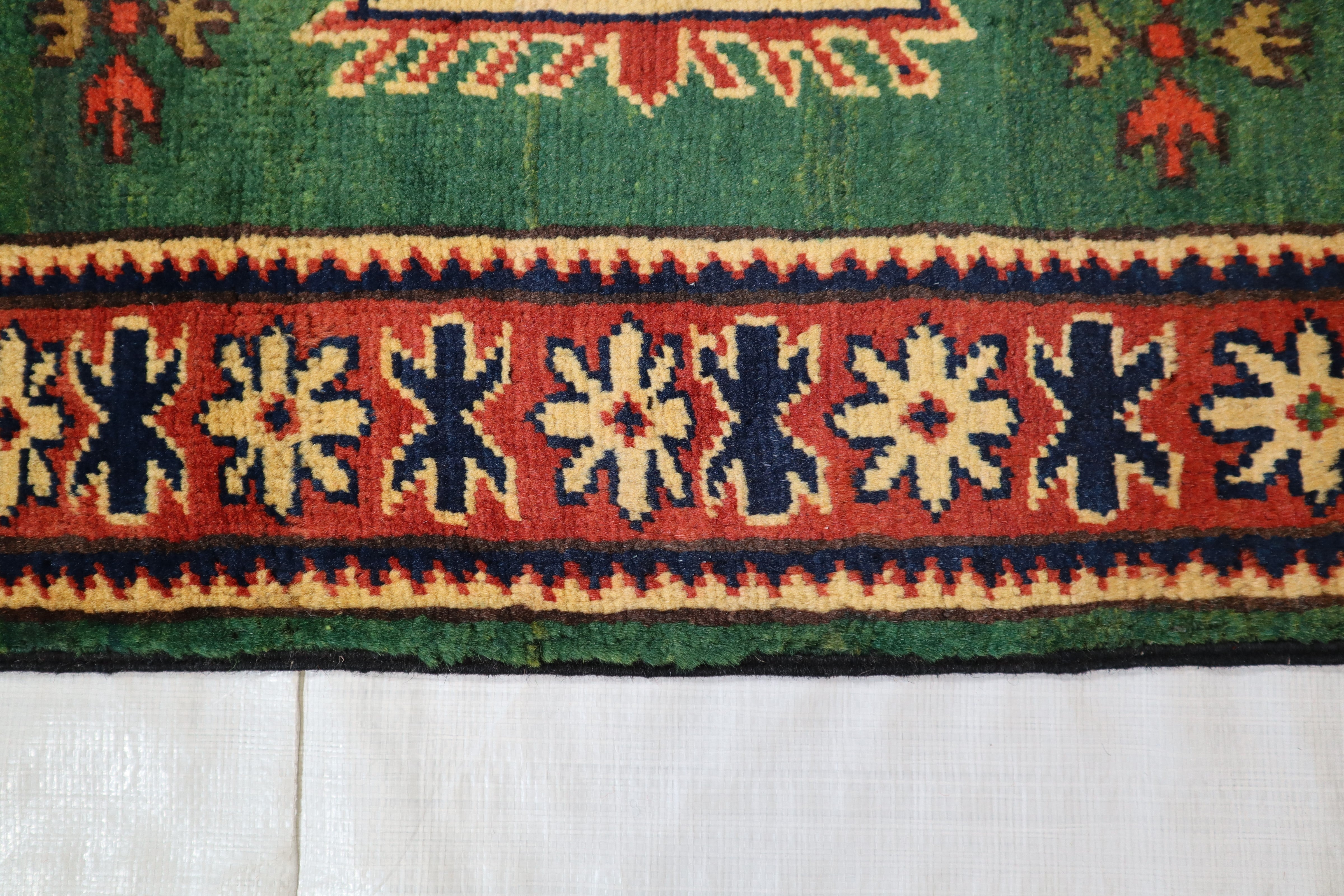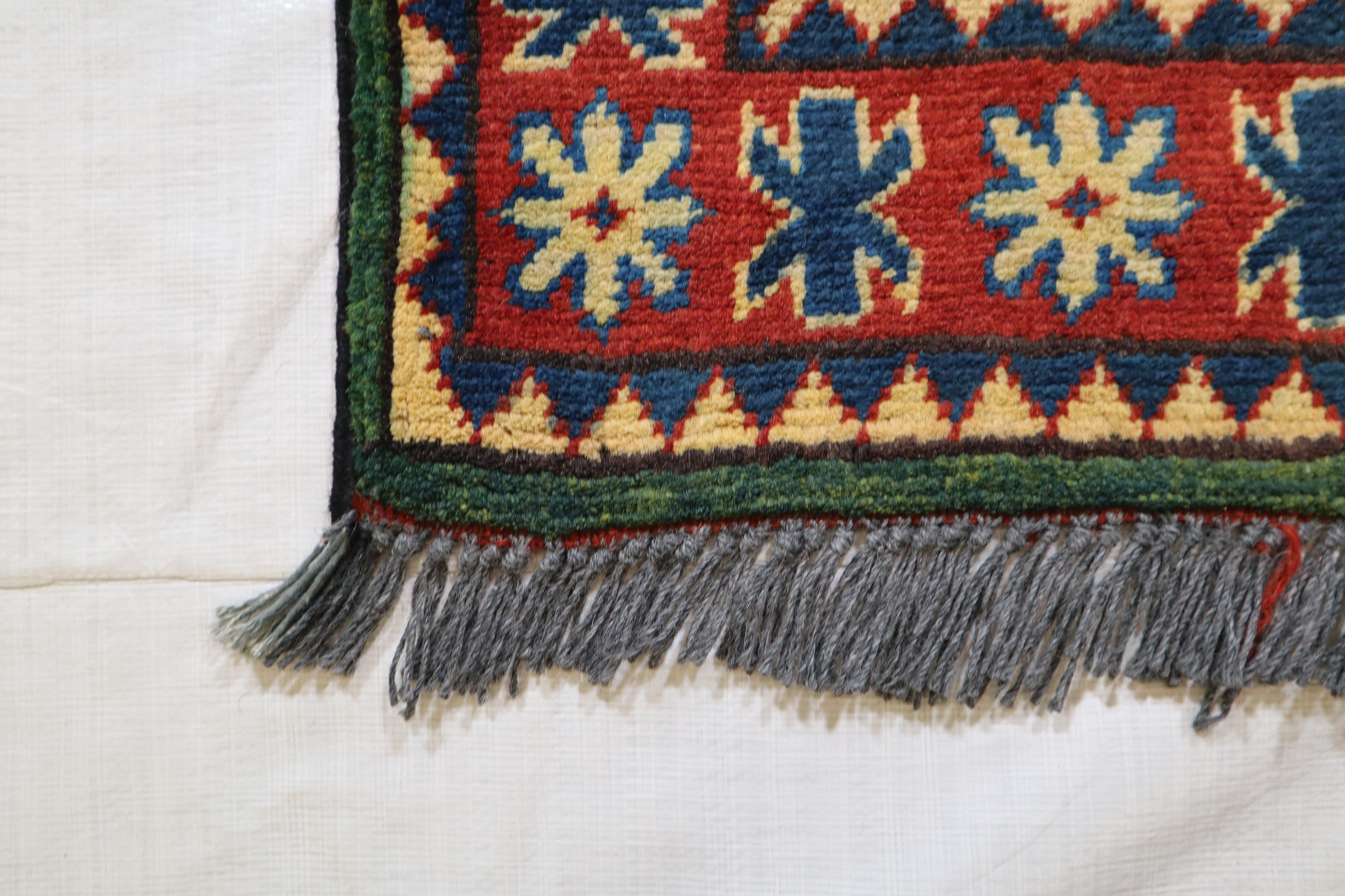 This rug is in excellent condition. Nice colors and patterning. Very natural wool and super colors.