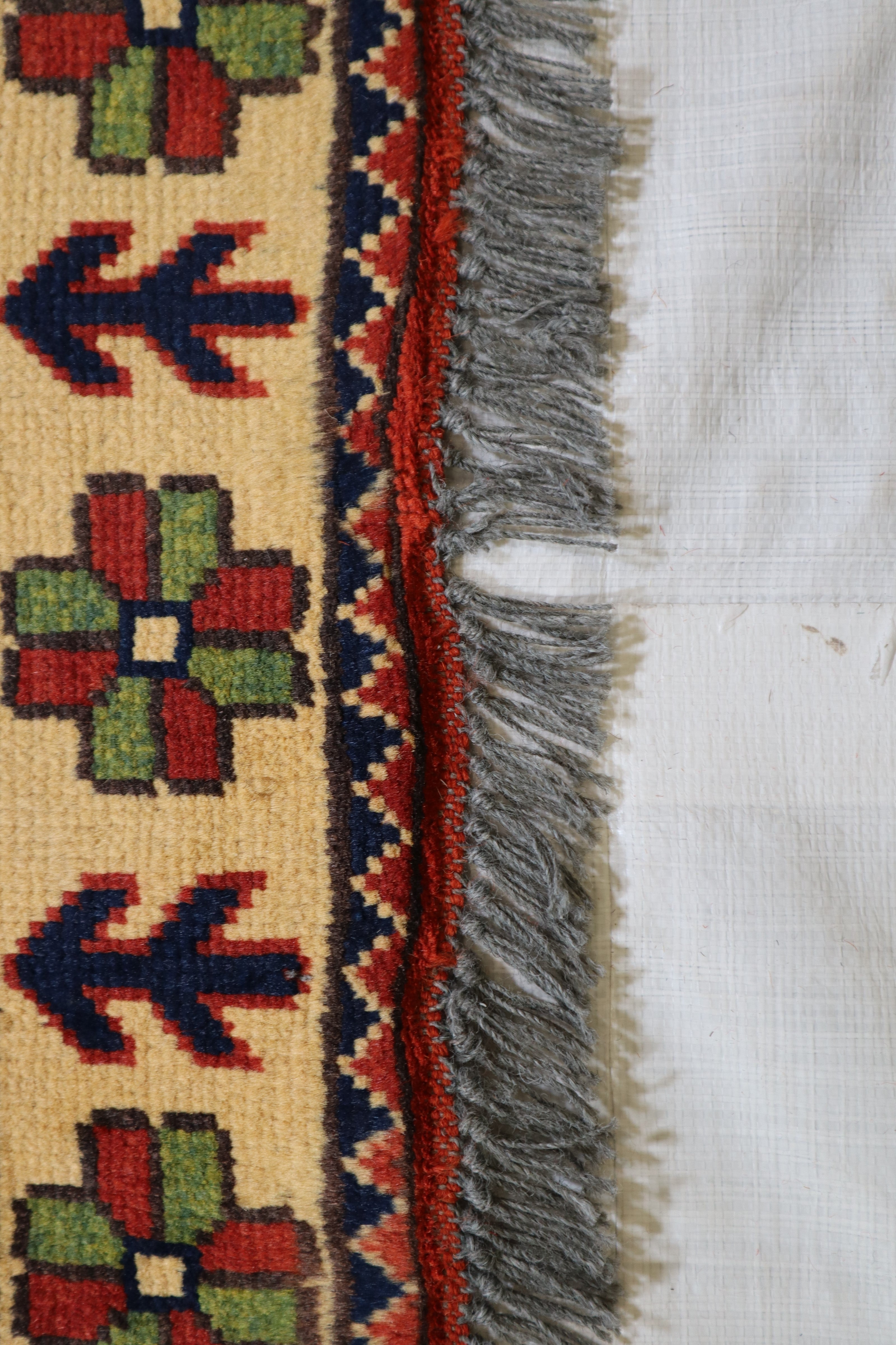 This rug is in excellent condition. Nice colors and patterning. Very natural wool and super colors.