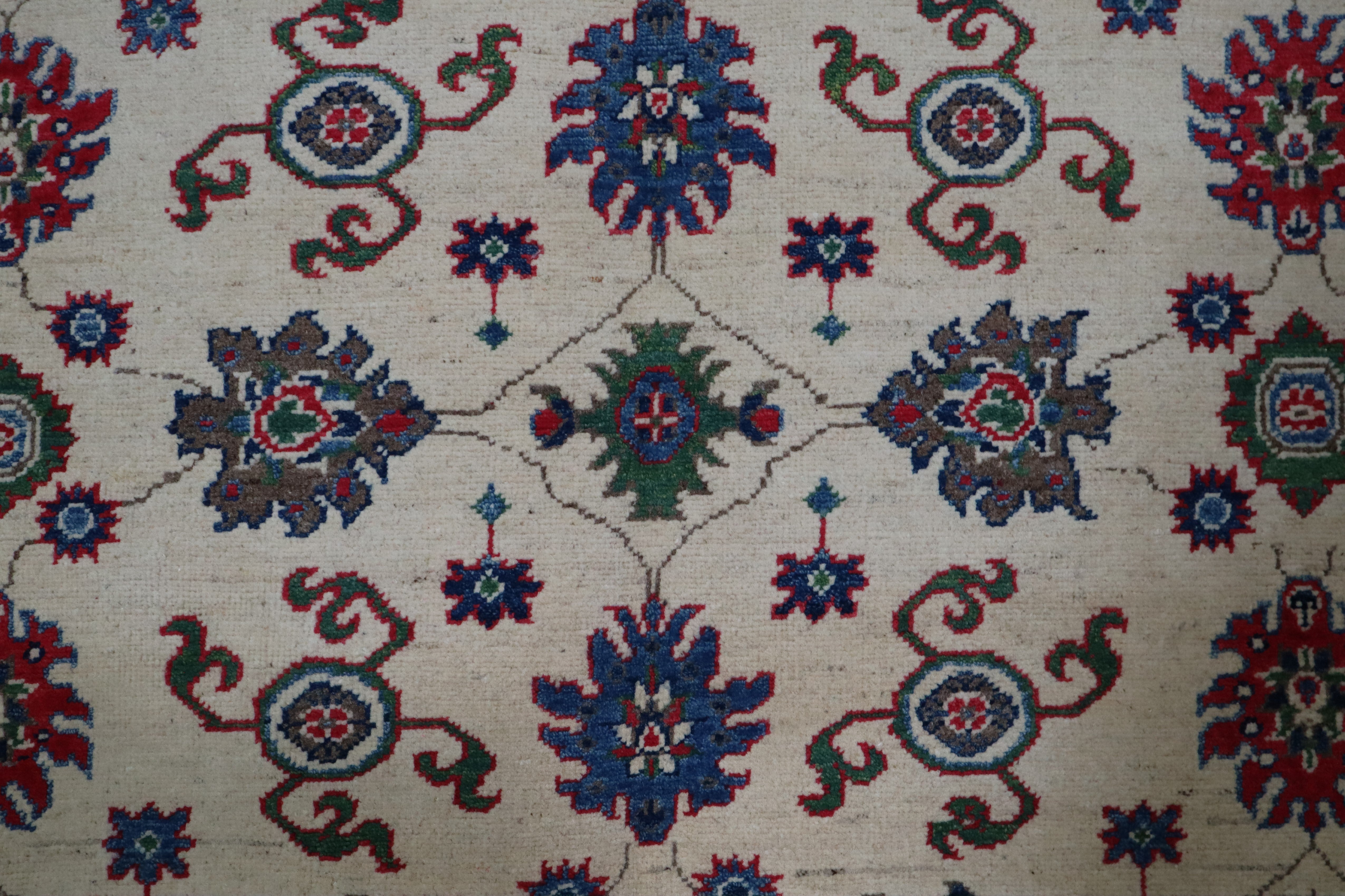 This beautiful hand-knotted rug is made with 100% wool.
