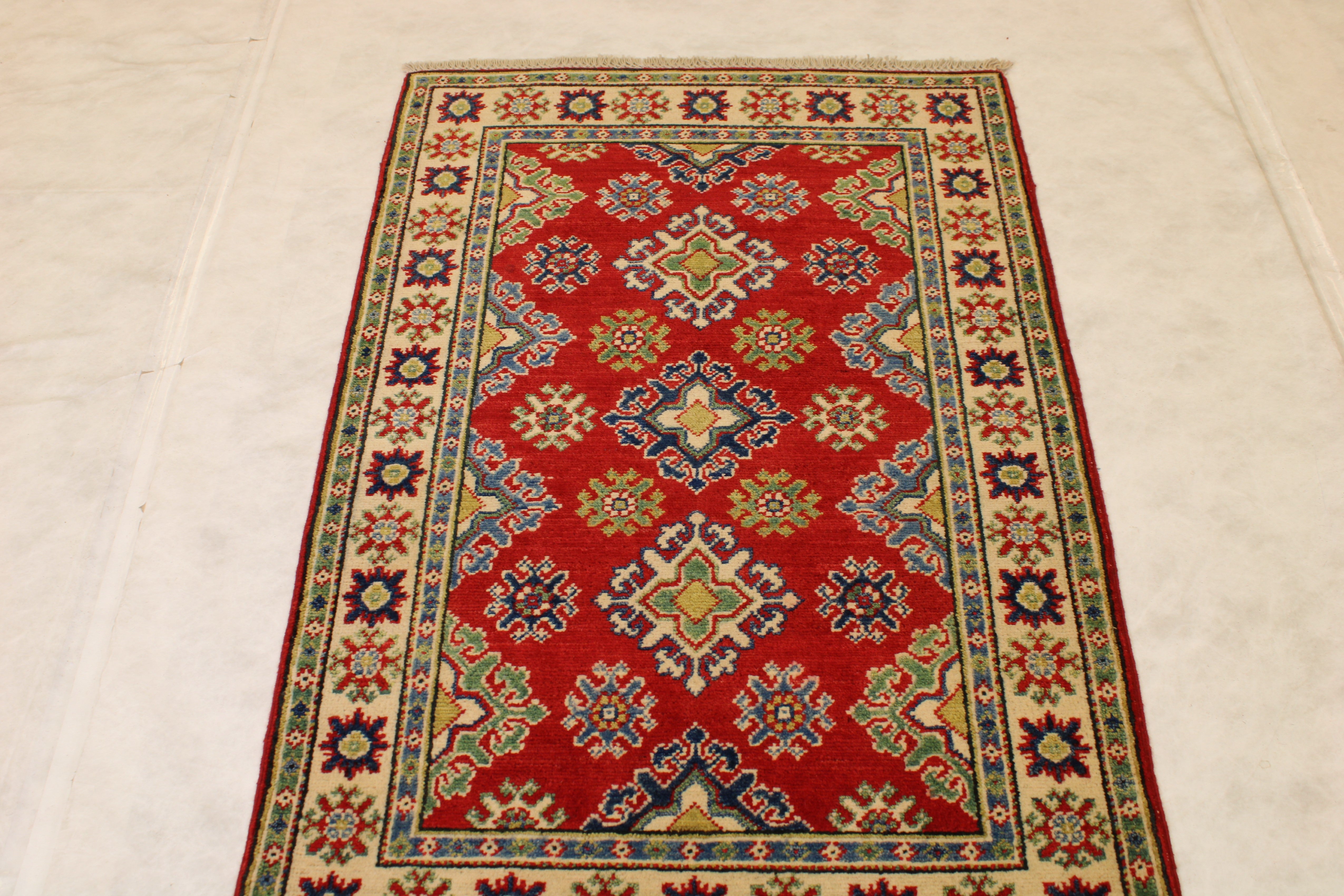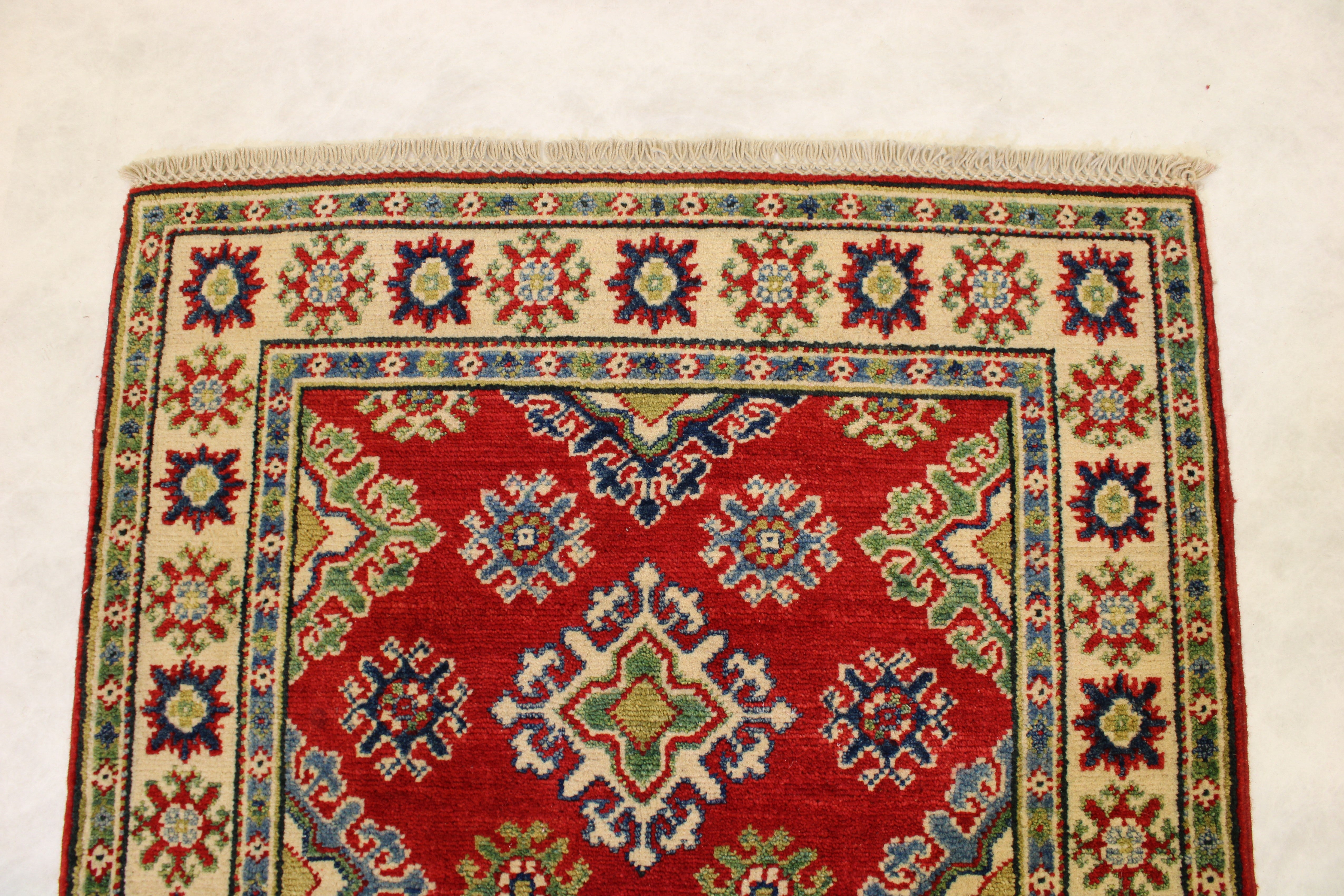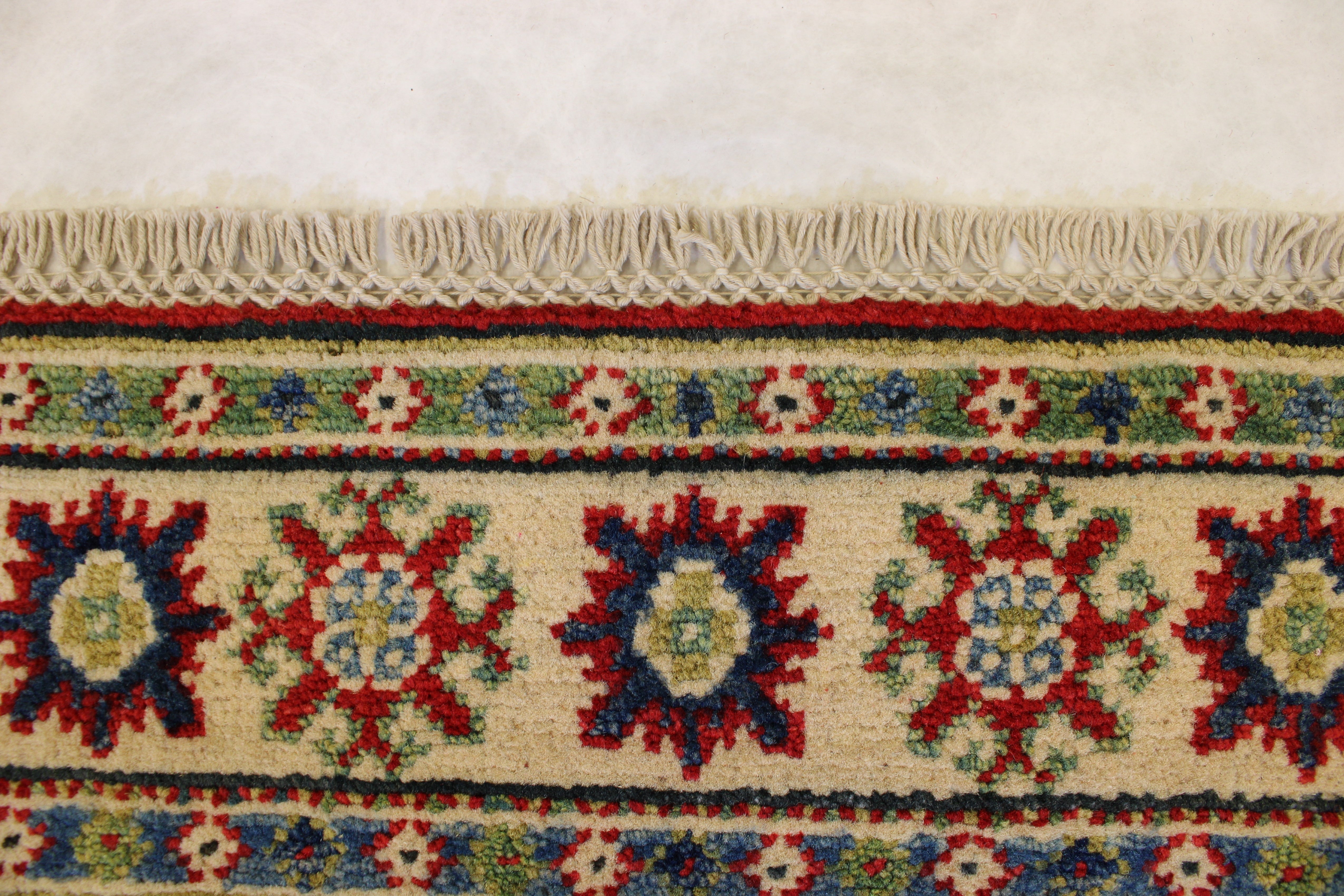 This rug is in an excellent condition. Nice colors and patterning. Very natural wool and super colors.