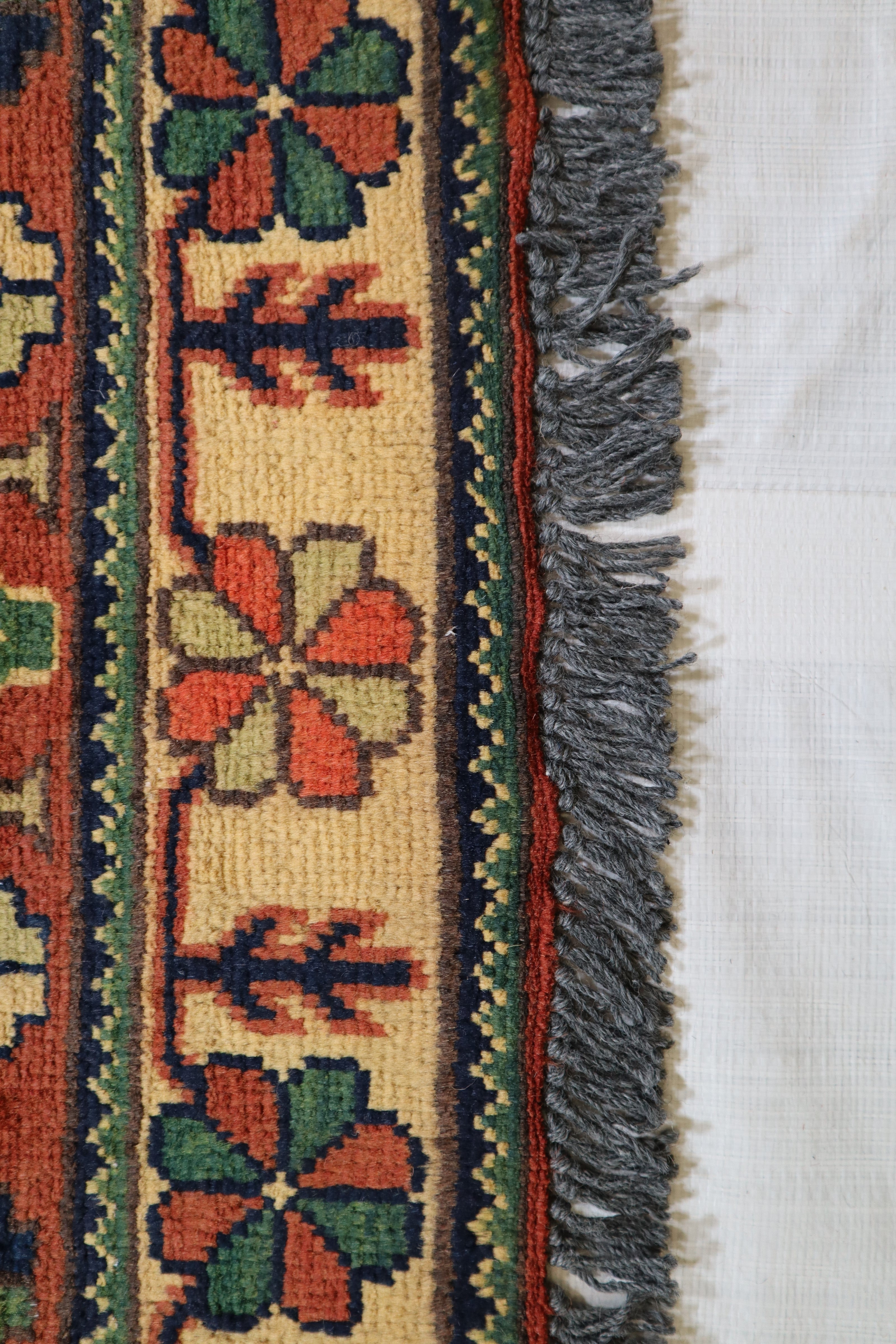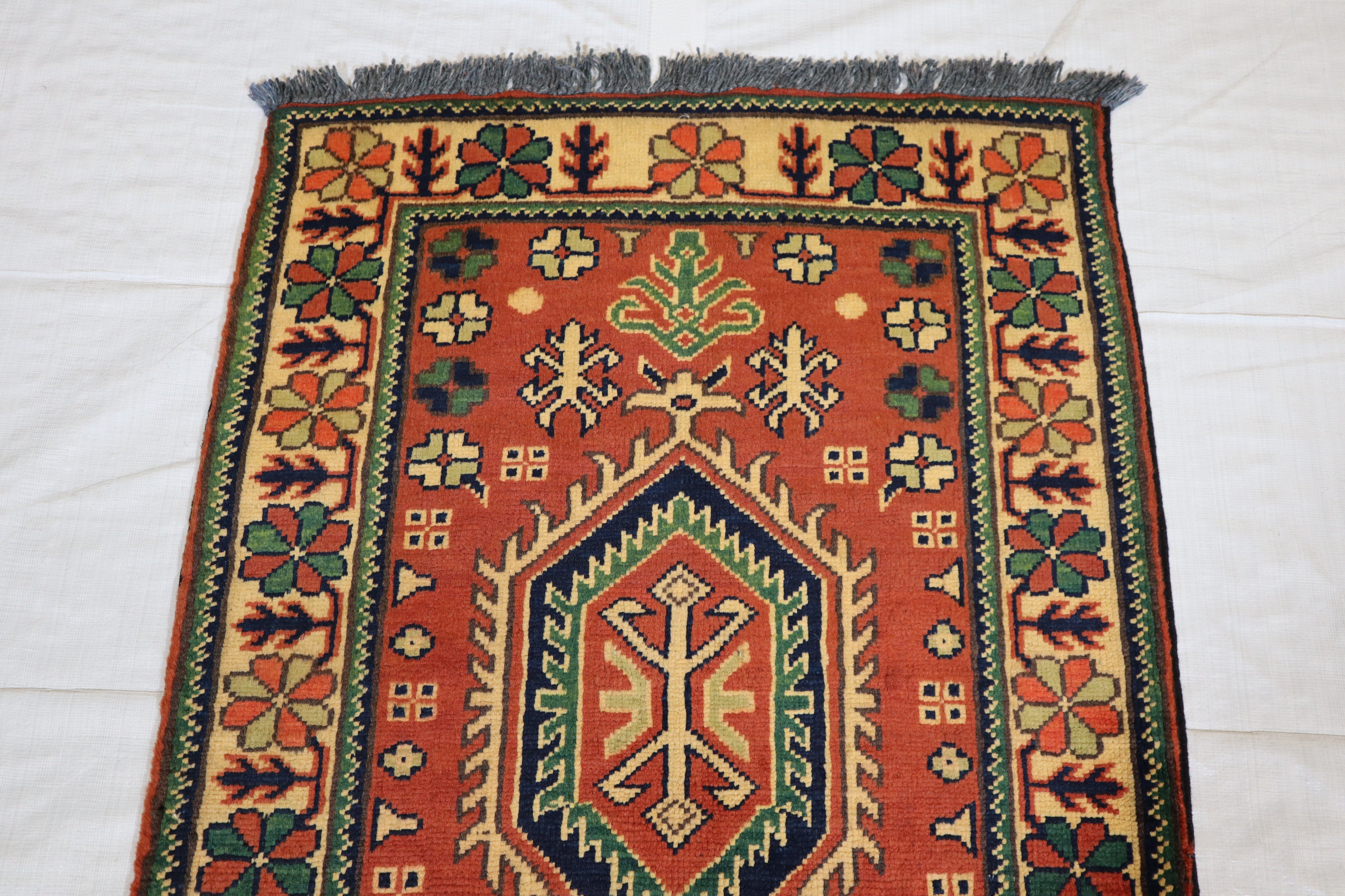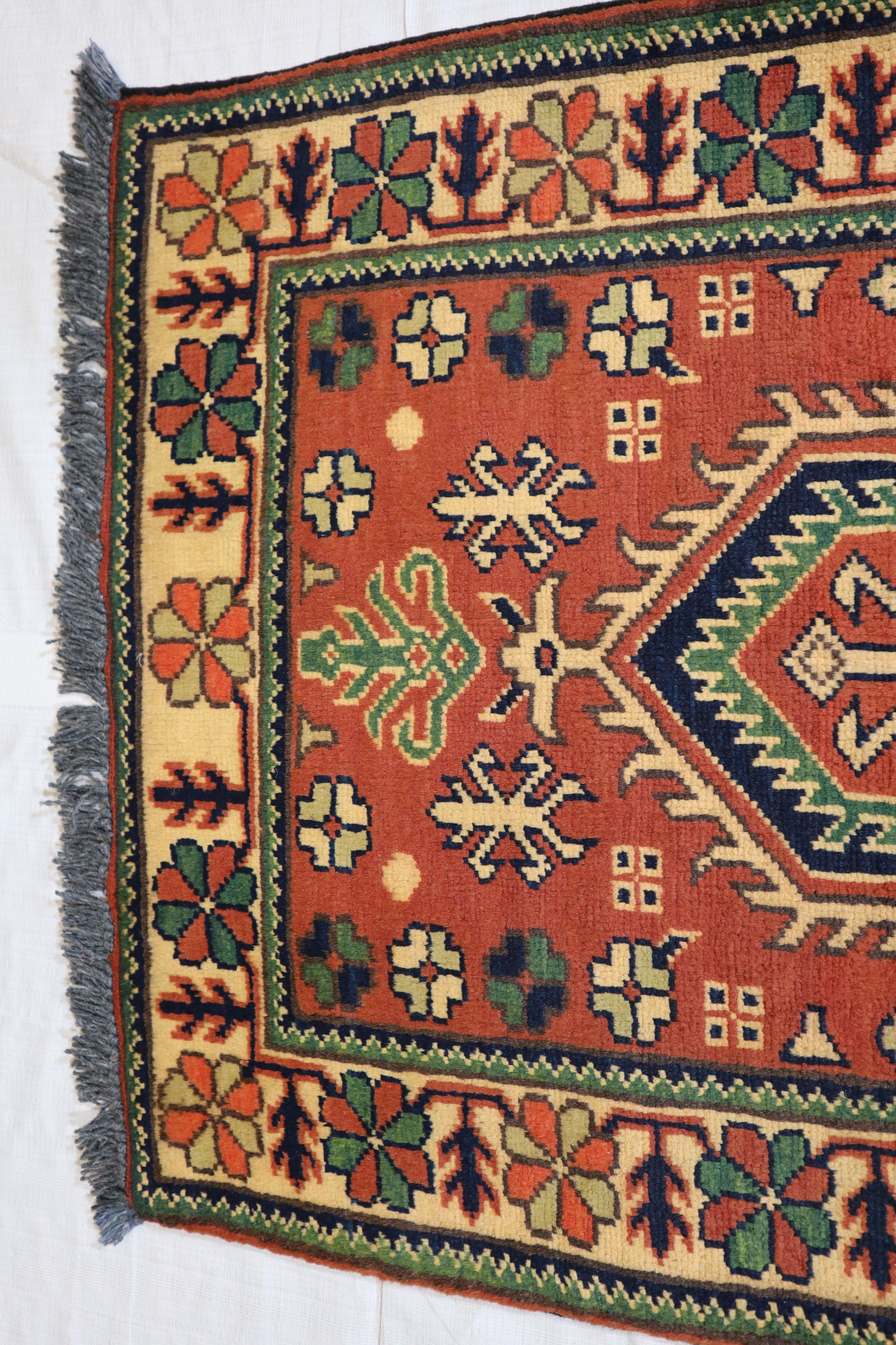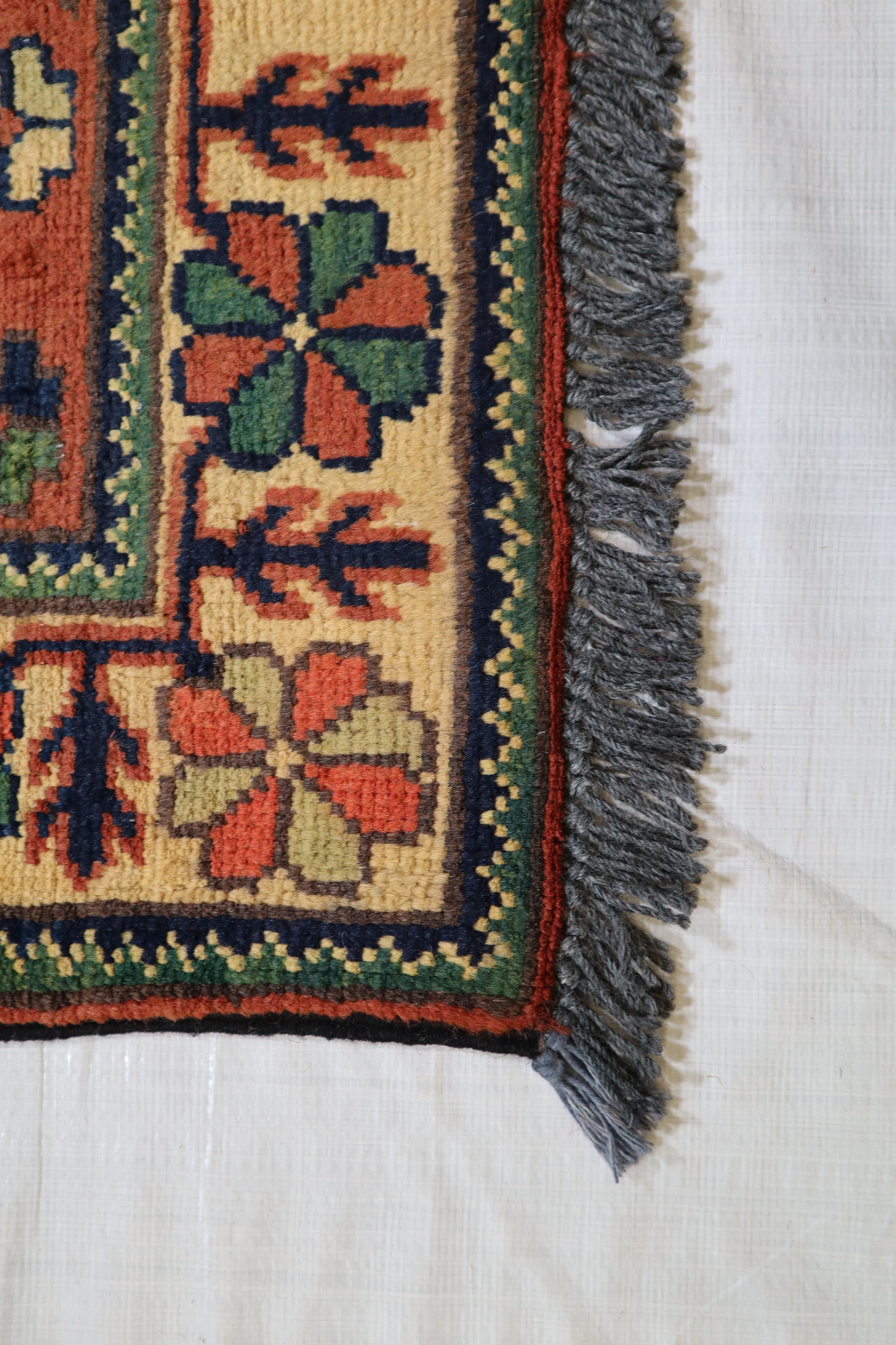 This rug is in excellent condition. Nice colors and patterning. Very natural wool and super colors.