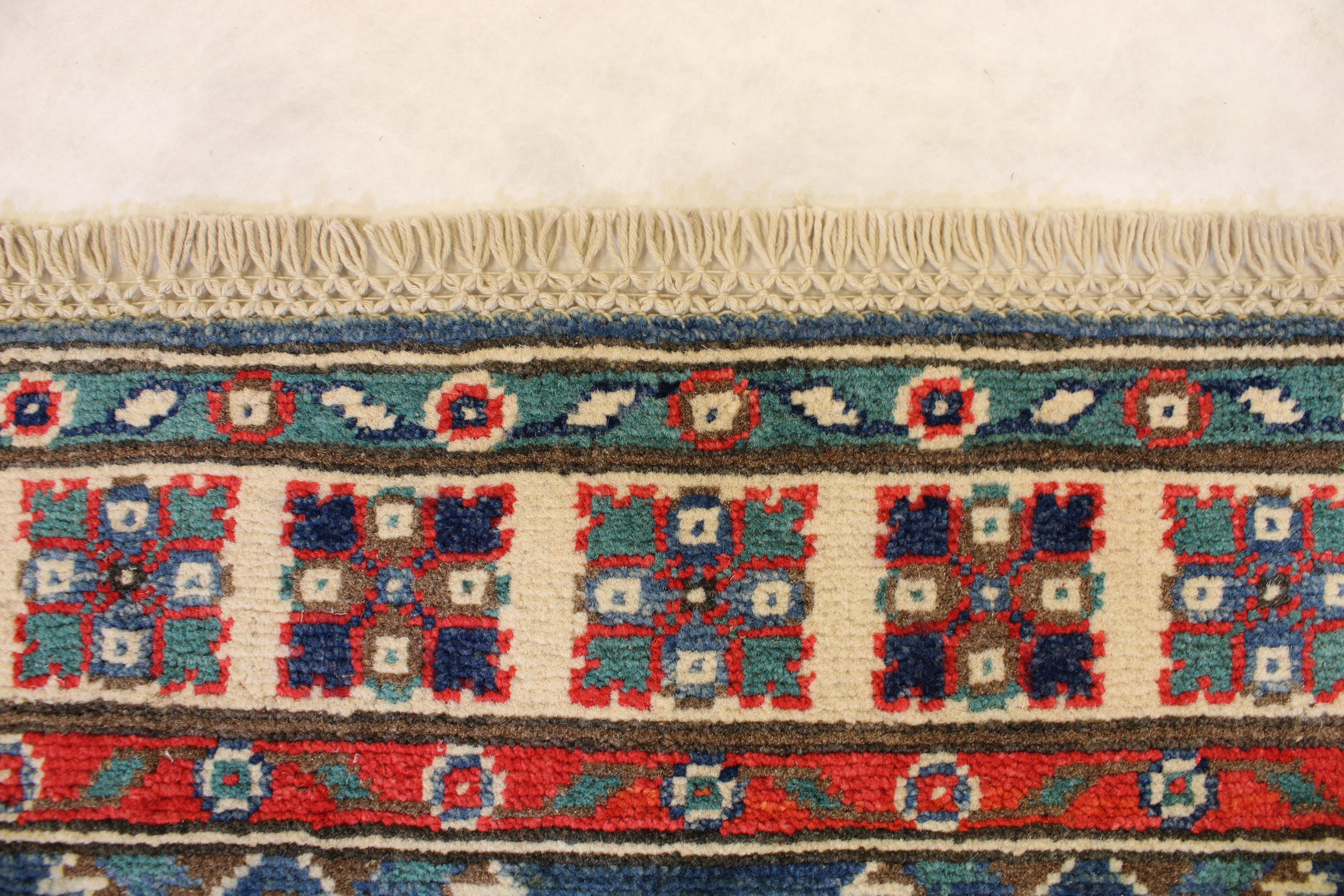 This rug is in an excellent condition. Nice colors and patterning. Very natural wool and super colors.