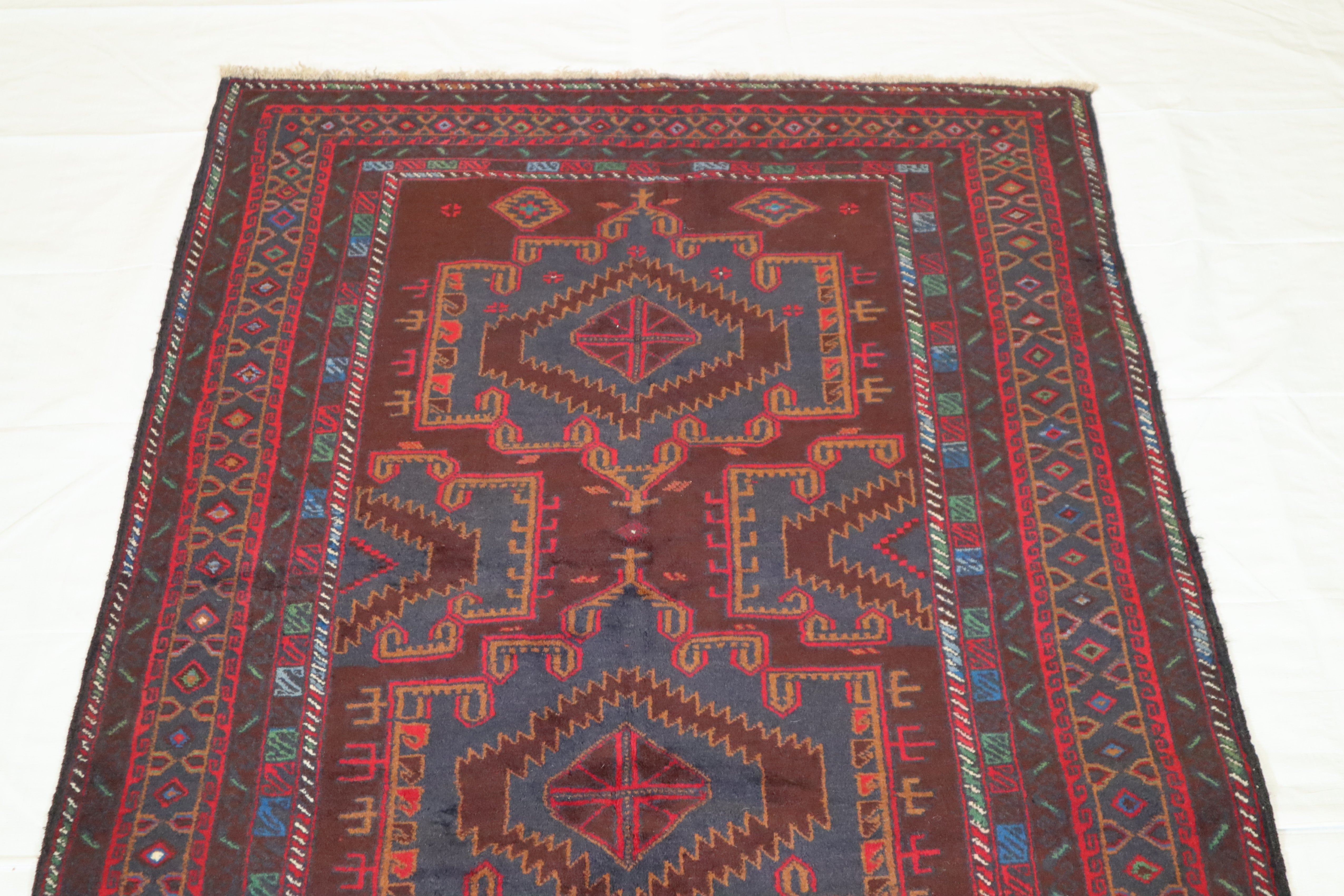 This rug is in excellent condition. Nice colors and patterning. Very natural wool and super colors.