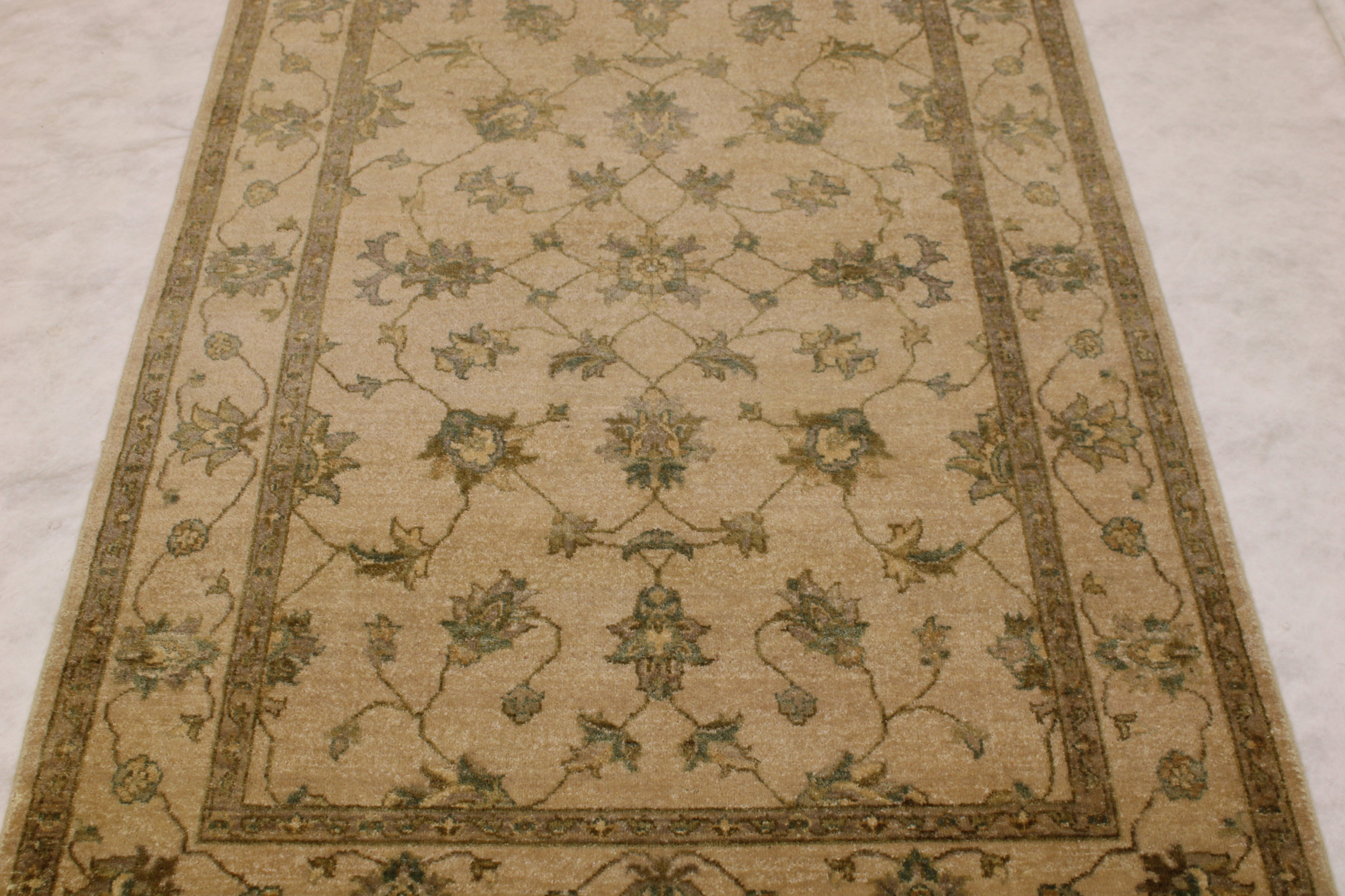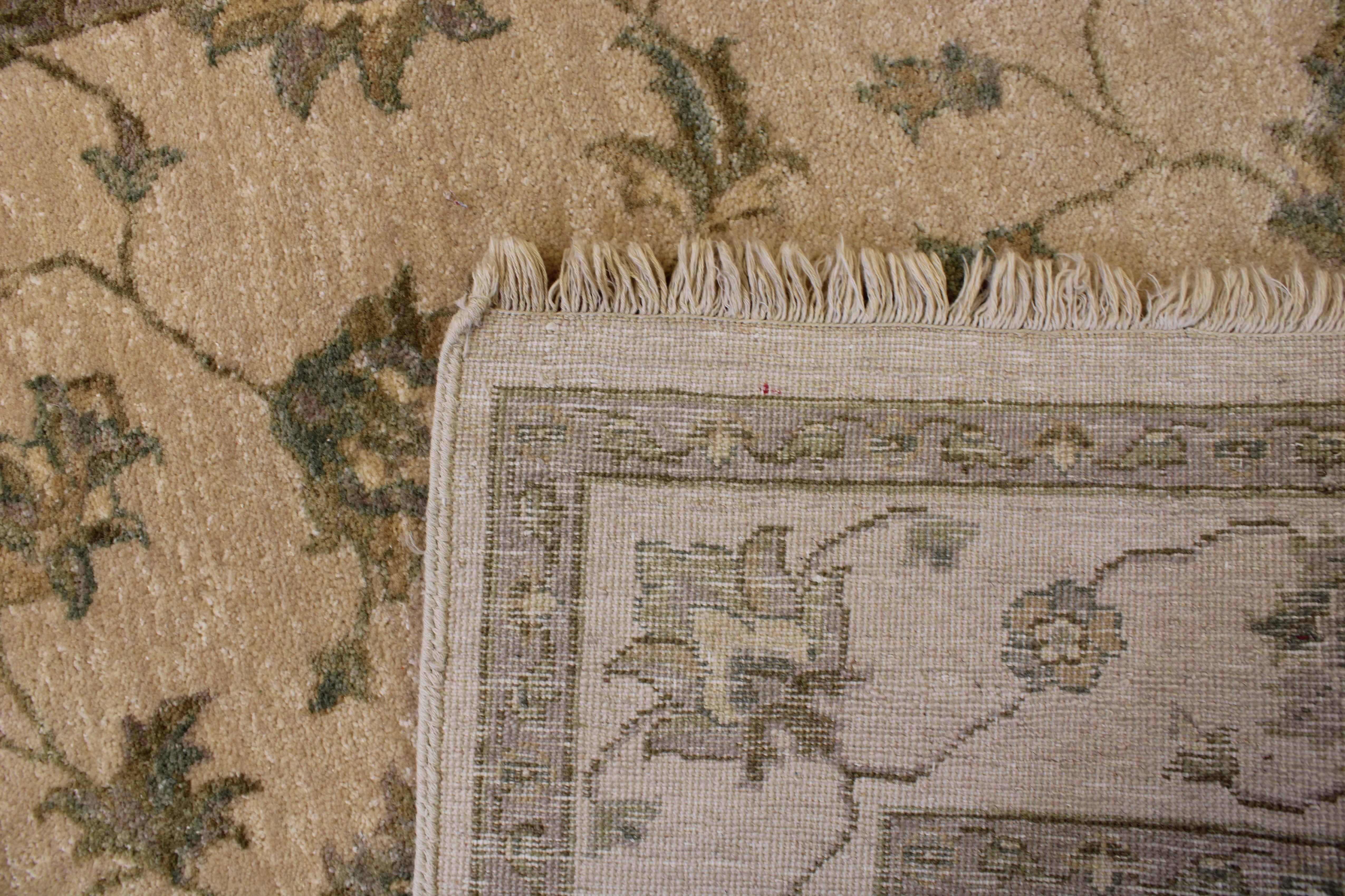 This beautiful hand knotted rug is made with wool.