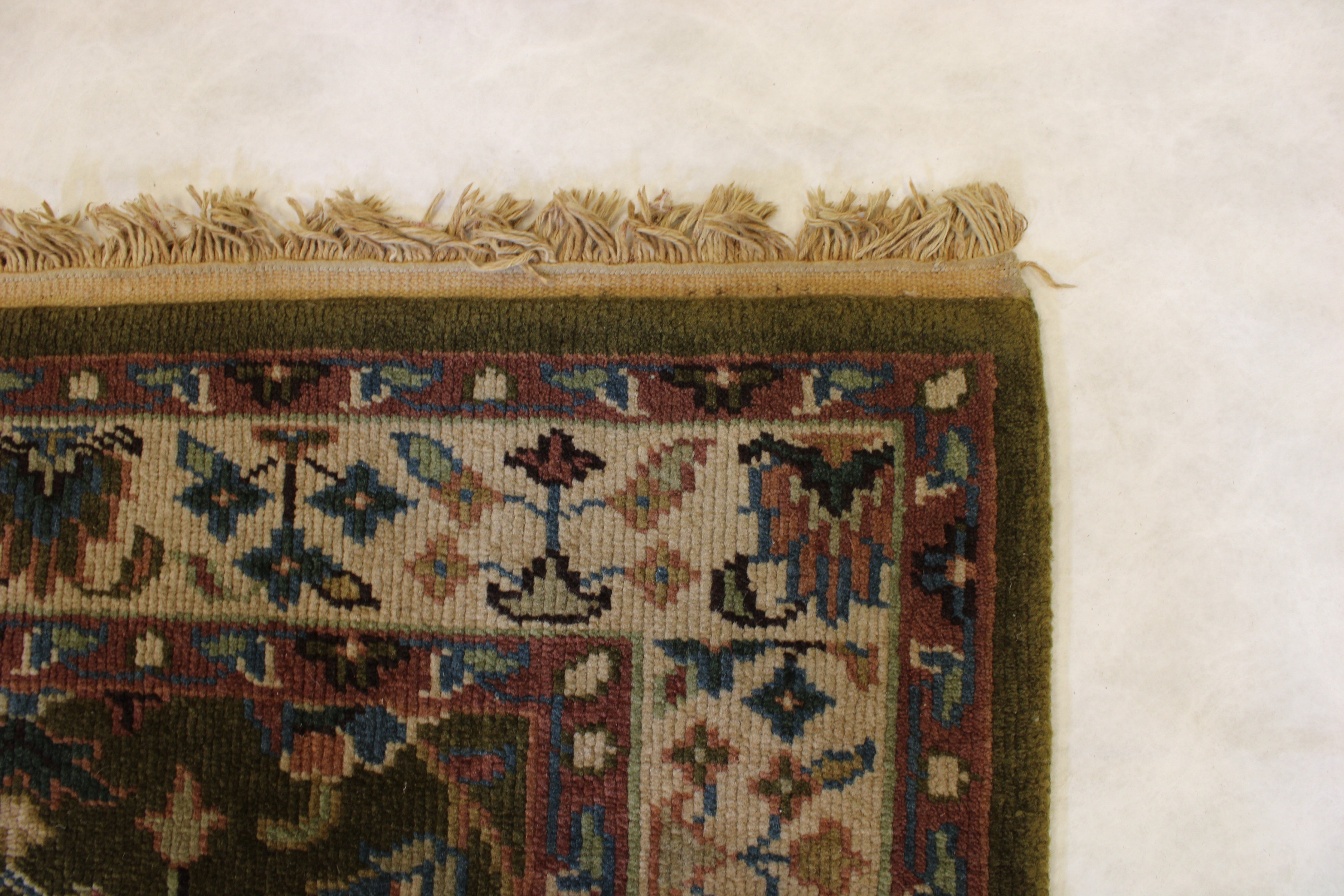 This rug is in an excellent condition. Nice colors and patterning. Very natural wool and super colors.