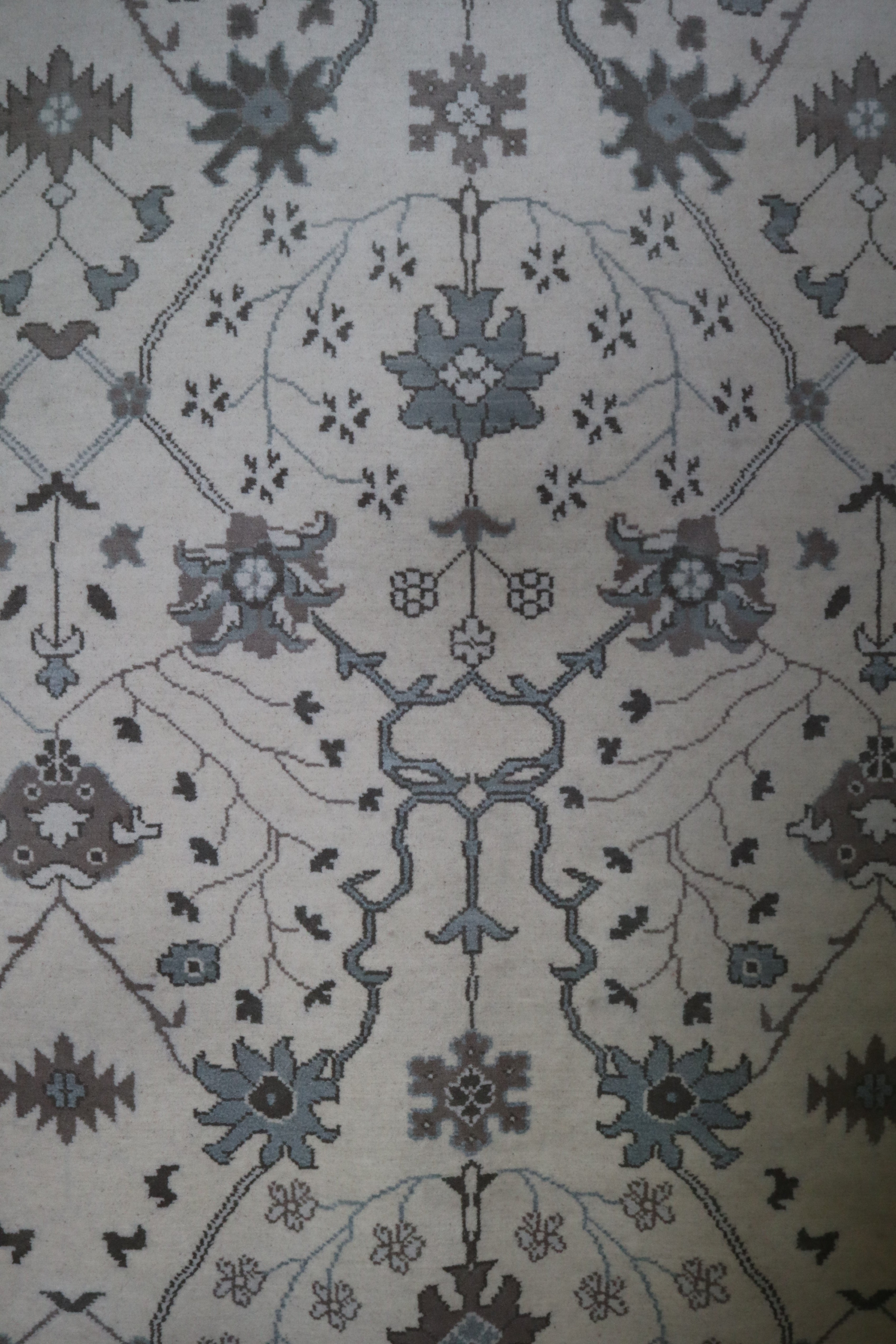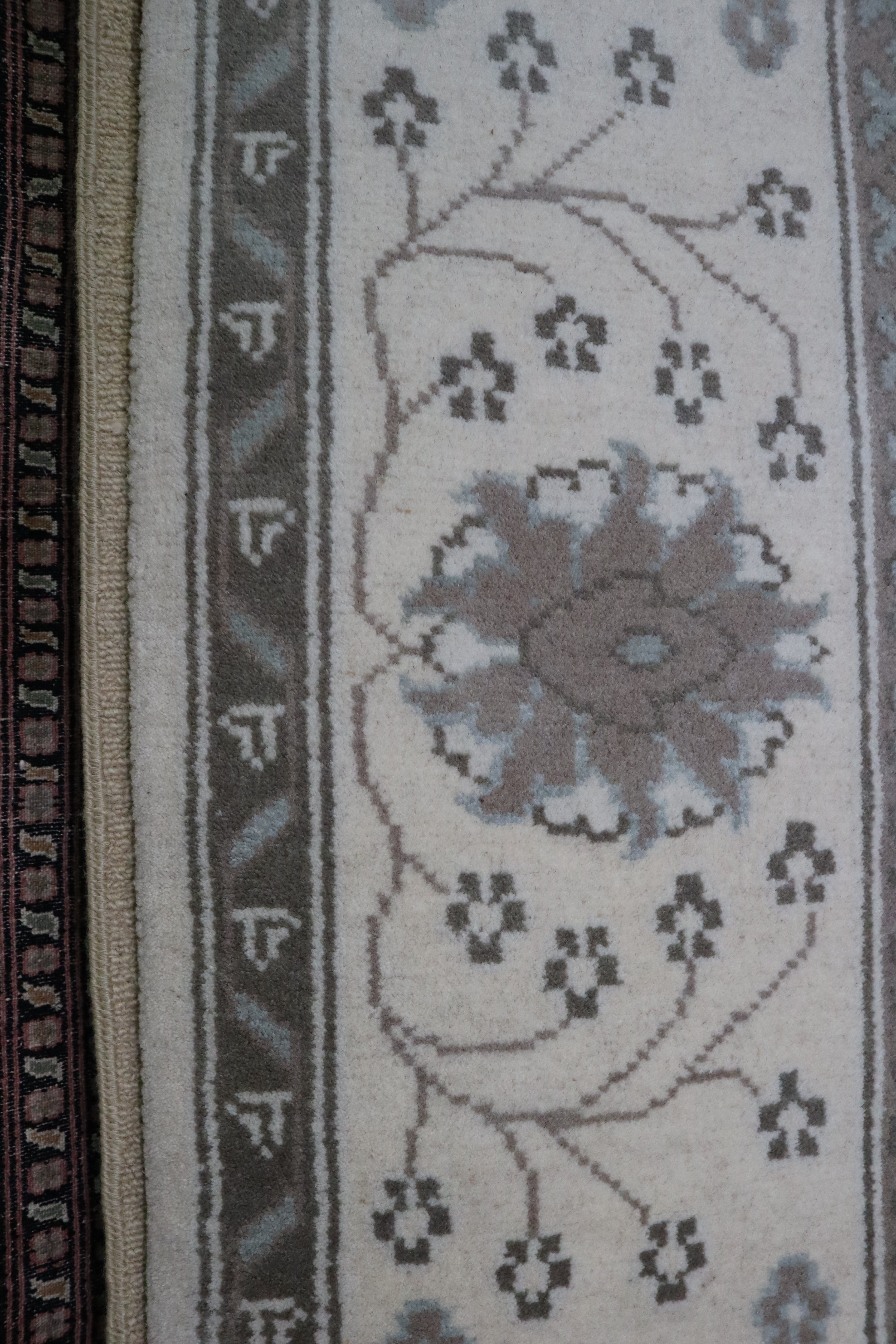 This beautiful hand-knotted rug is made with 100% wool.