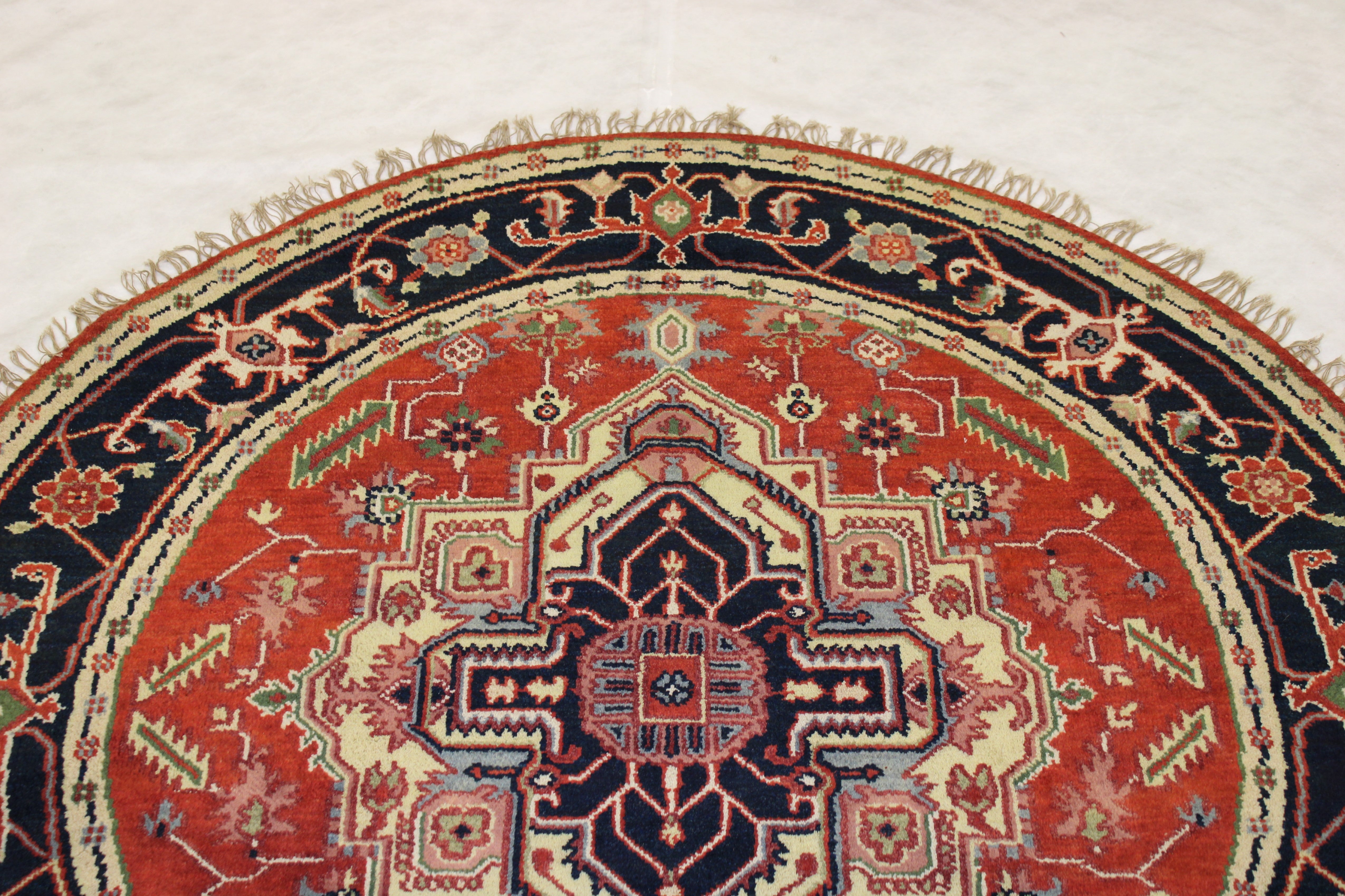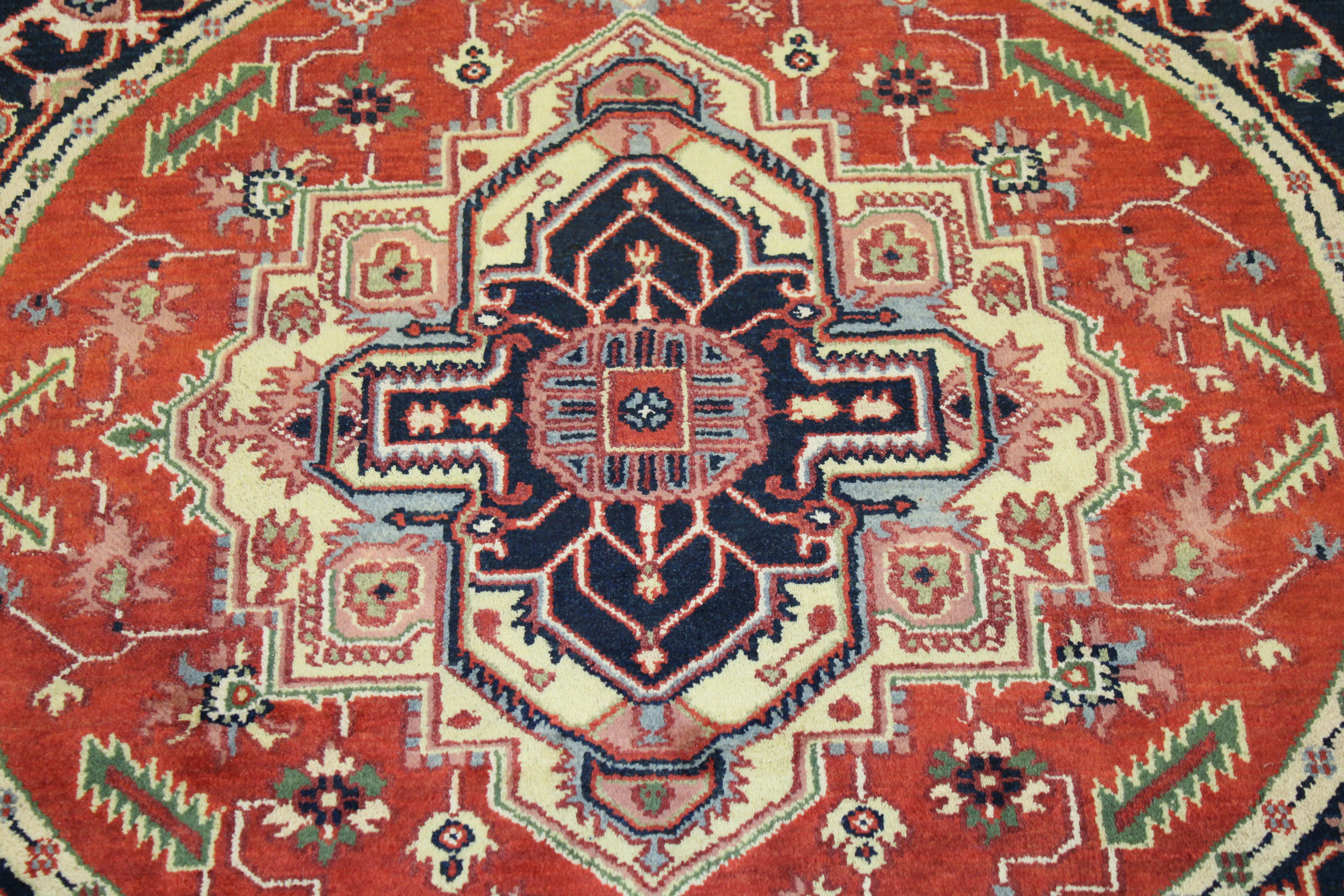 This beautiful hand-knotted rug is made with wool.