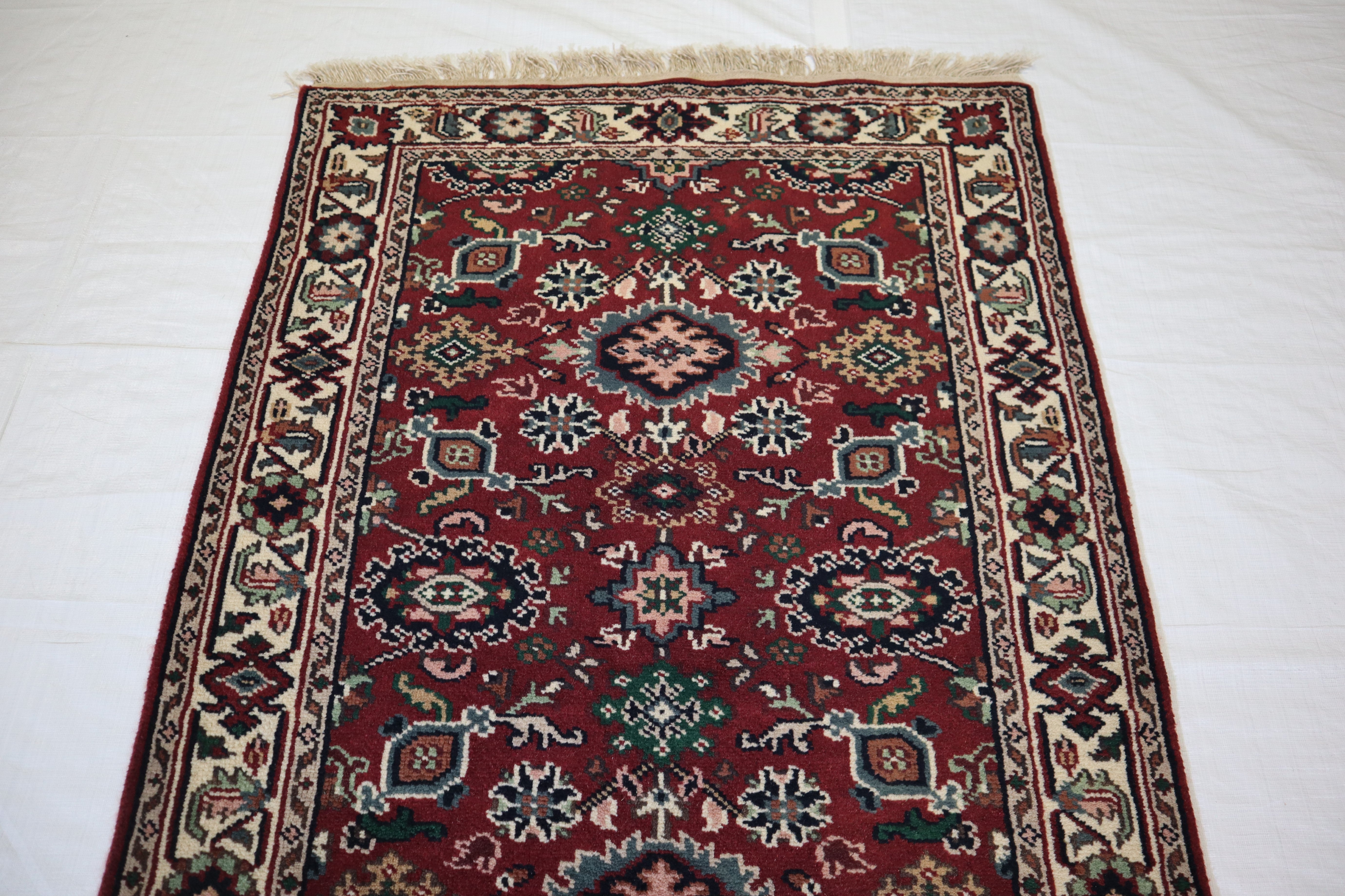 This rug is in an excellent condition. Nice colors and patterning. Very natural wool and super colors.