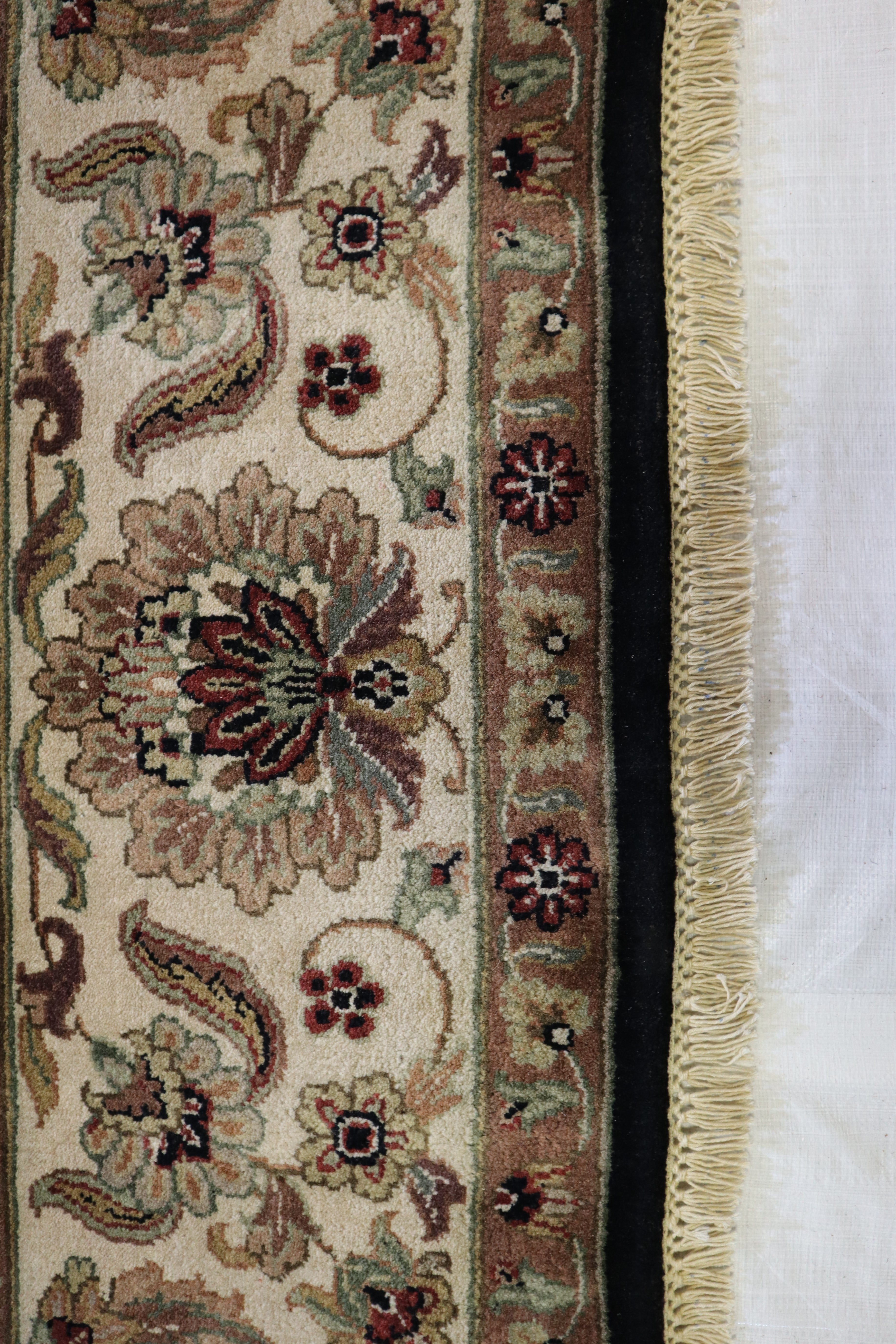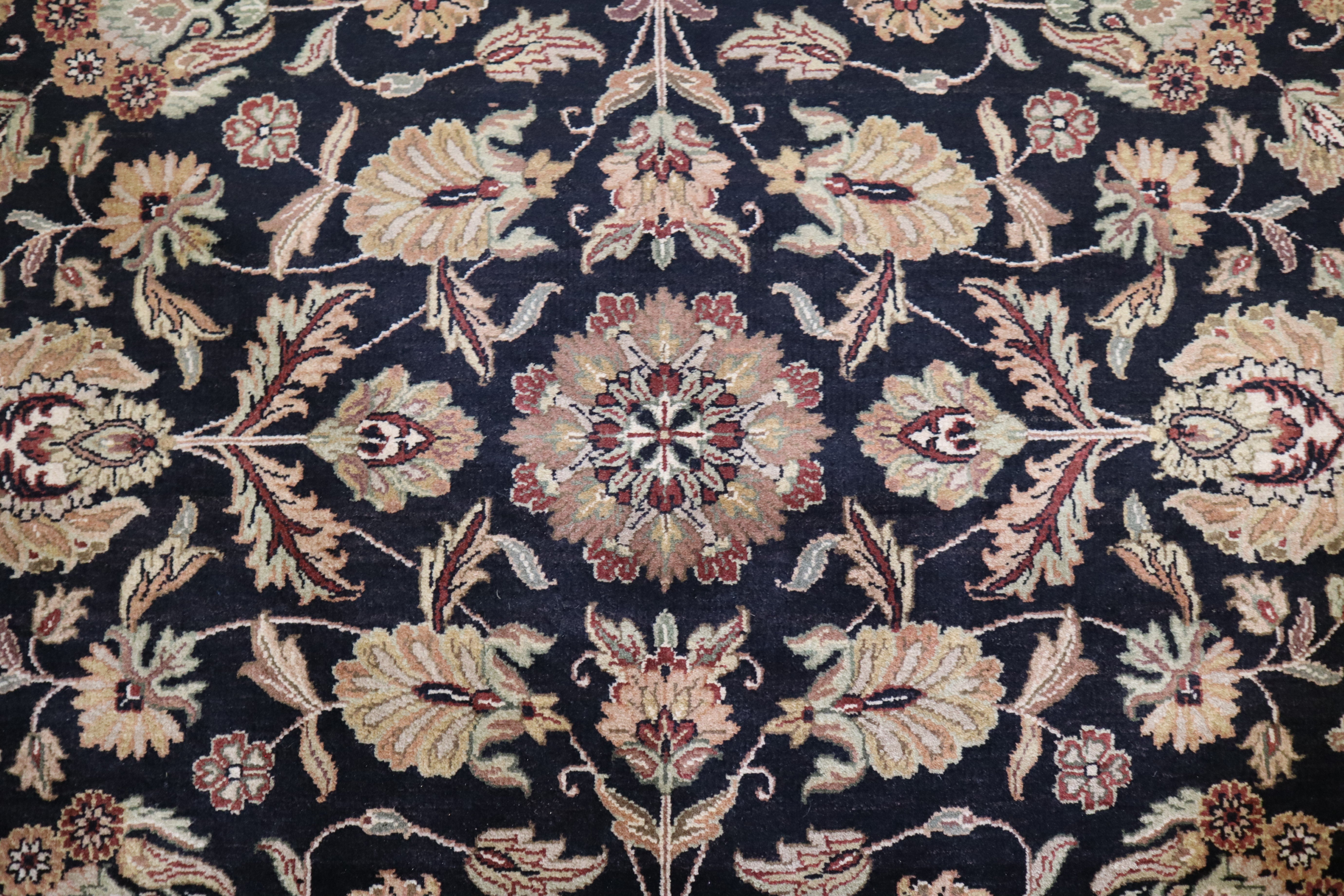 This beautiful hand-knotted rug is made with wool.