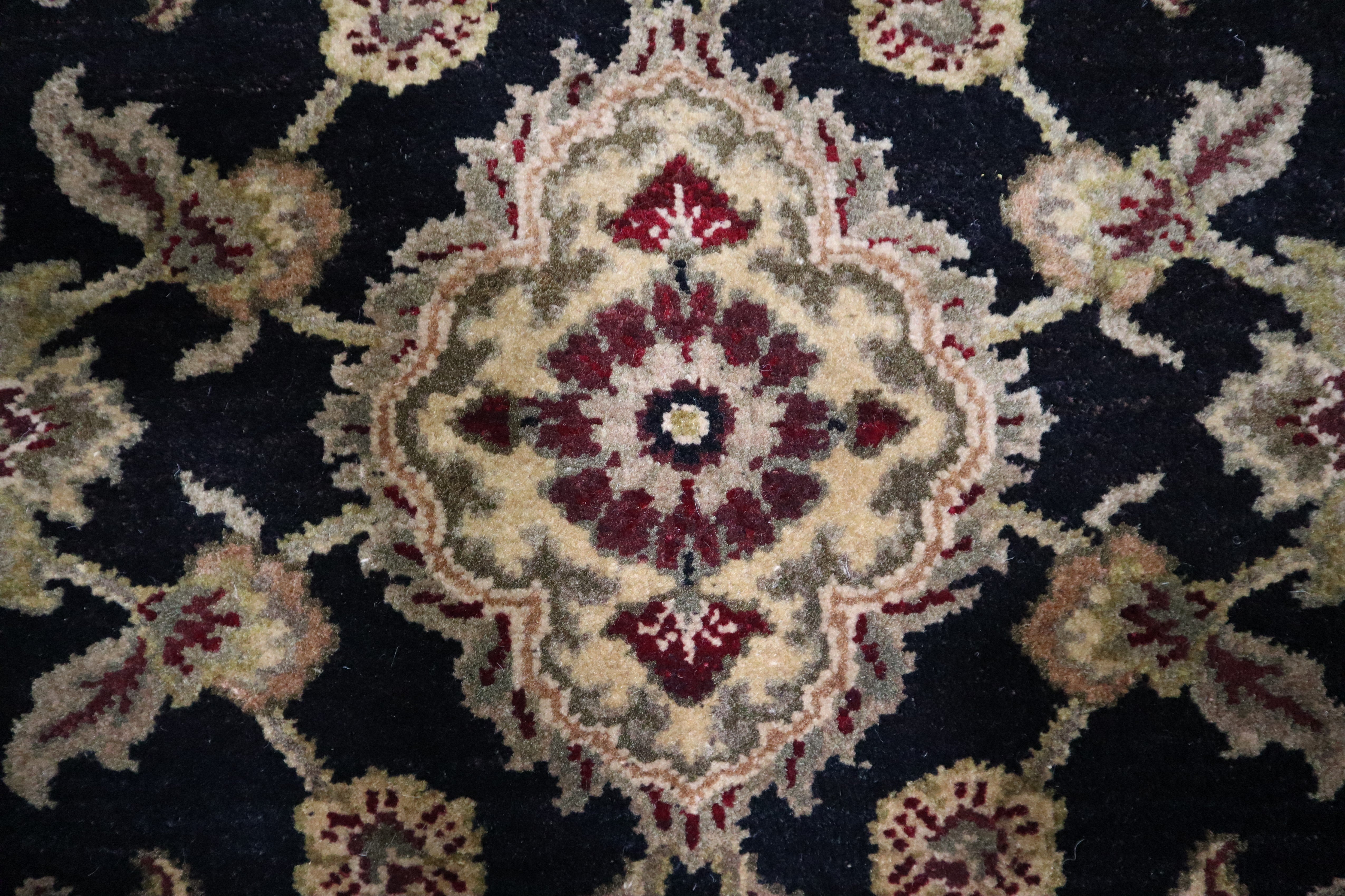 This beautiful hand-knotted rug is made with 100% wool.