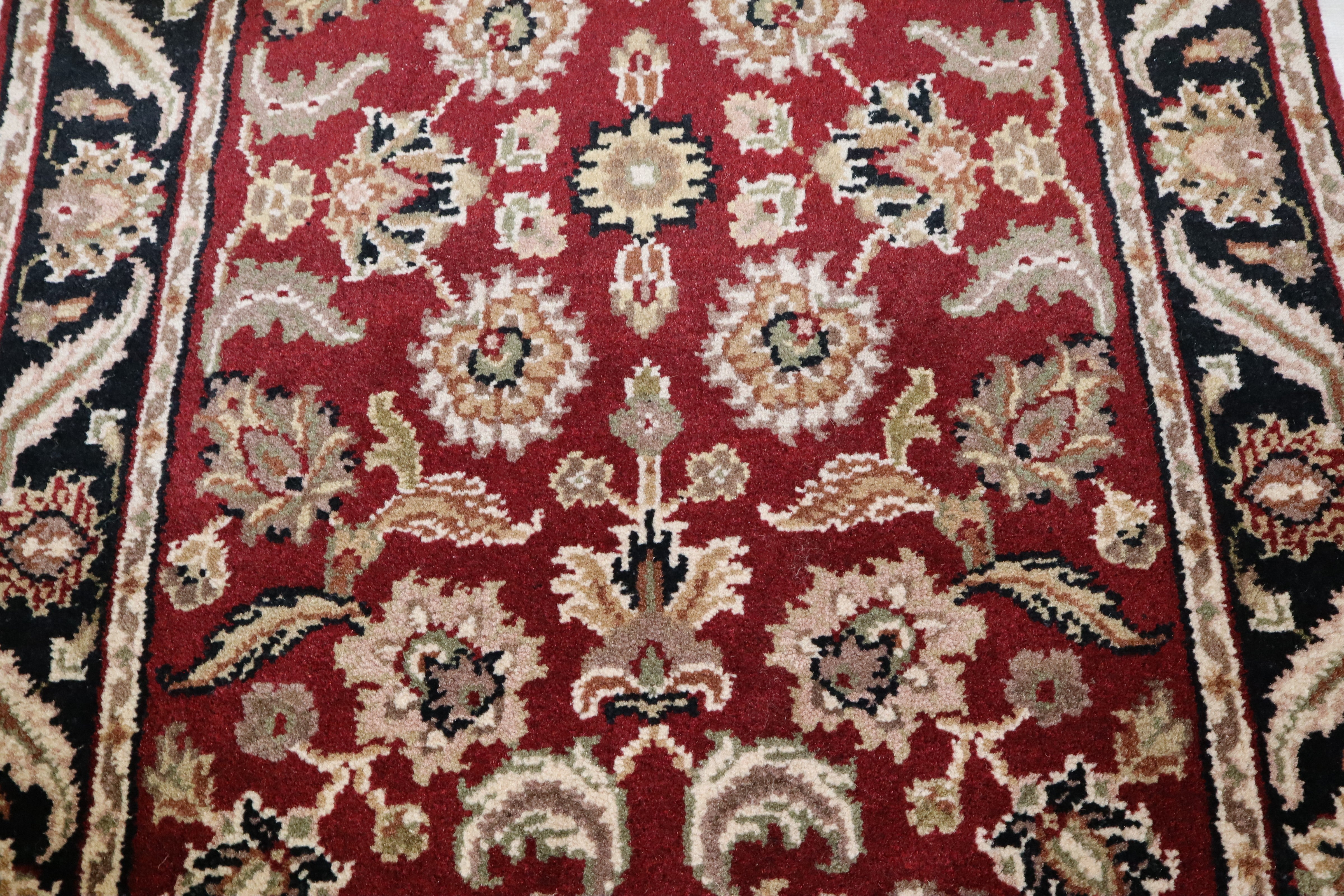 This beautiful hand-knotted rug is made with 100% wool.