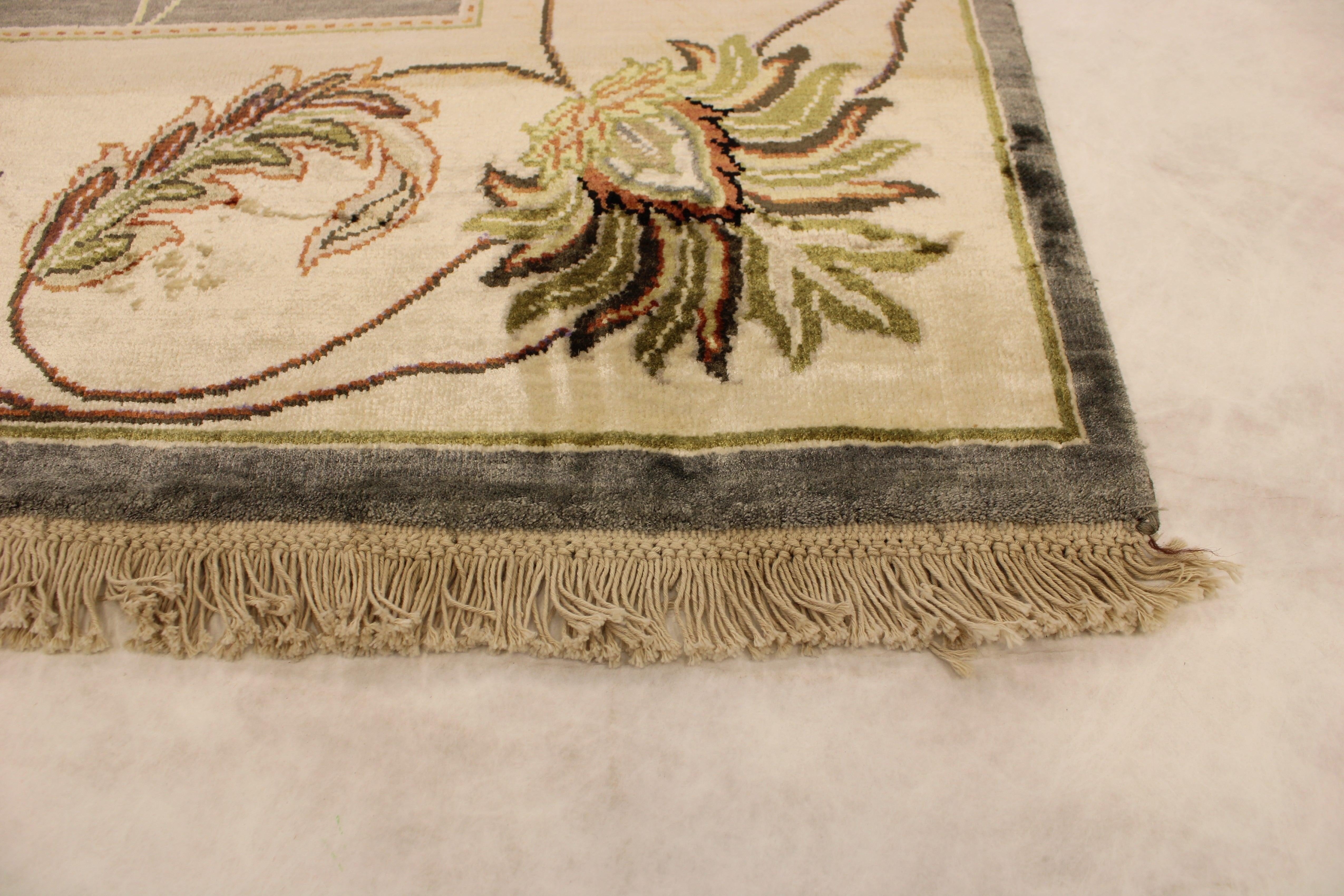 This beautiful hand knotted rug is made with 100% lambs wool and silk.