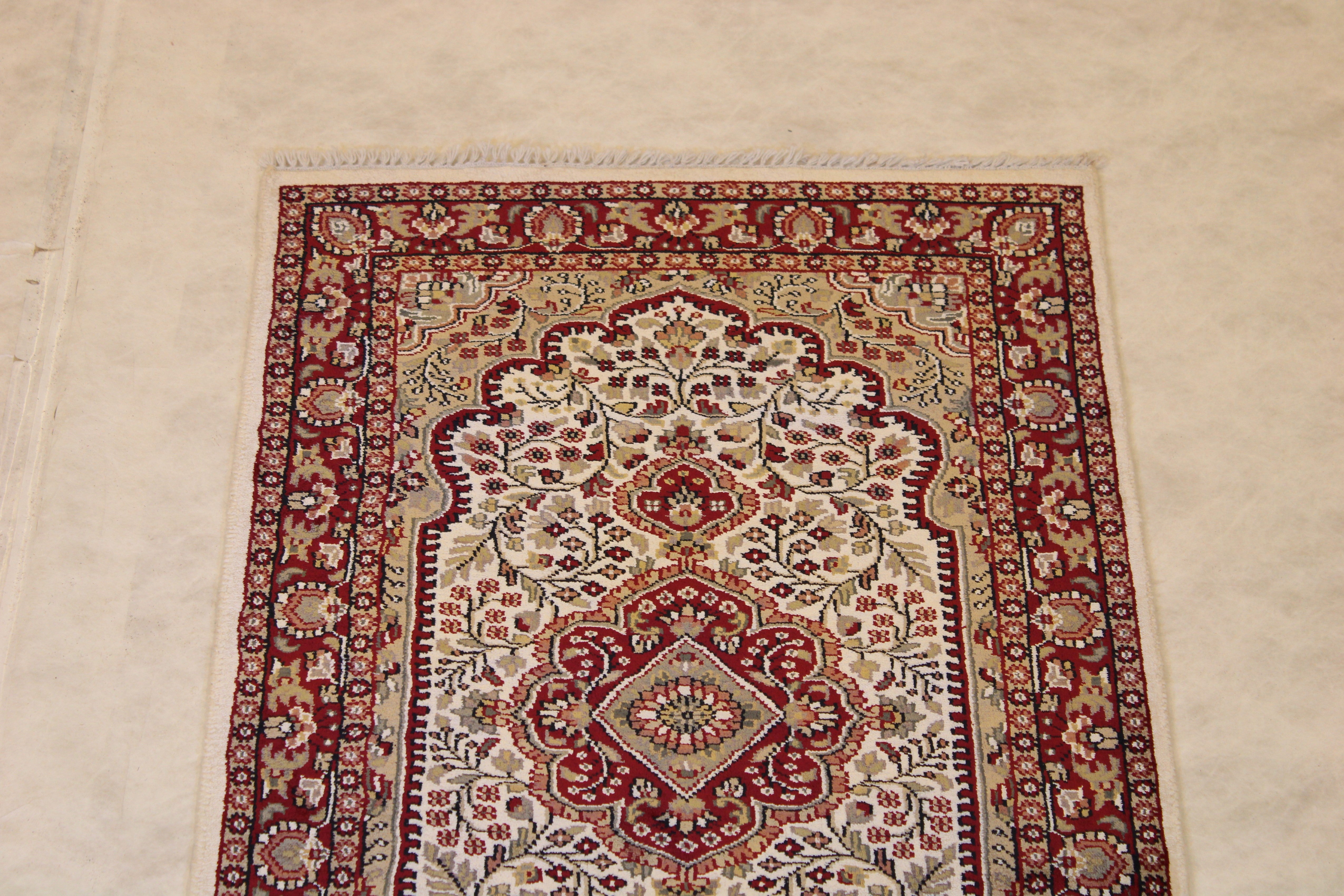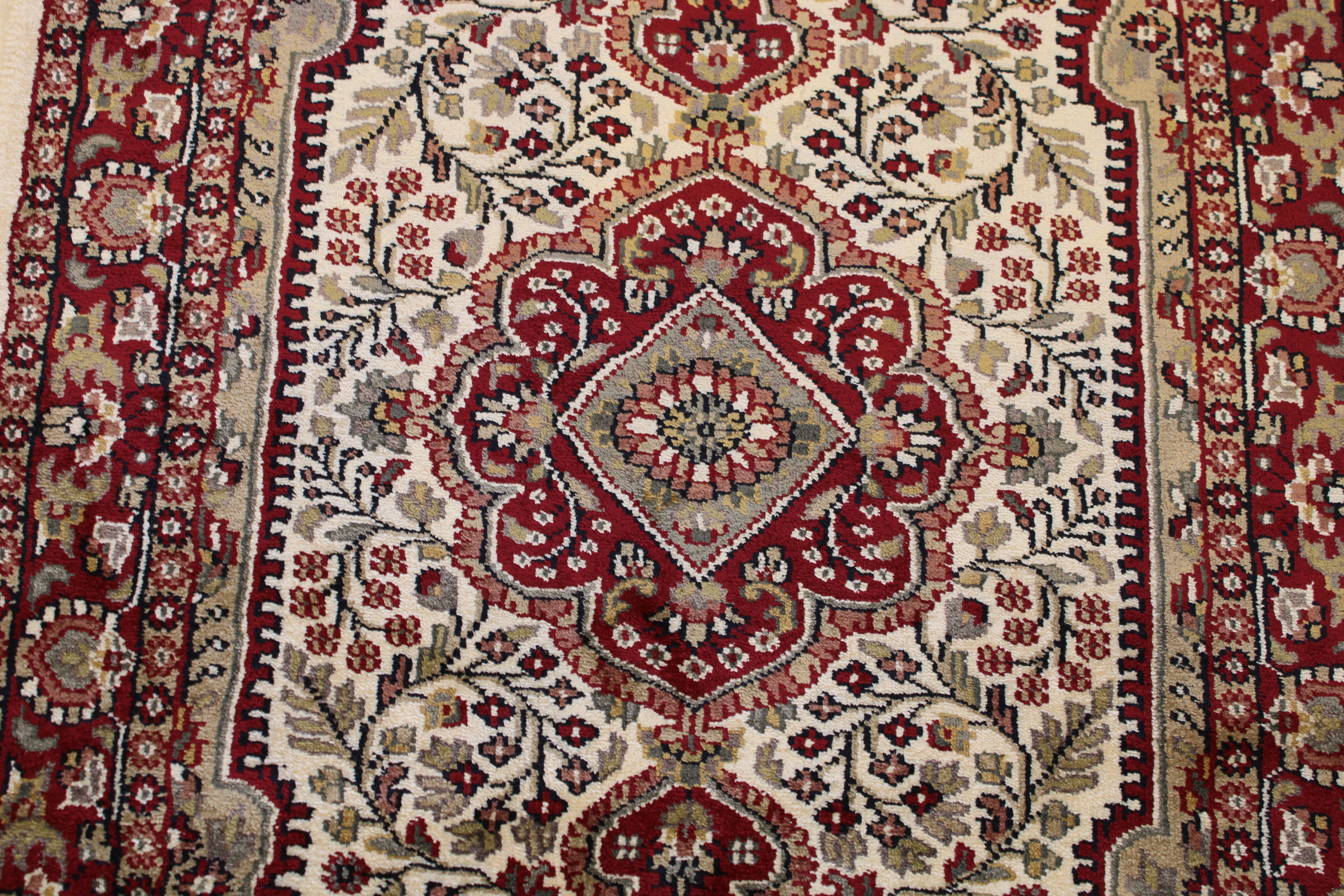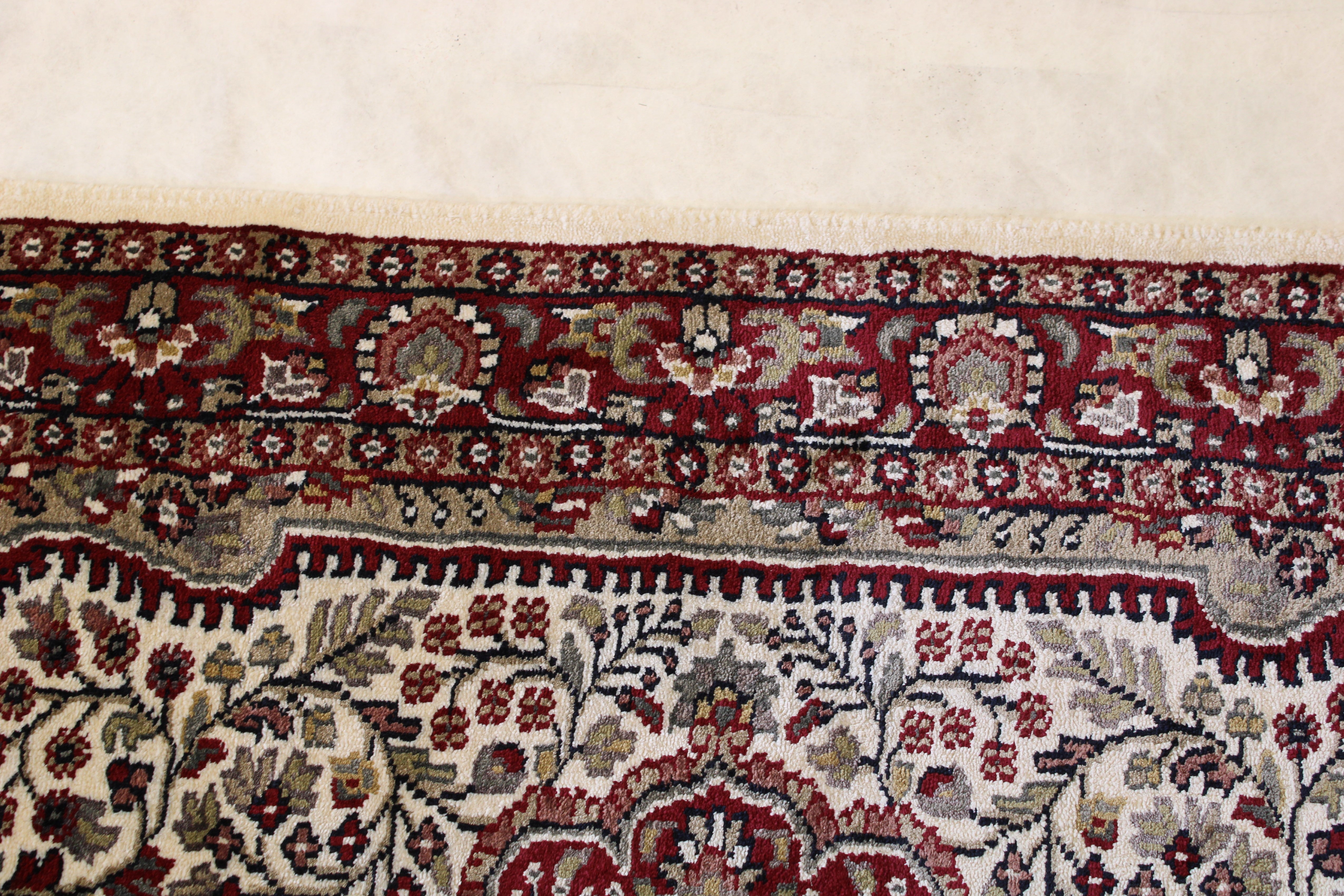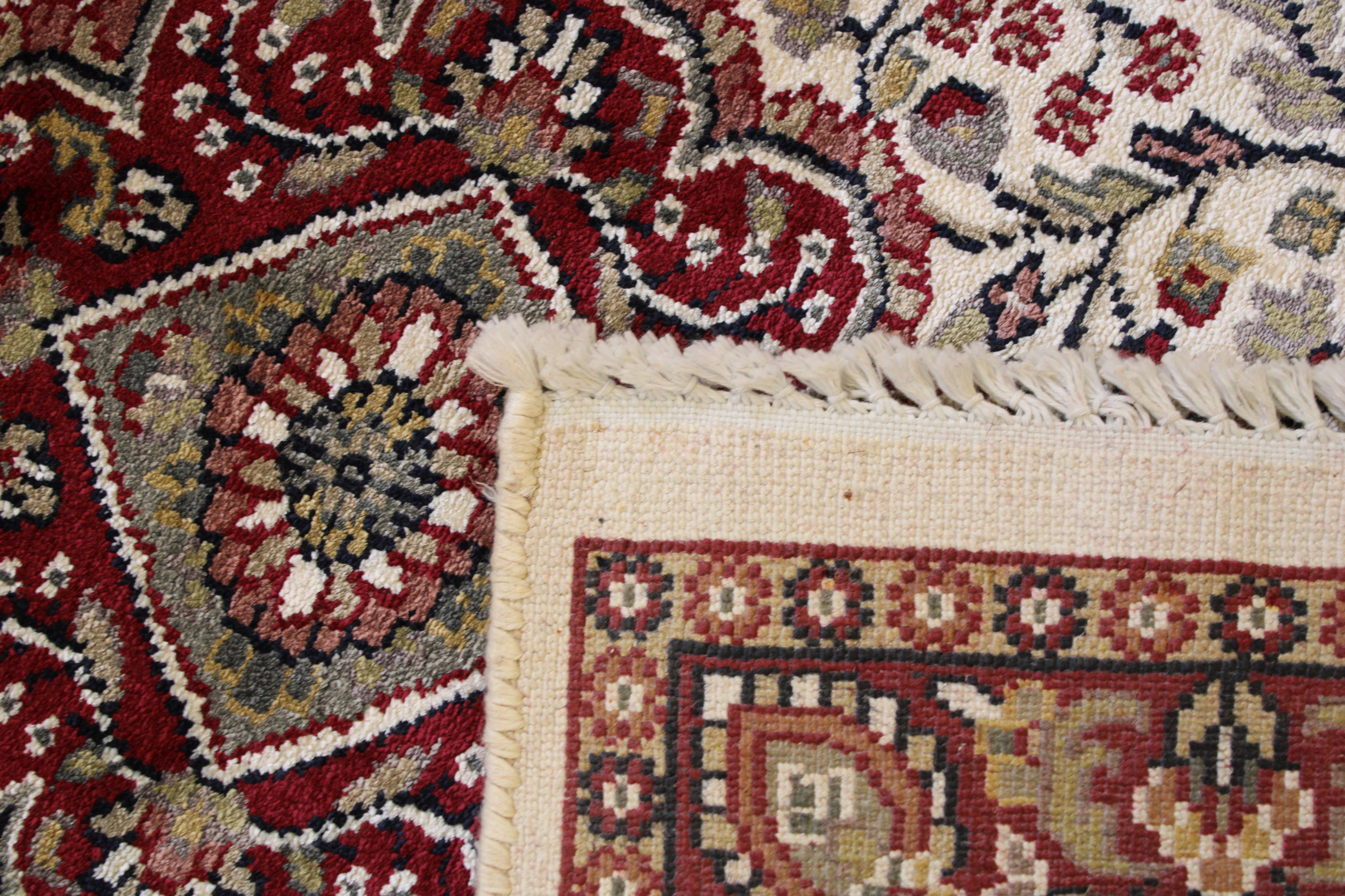 This beautiful hand knotted rug is made with wool.