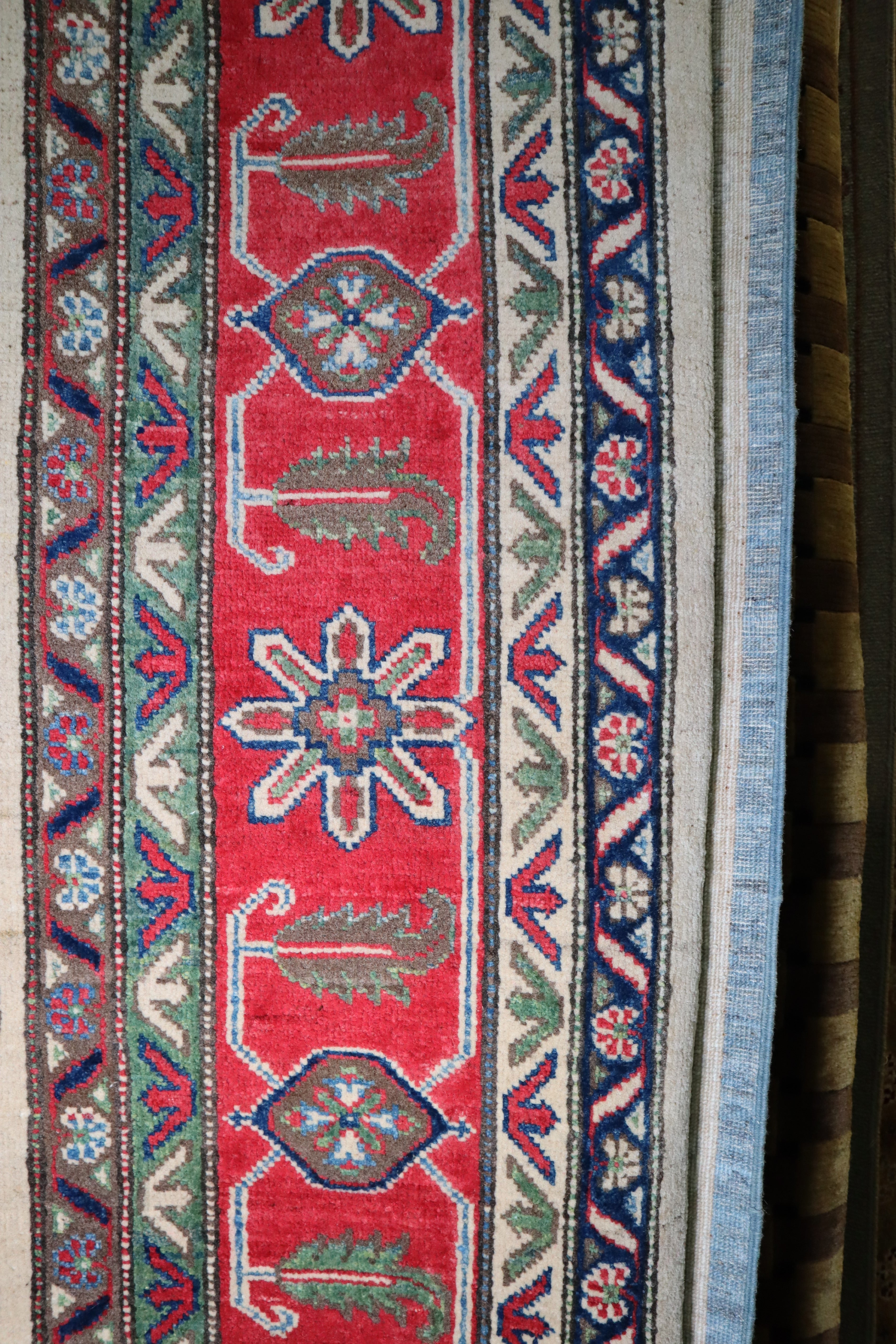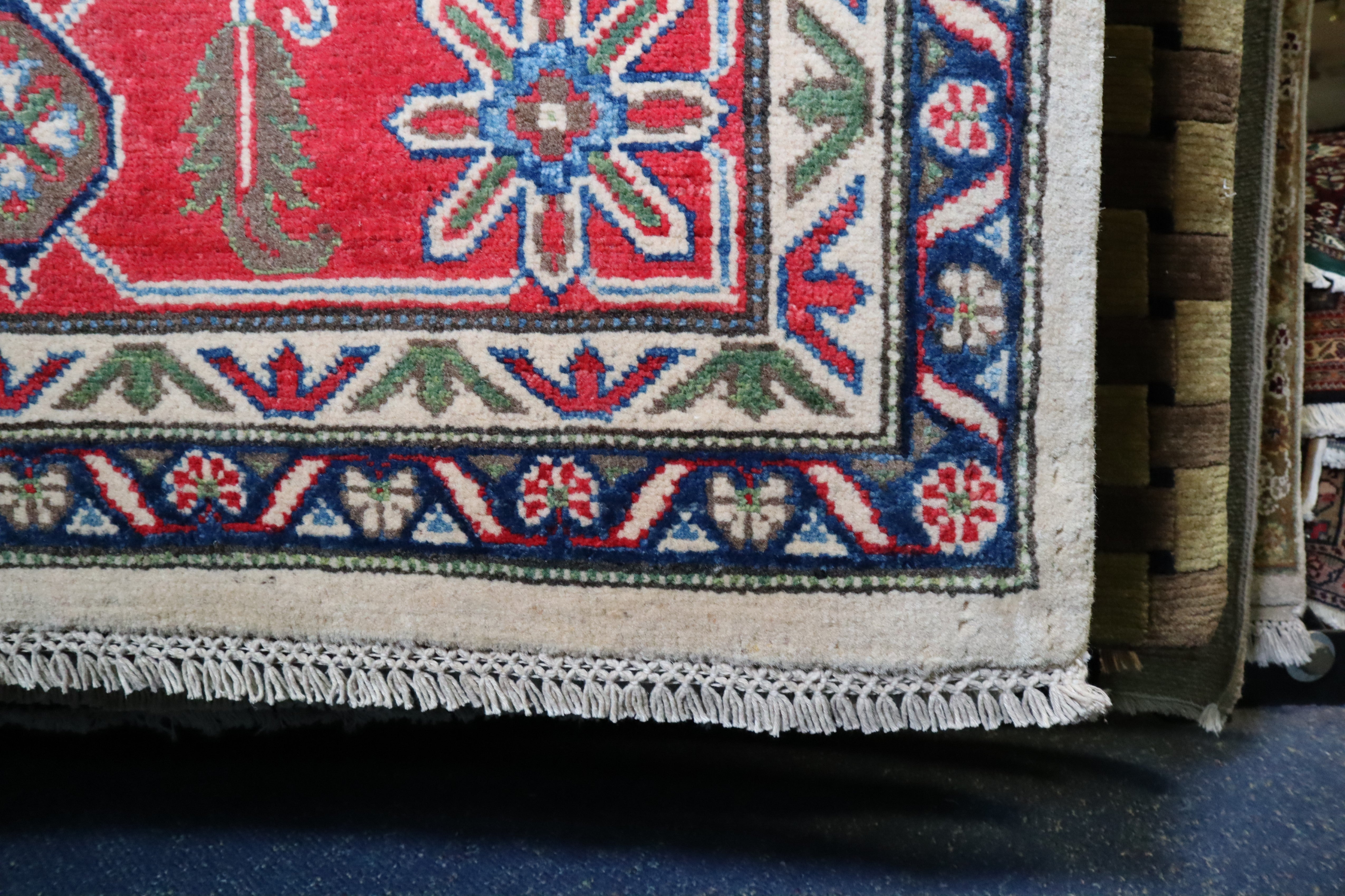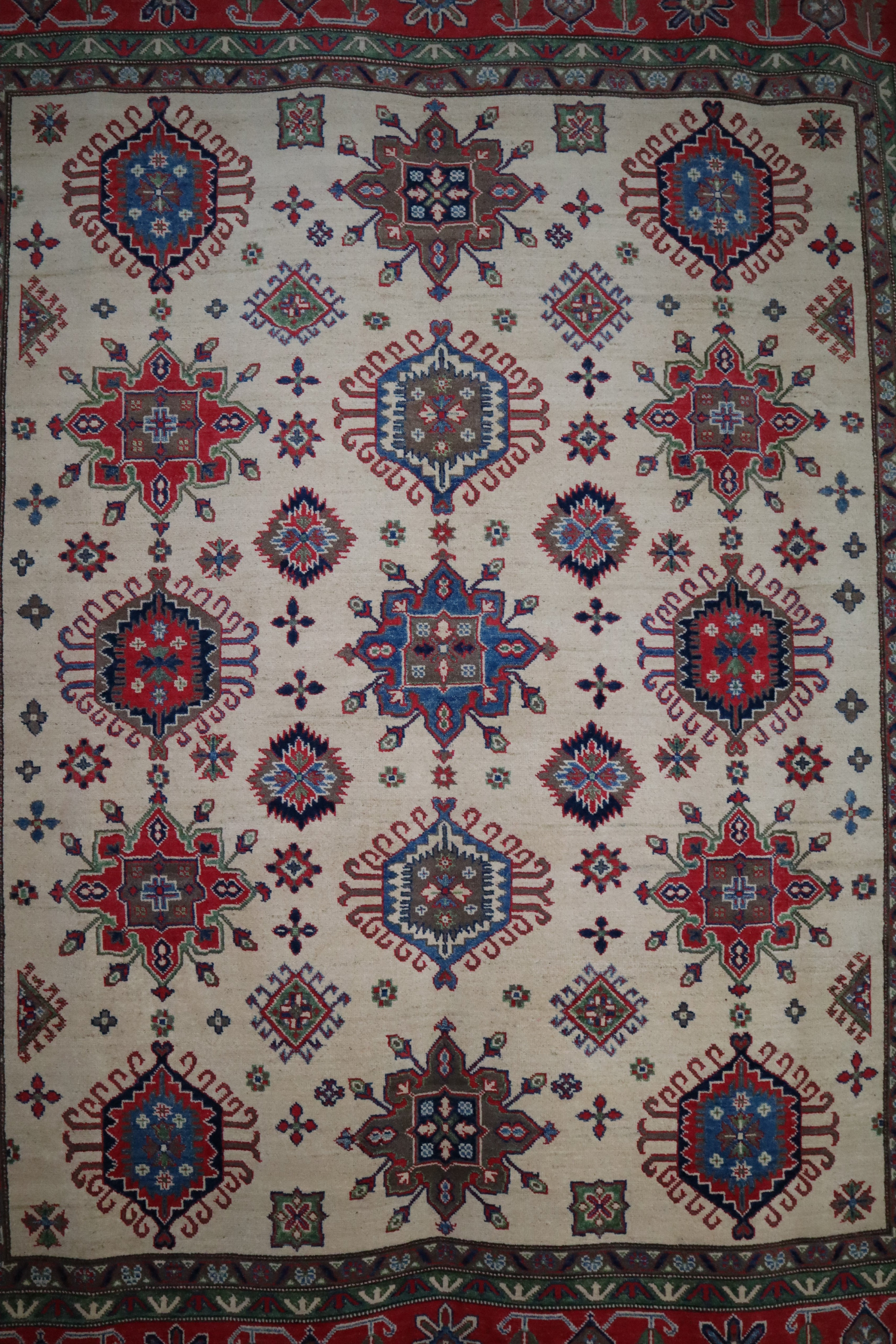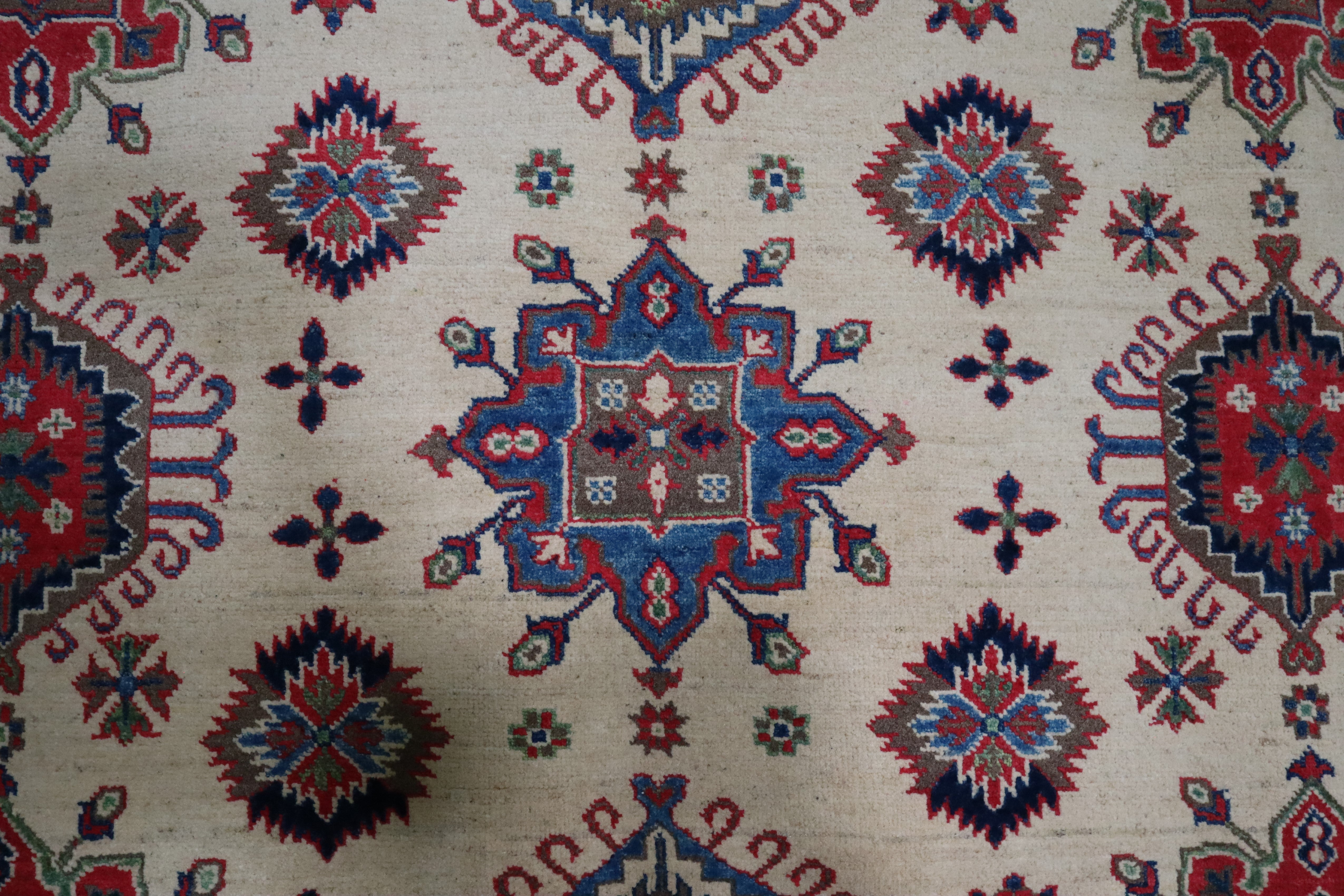 This rug is in excellent condition. Nice colors and patterning. Very natural wool and super colors.