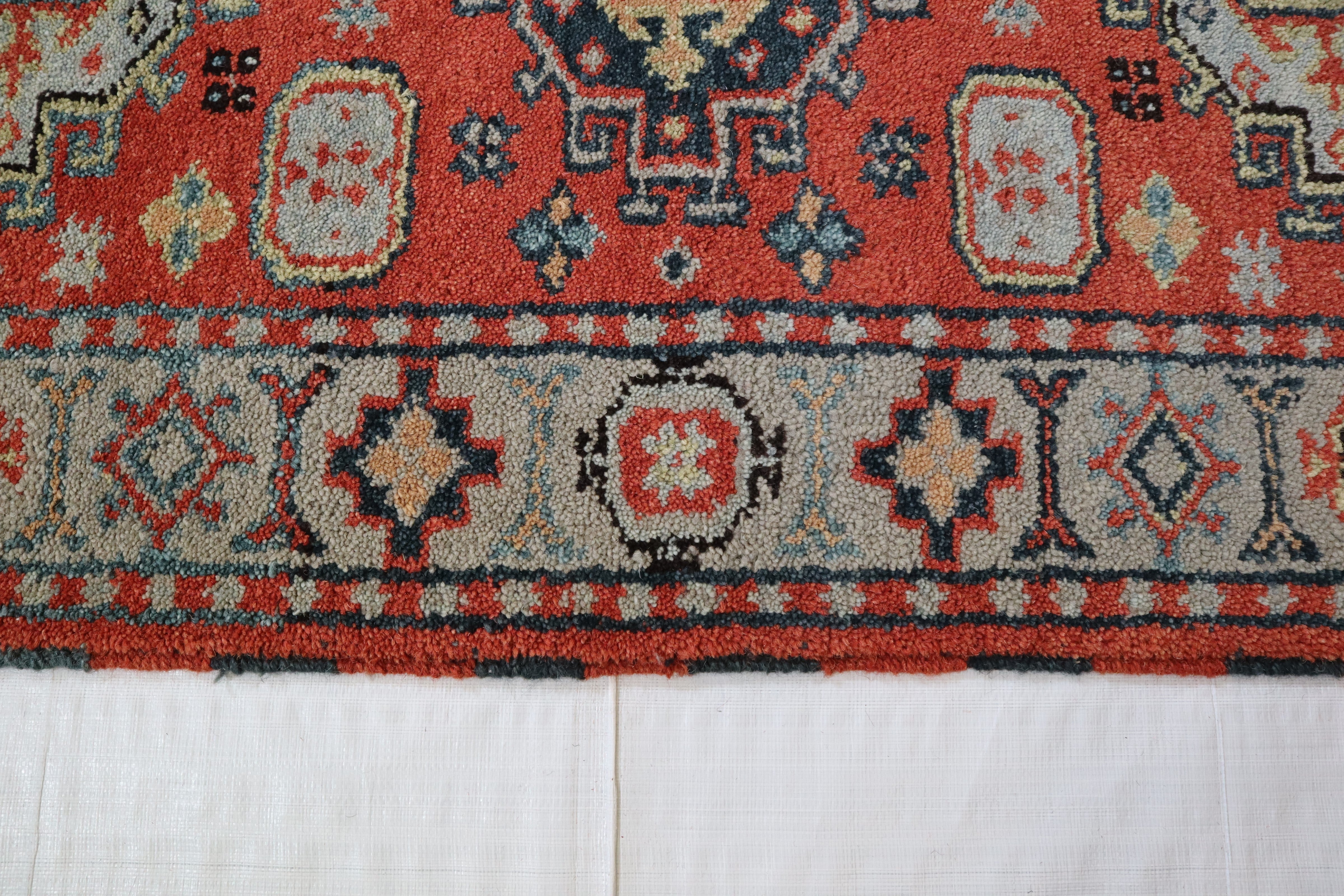 This beautiful hand-knotted rug is made with 100% wool.