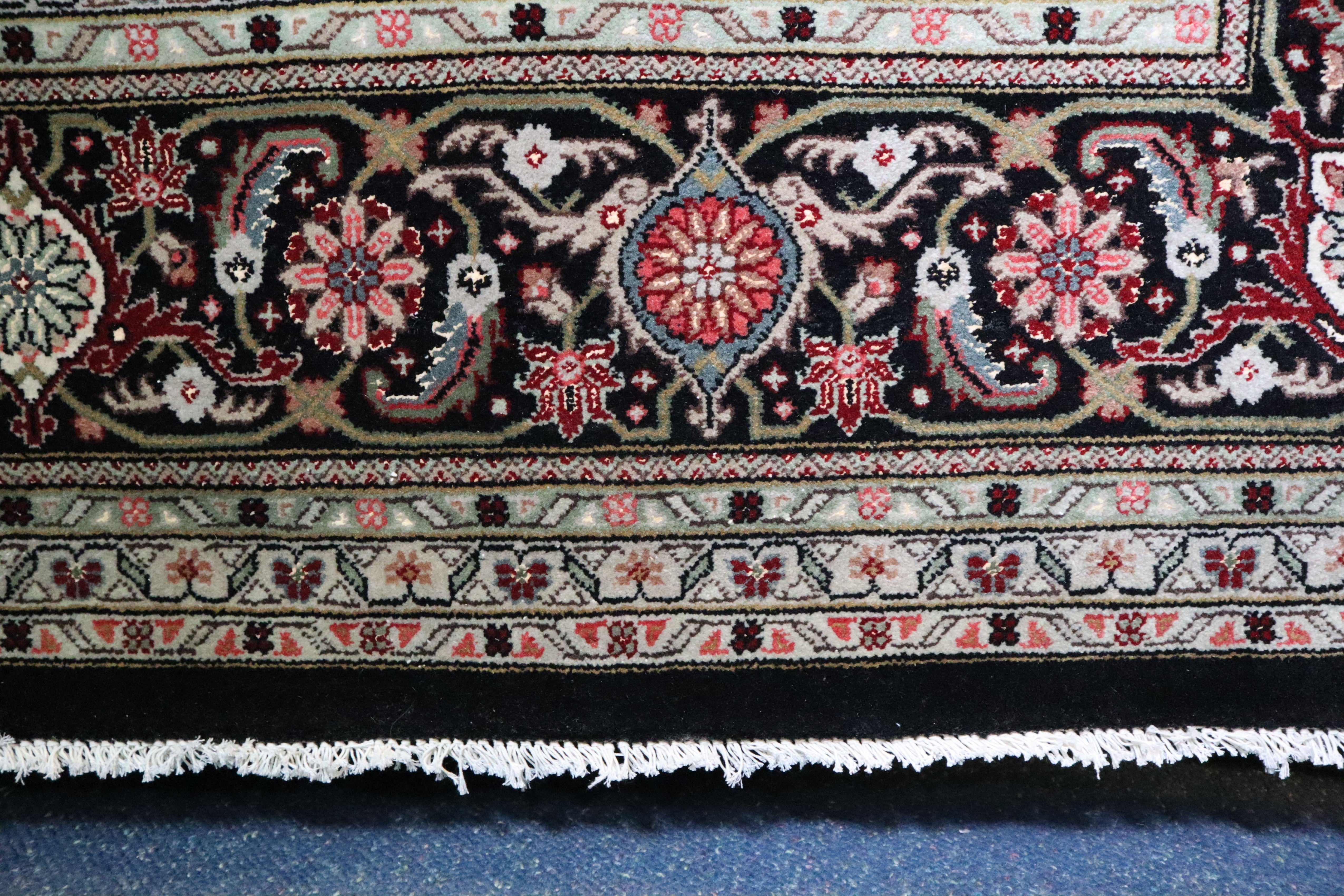 This beautiful hand-knotted rug is made with 100% wool.