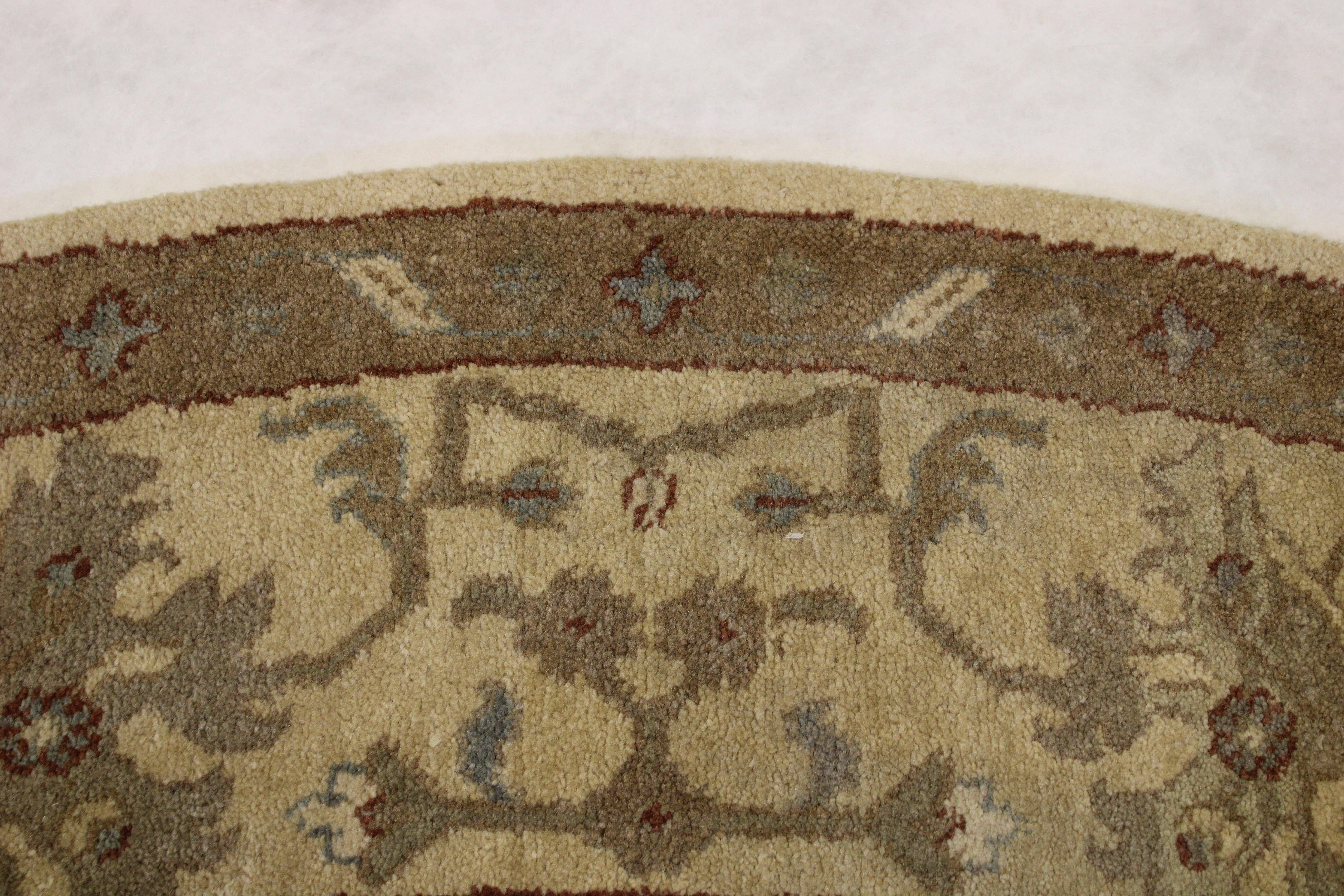 This beautiful hand knotted round rug made with 100% lambs wool.