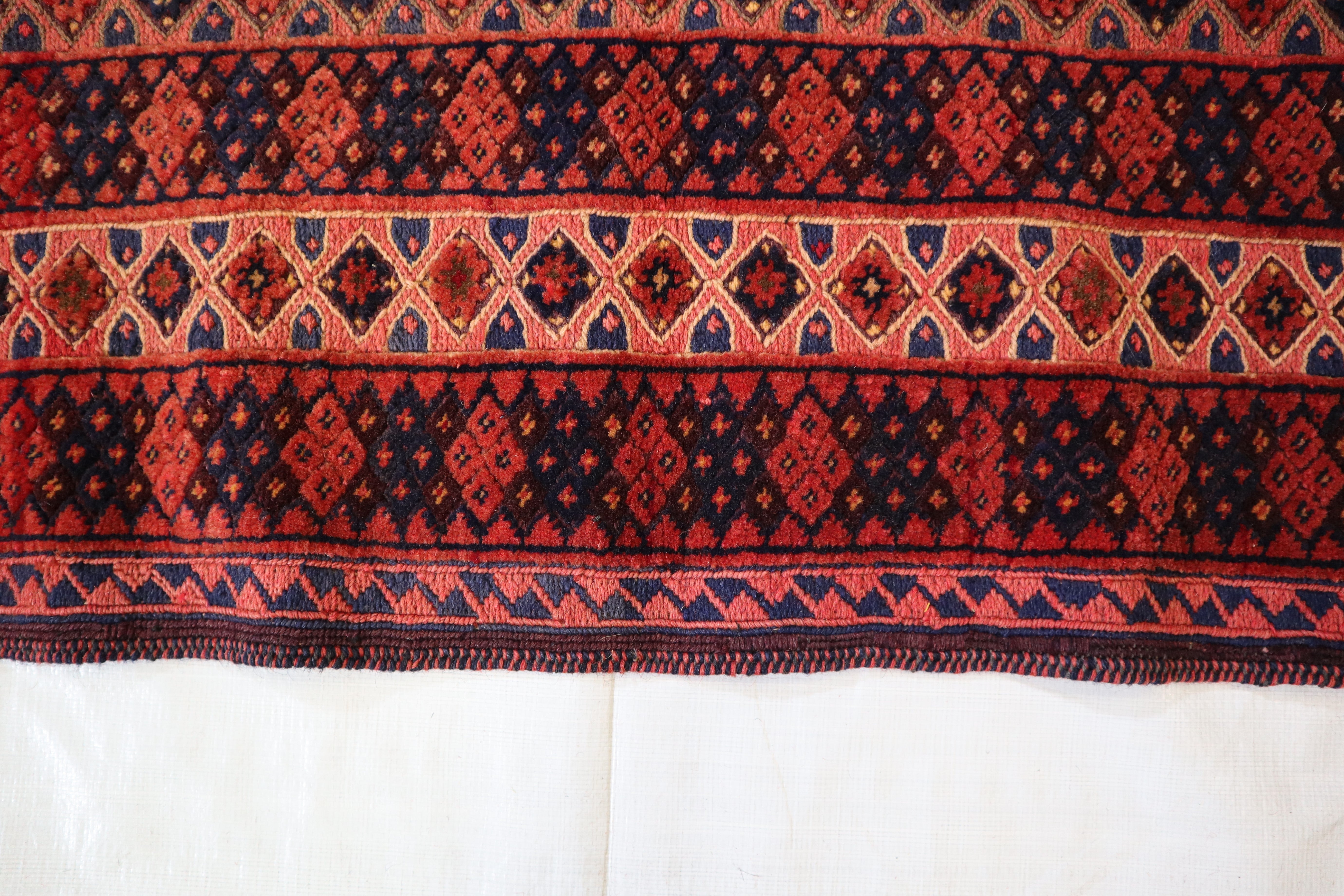 This rug is in an excellent condition. Nice colors and patterning. Very natural wool and super colors.