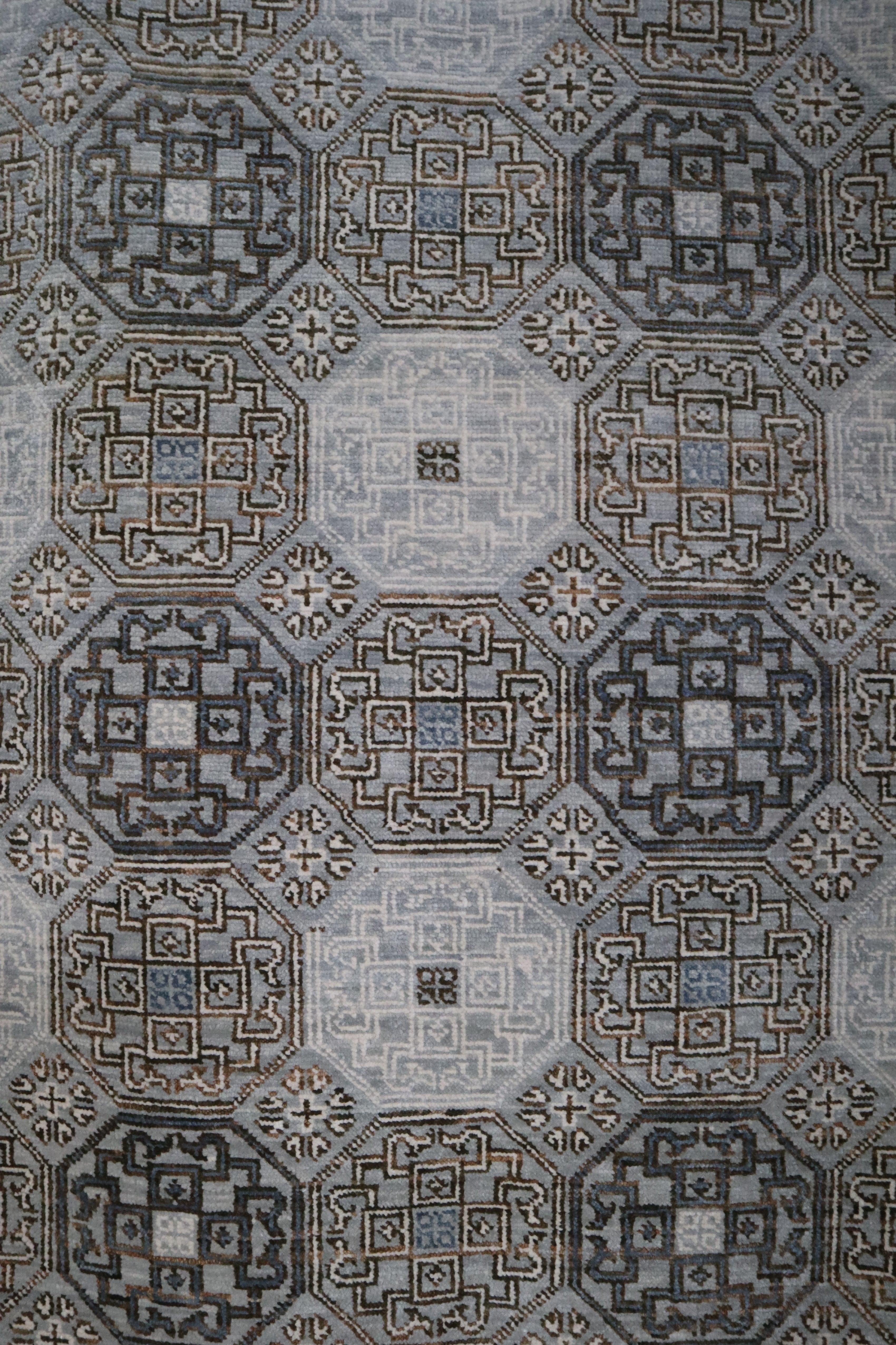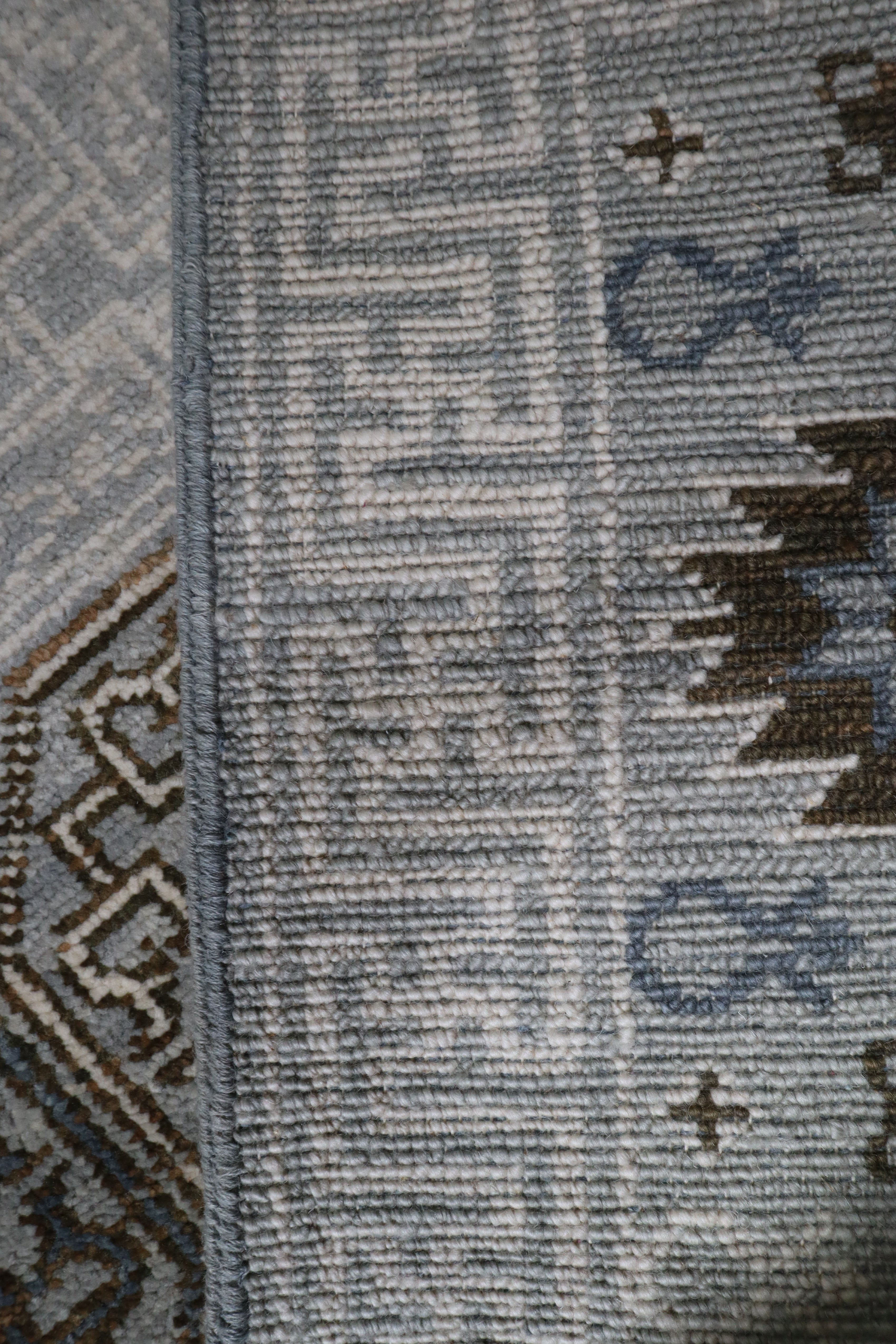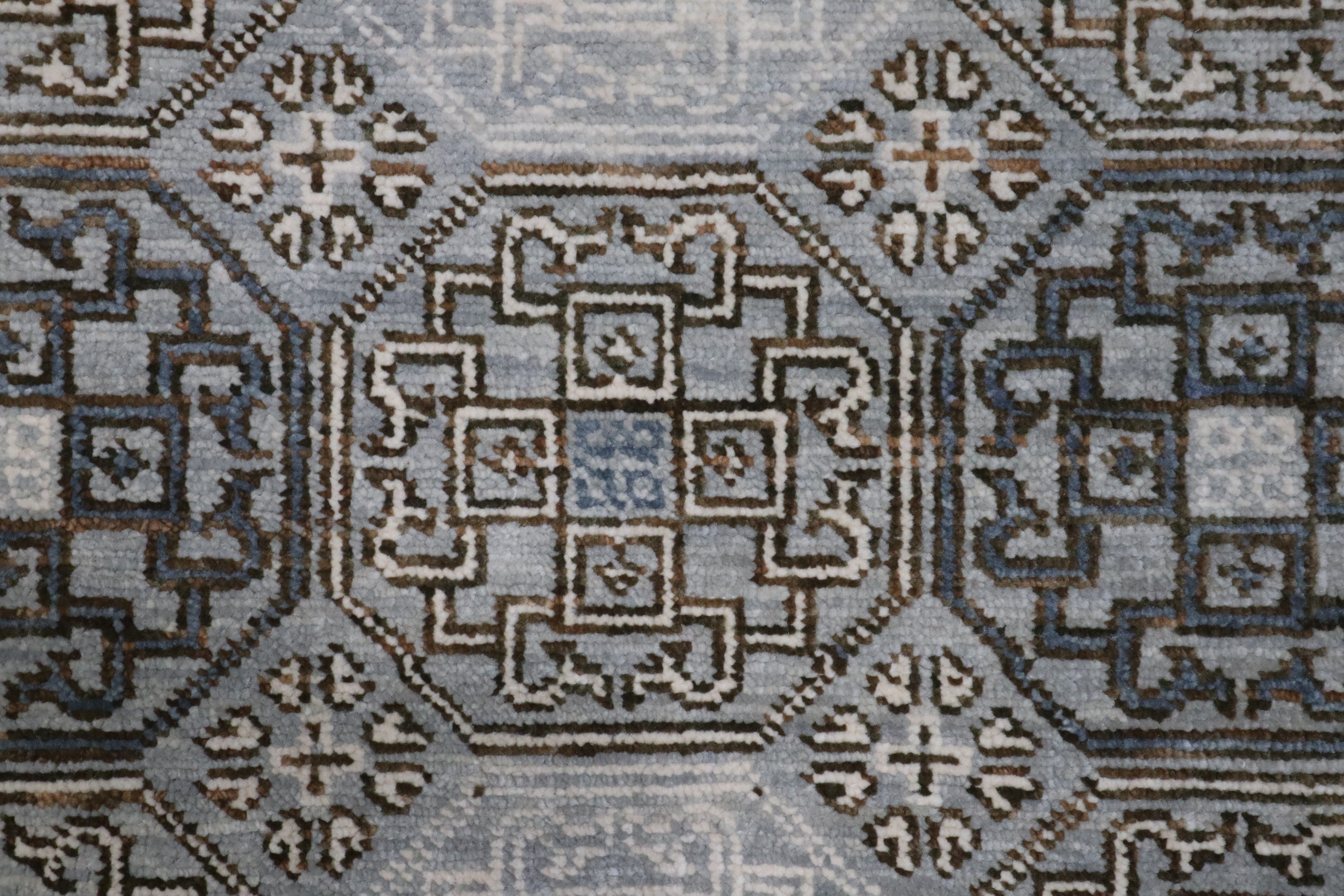 This beautiful hand-knotted rug is made with 100% wool.