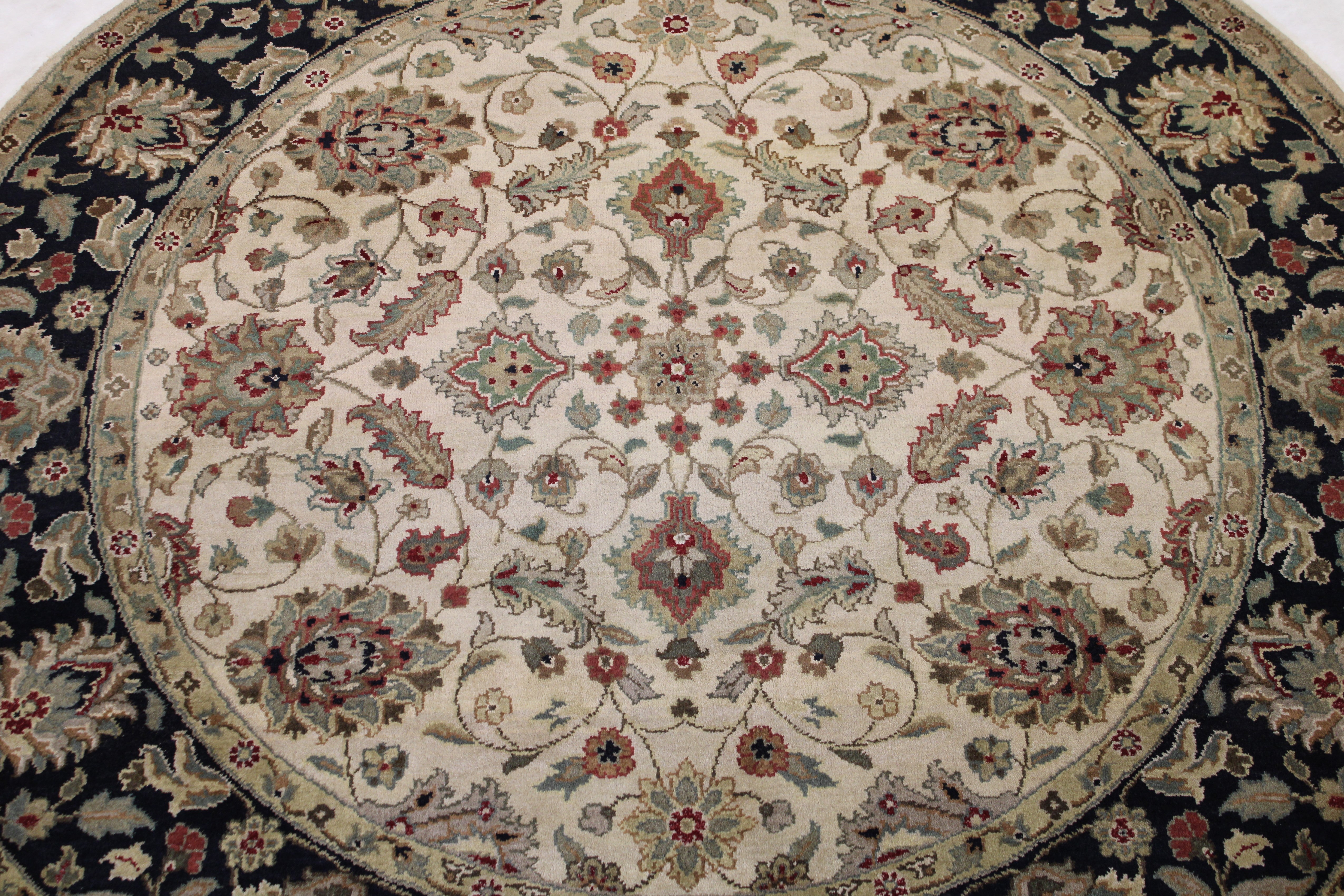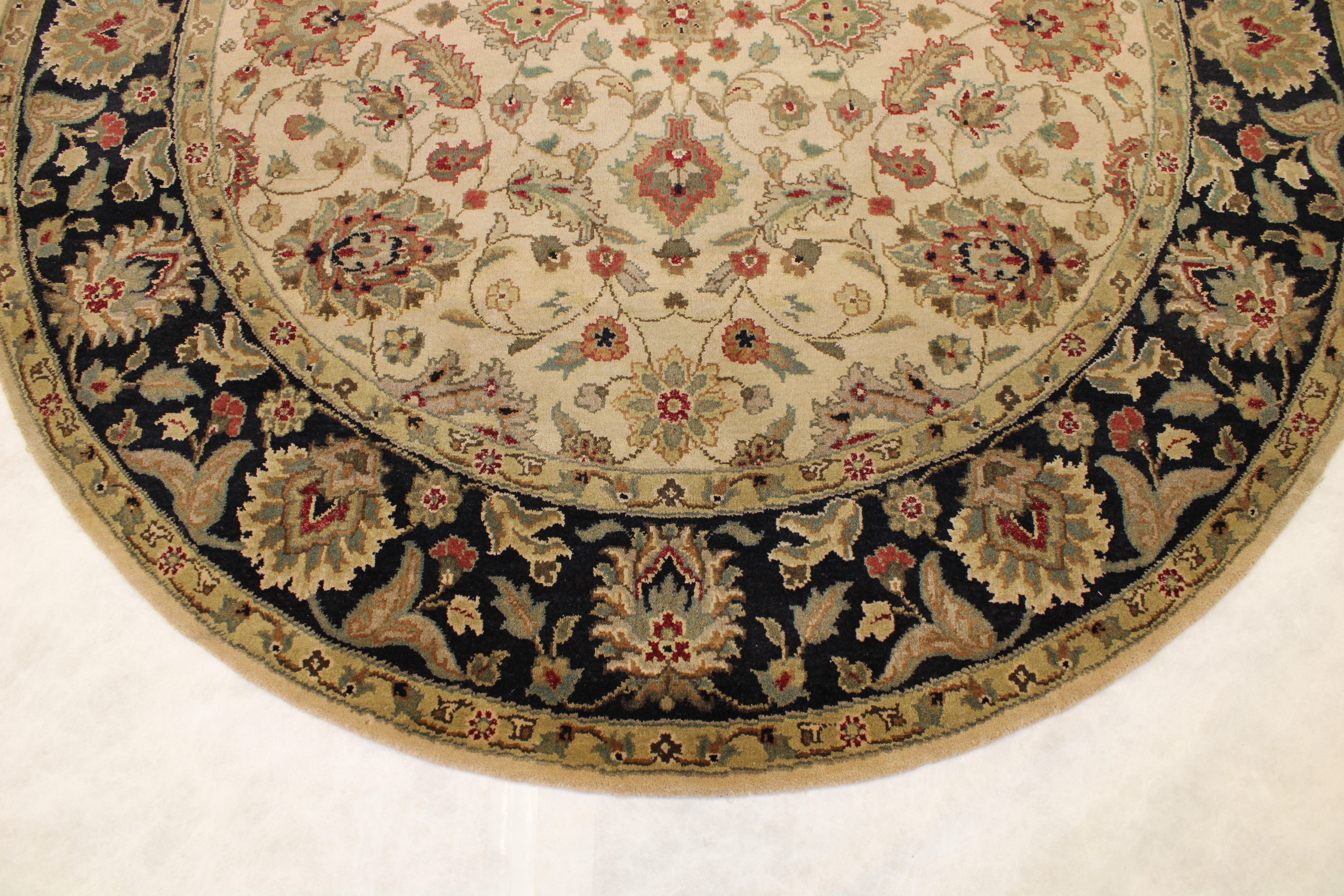 This beautiful hand-knotted rug is made with wool.