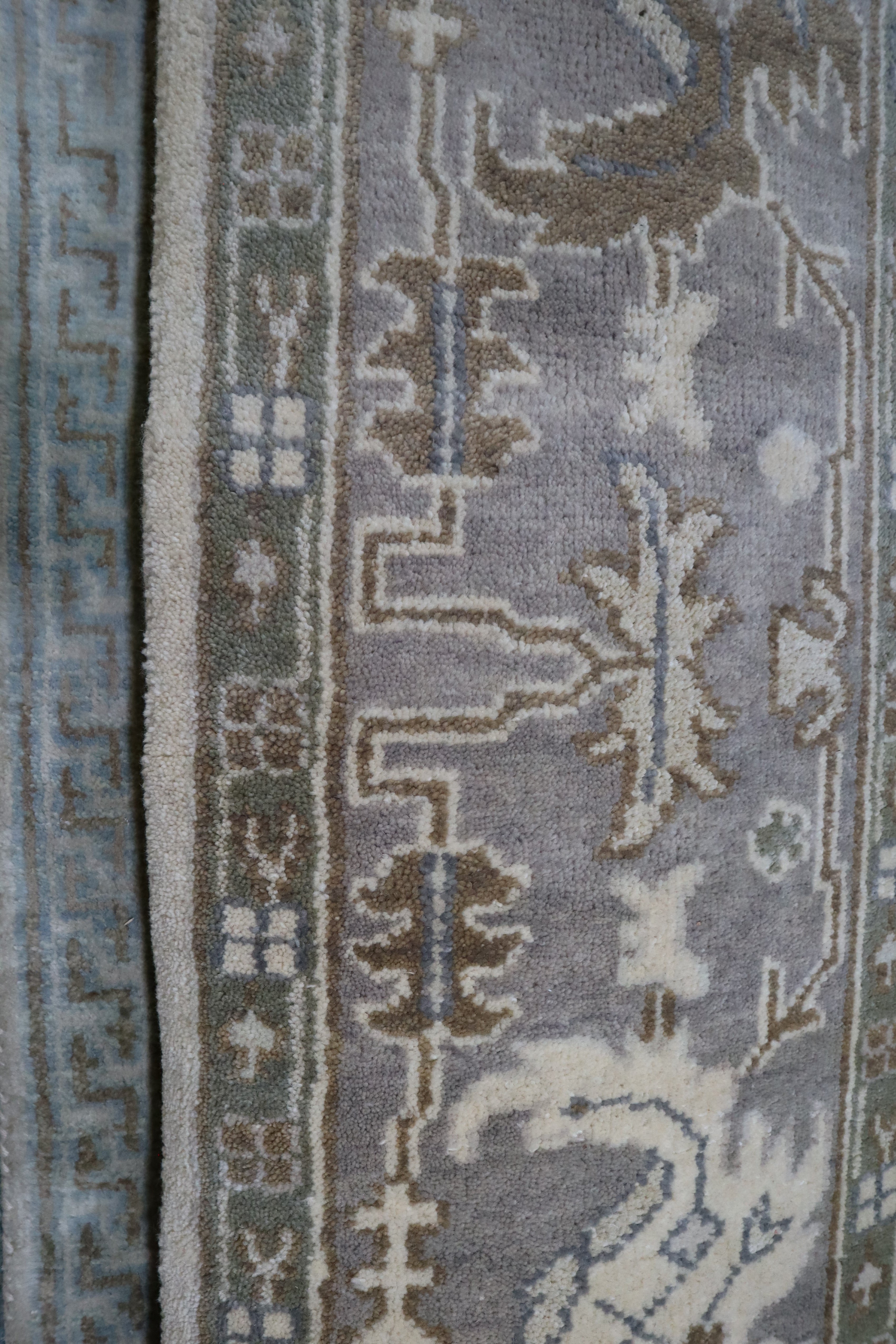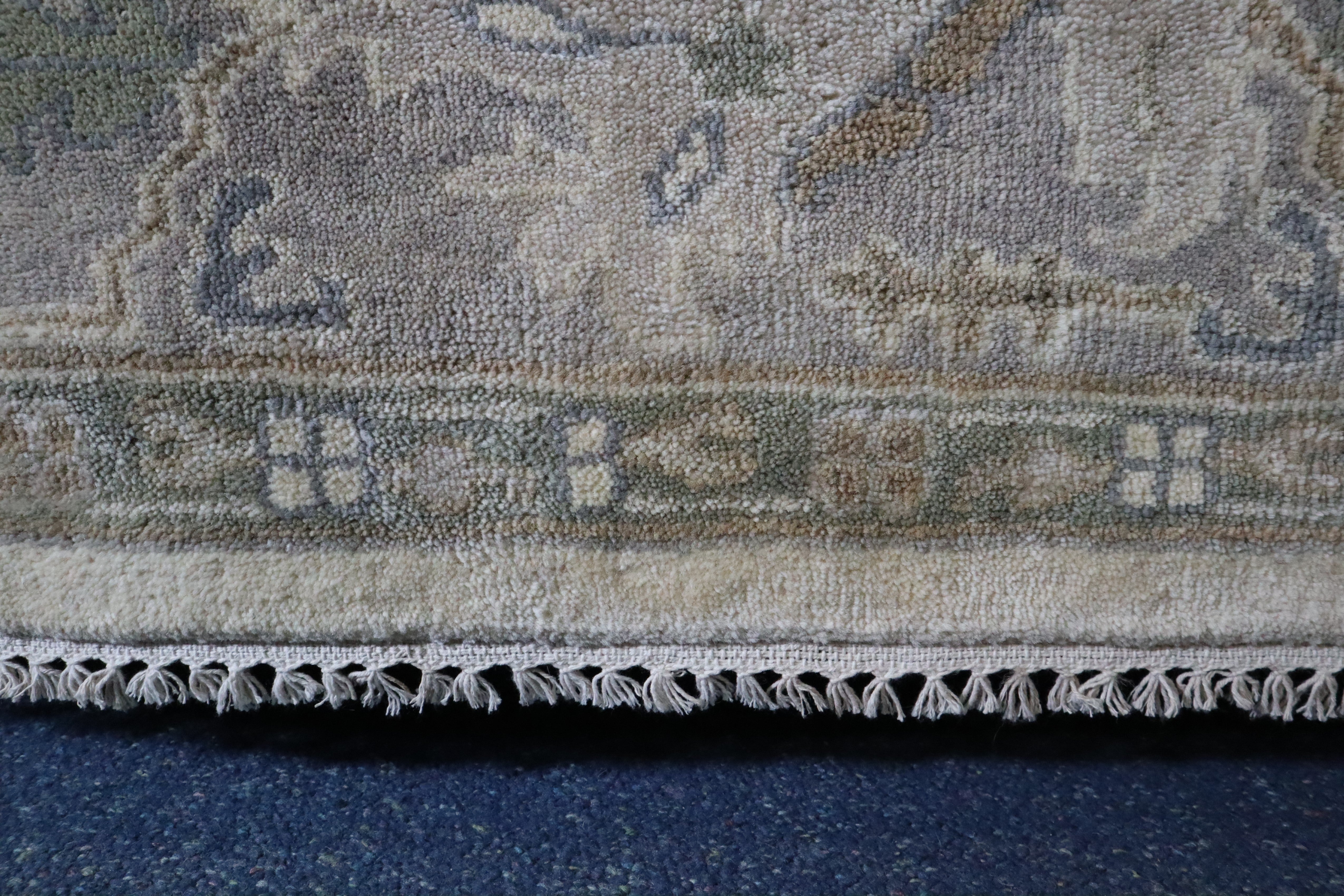 This beautiful hand-knotted rug is made with 100% wool.