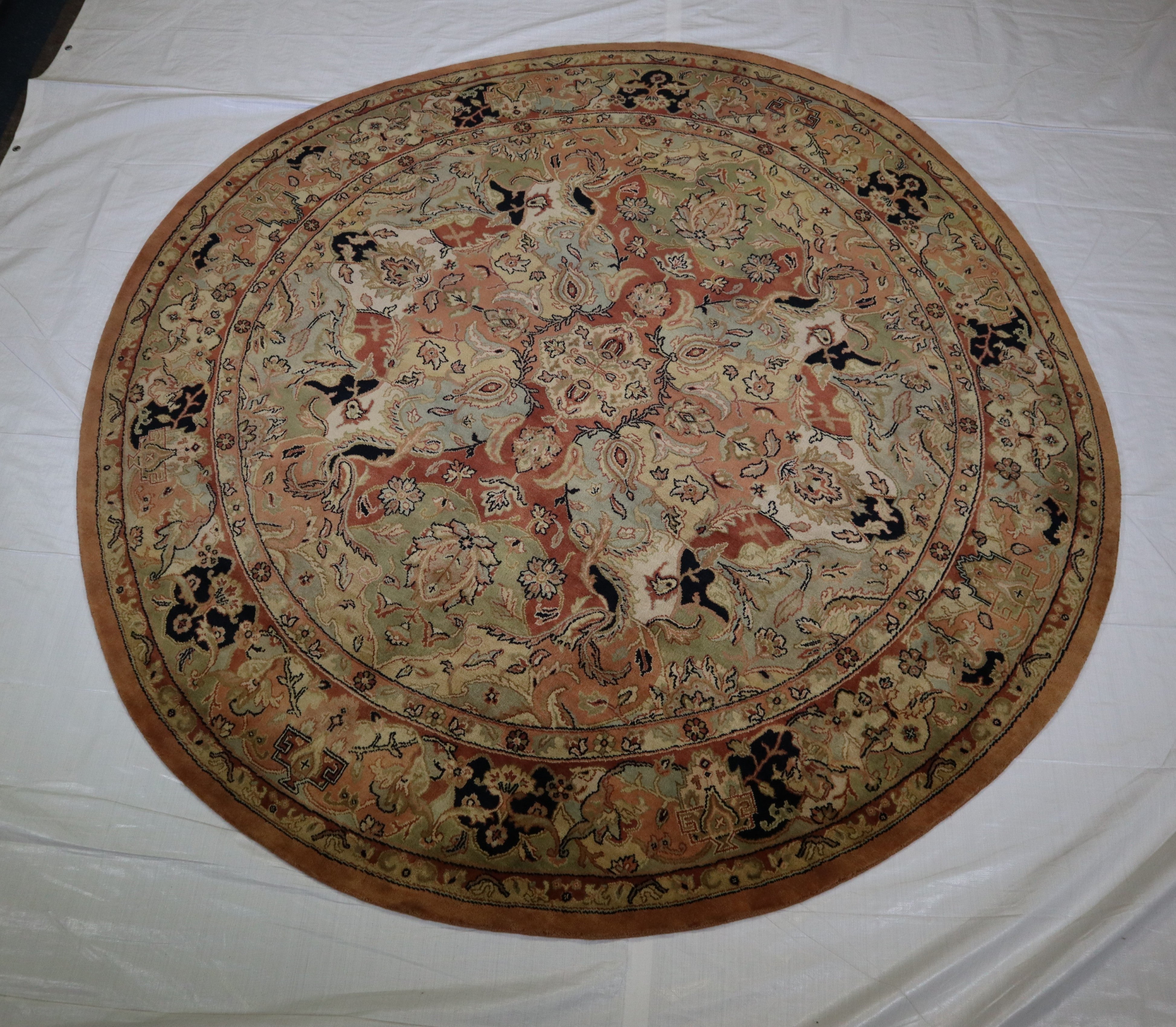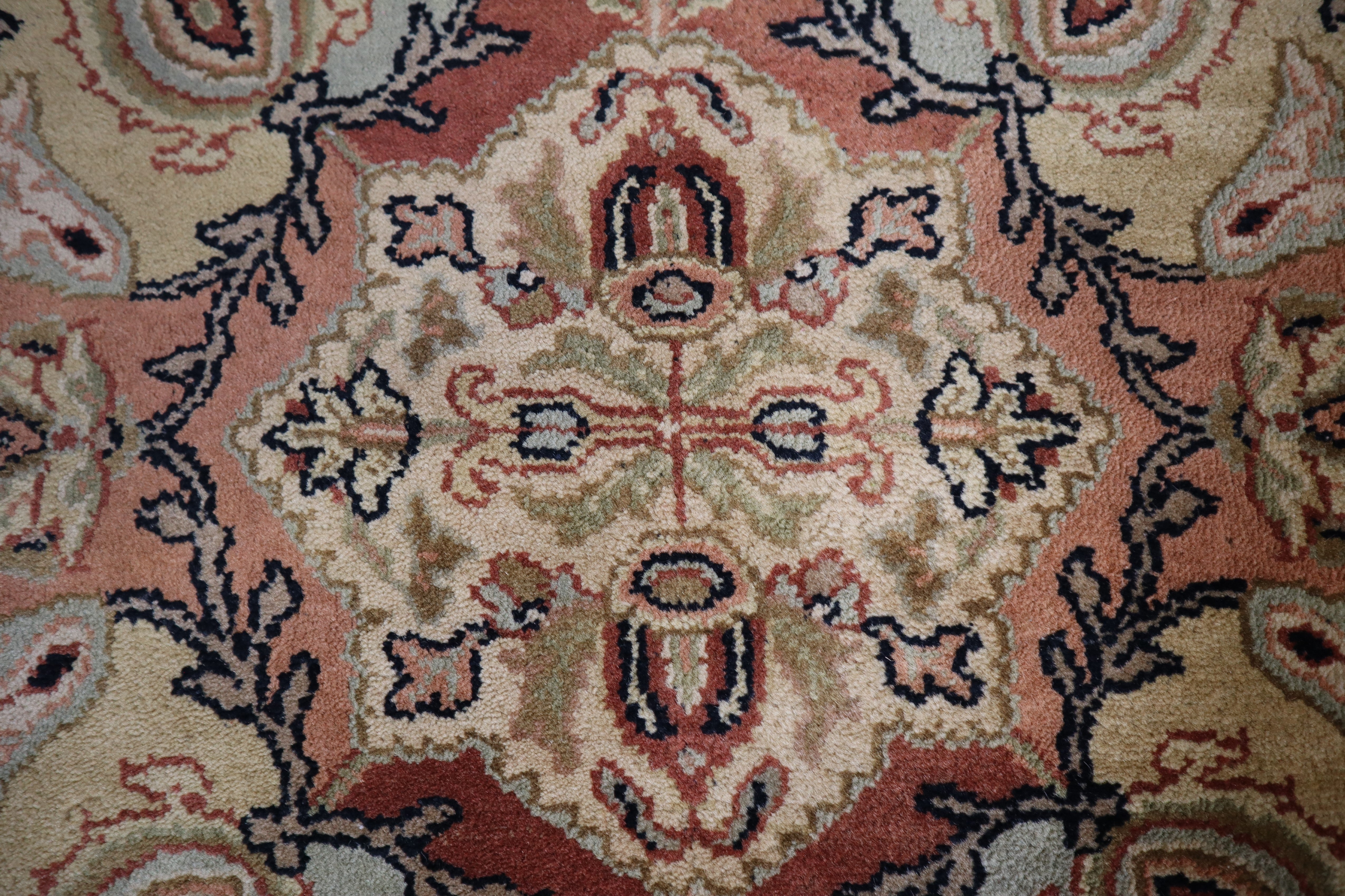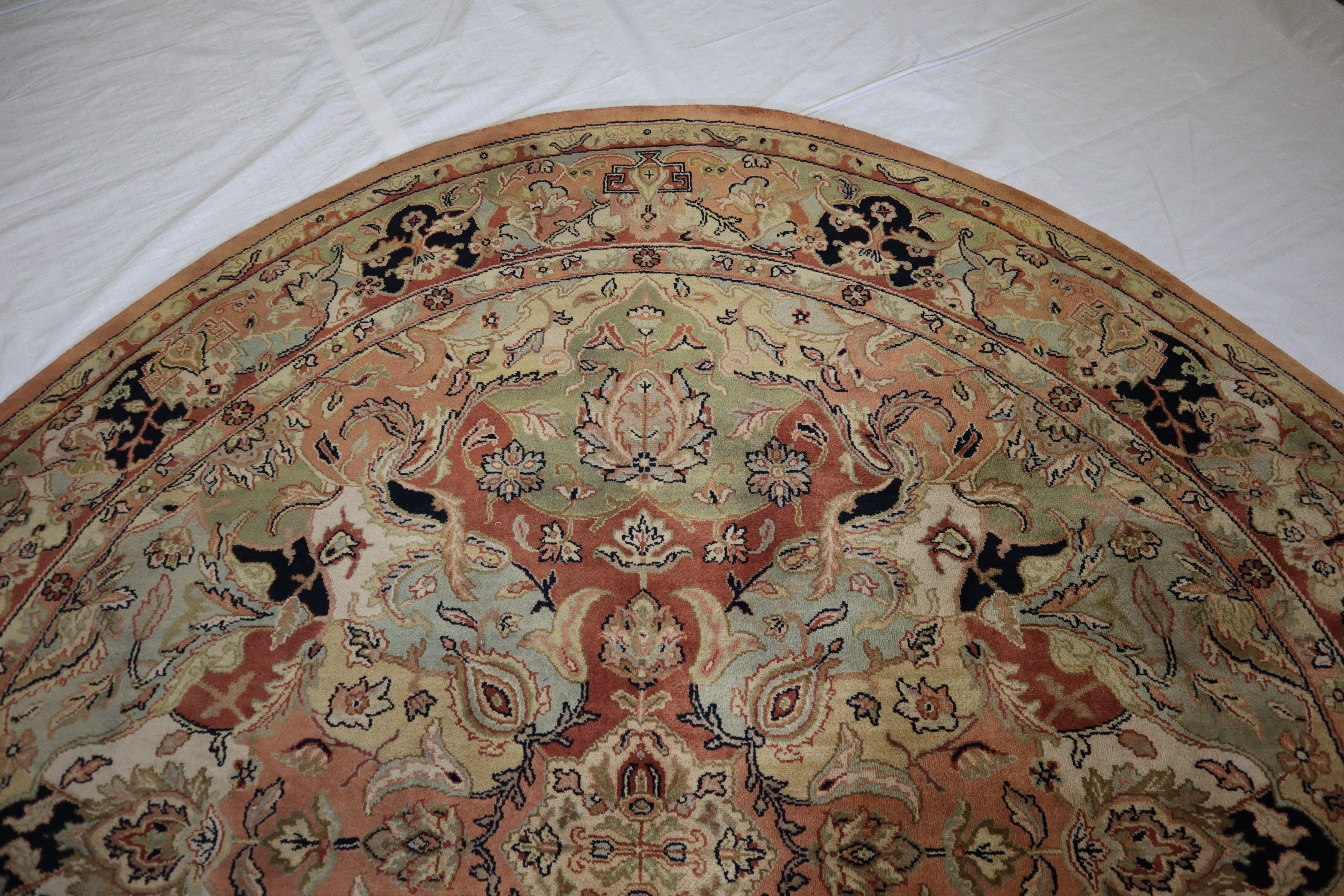This beautiful hand-knotted round rug is made with wool.