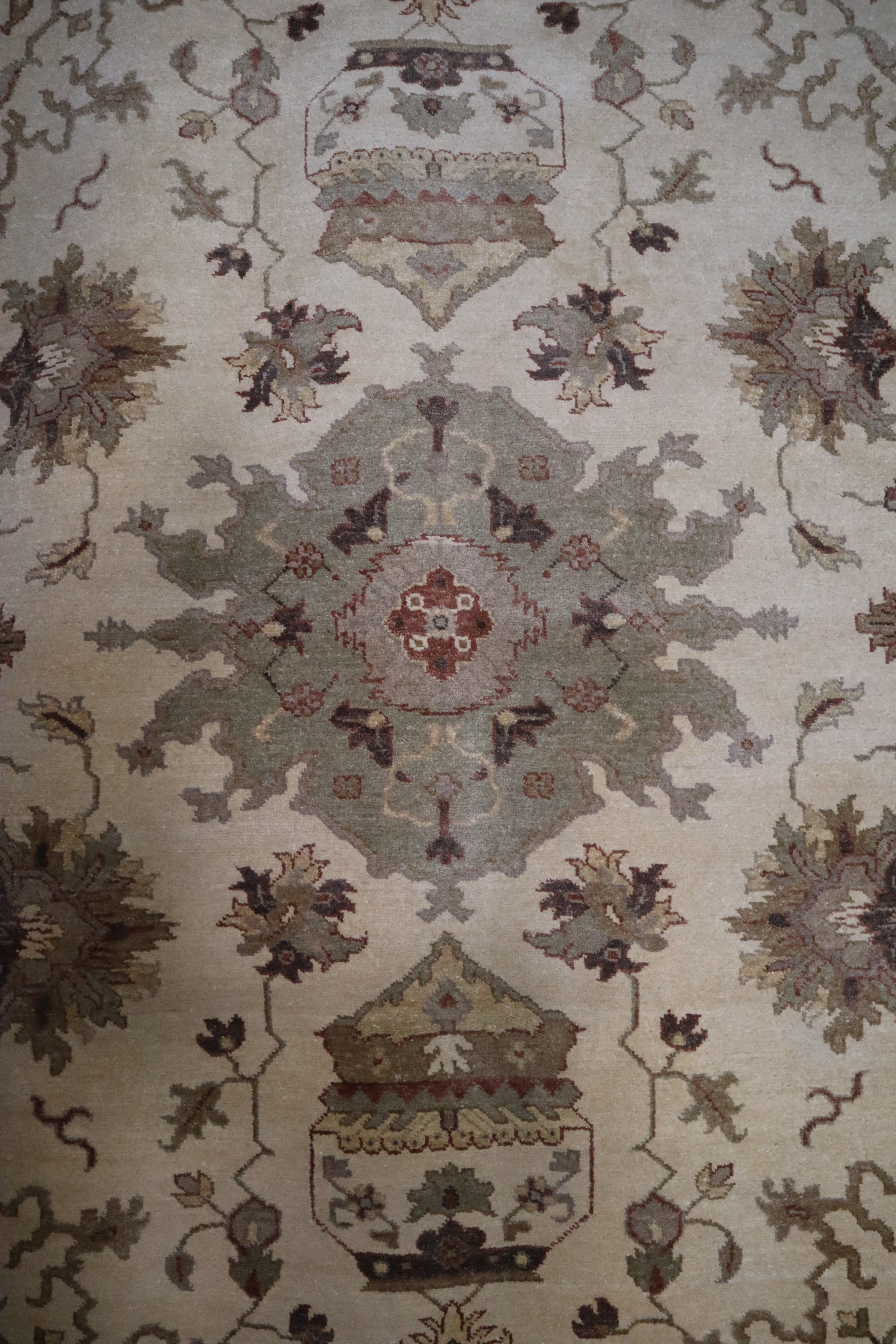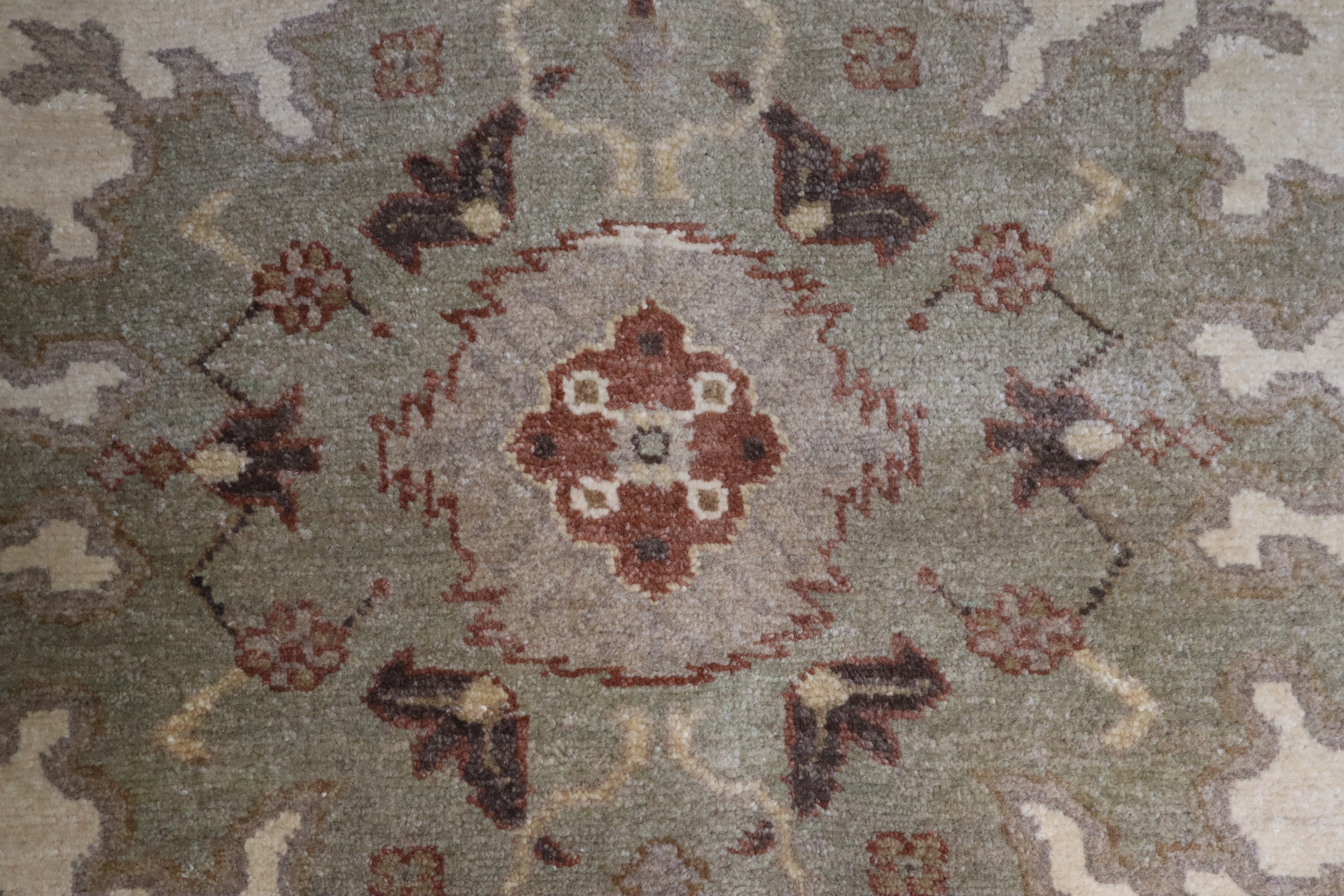 This beautiful hand-knotted rug is made with 100% wool.