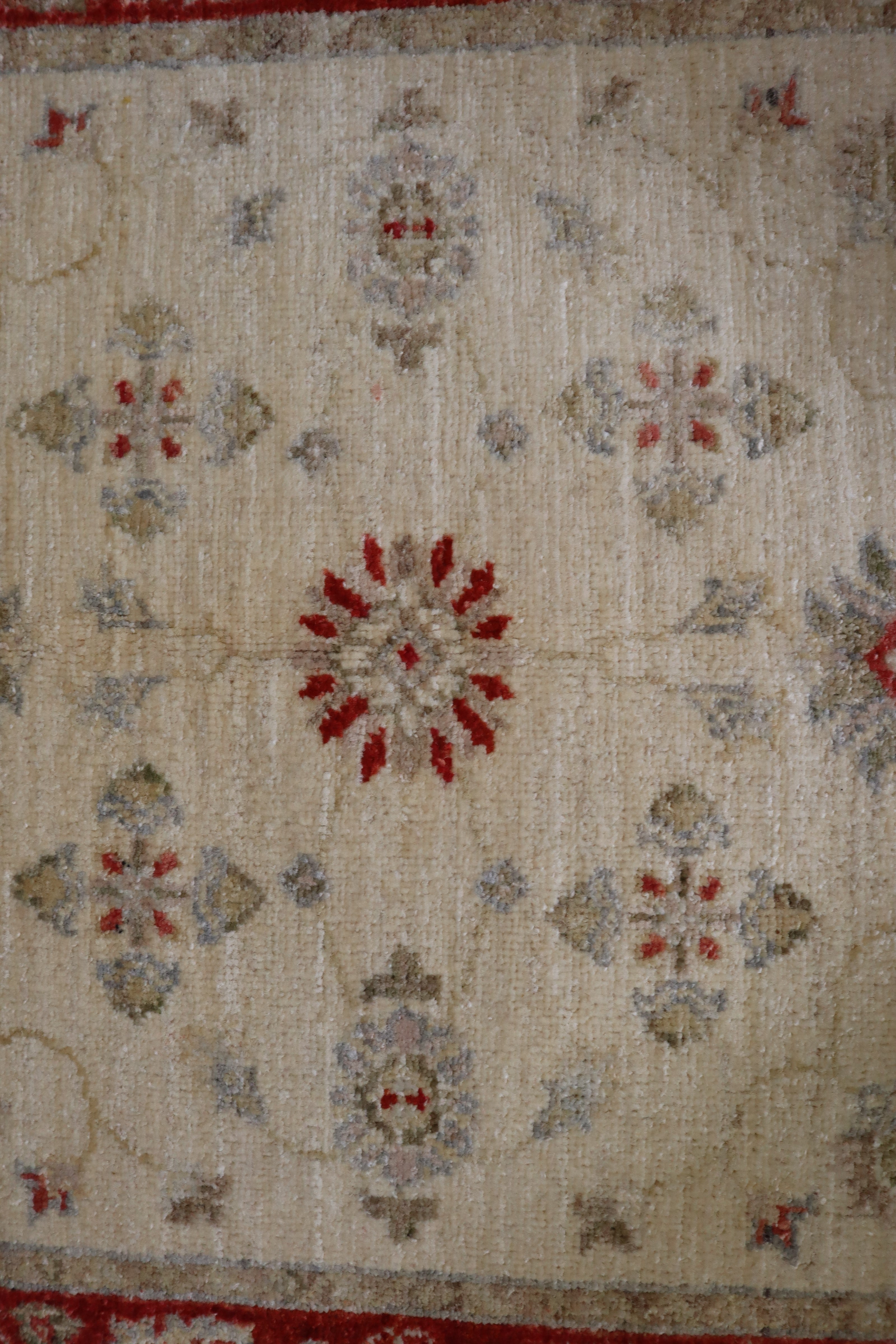 This rug is in excellent condition. Nice colors and patterning. Very natural wool and super colors.