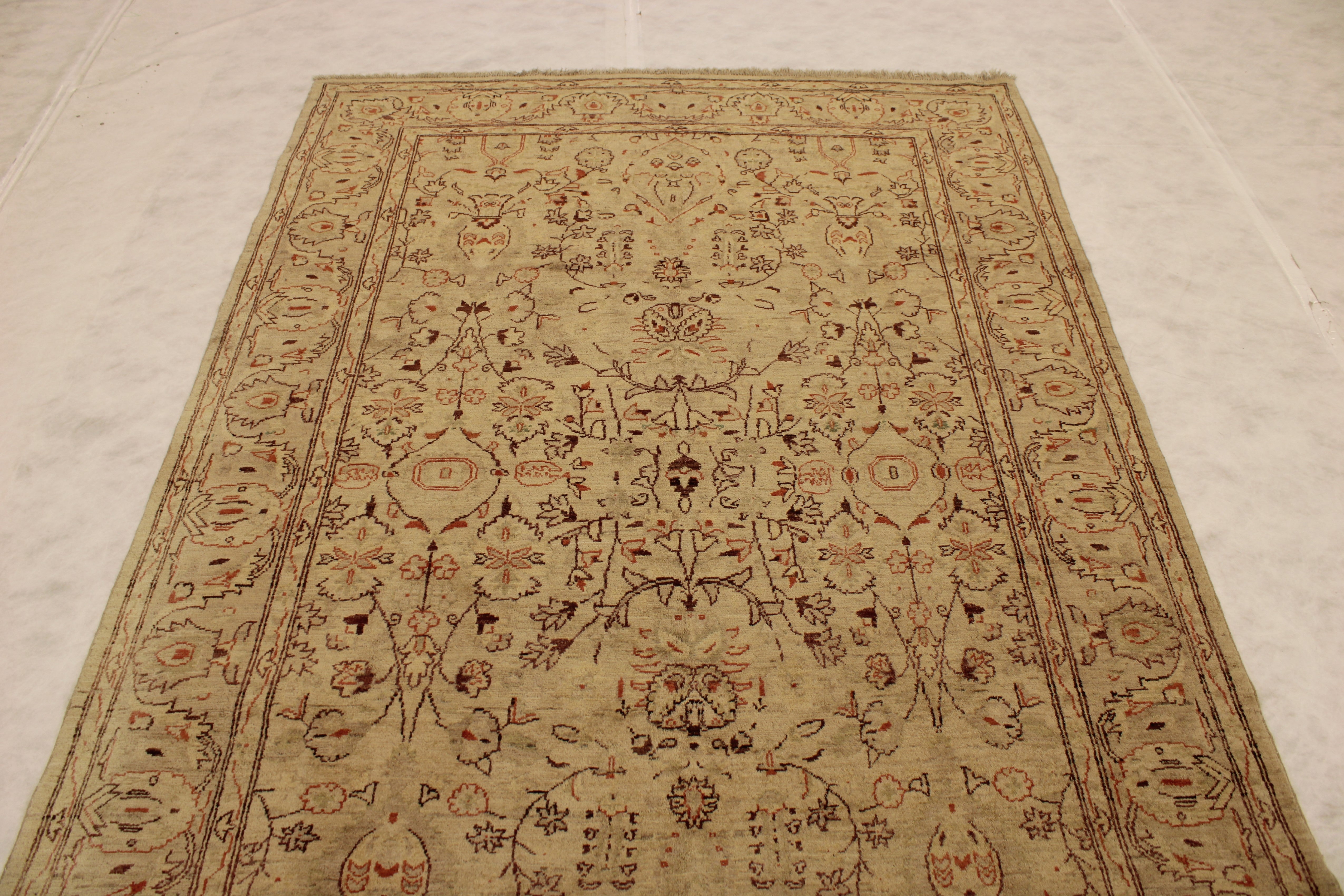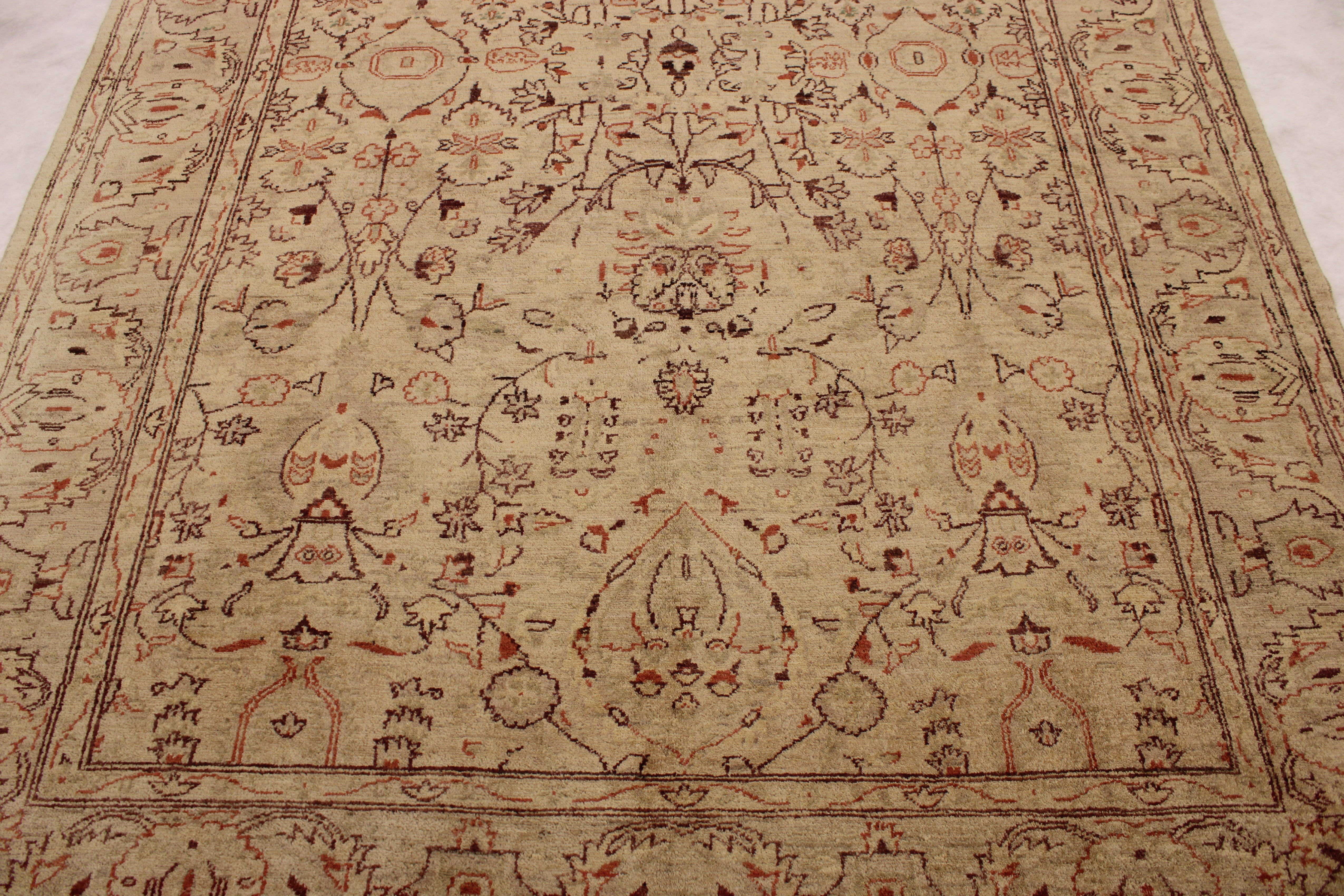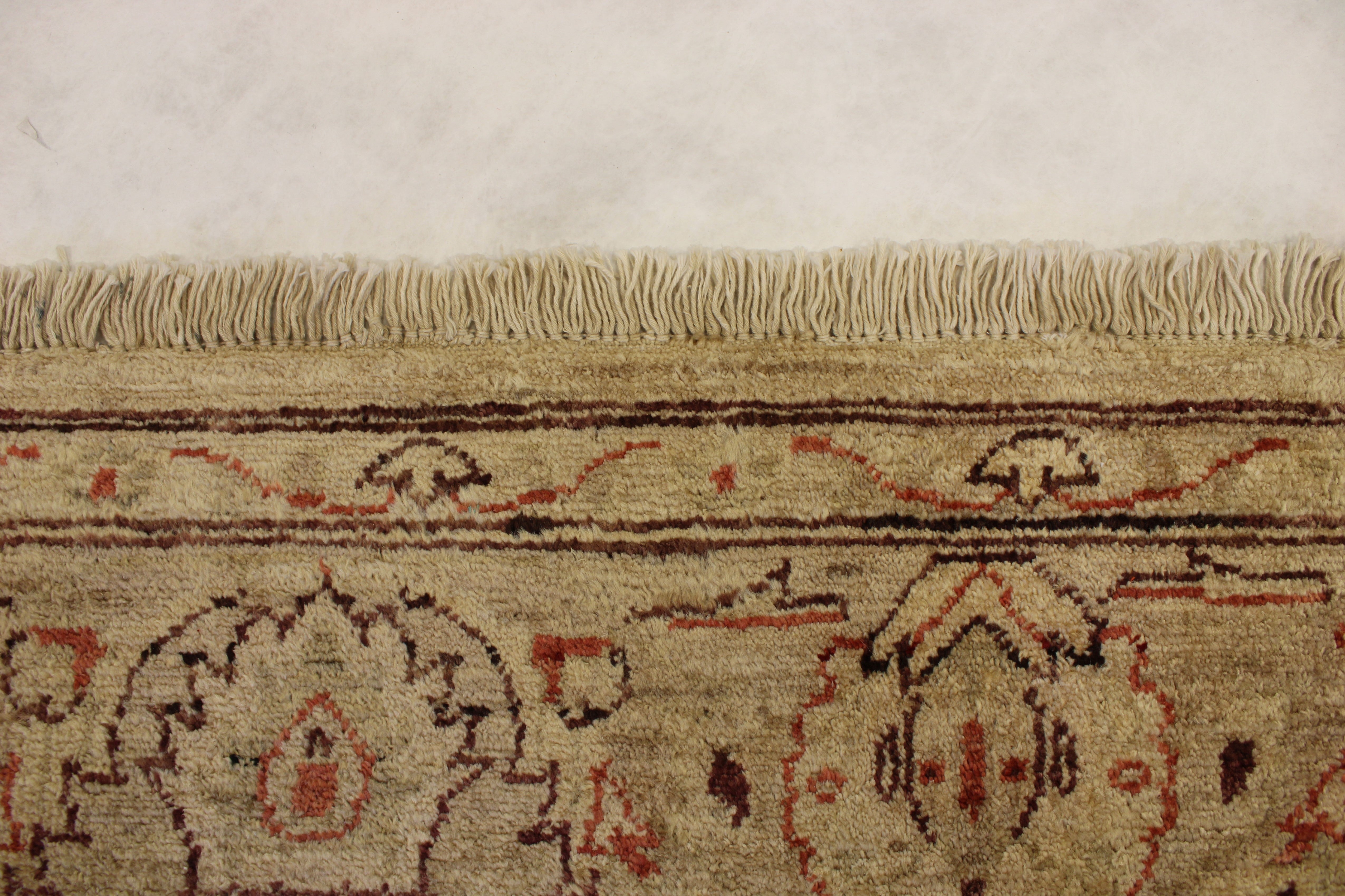 This beautiful hand-knotted rug is made with 100% wool.