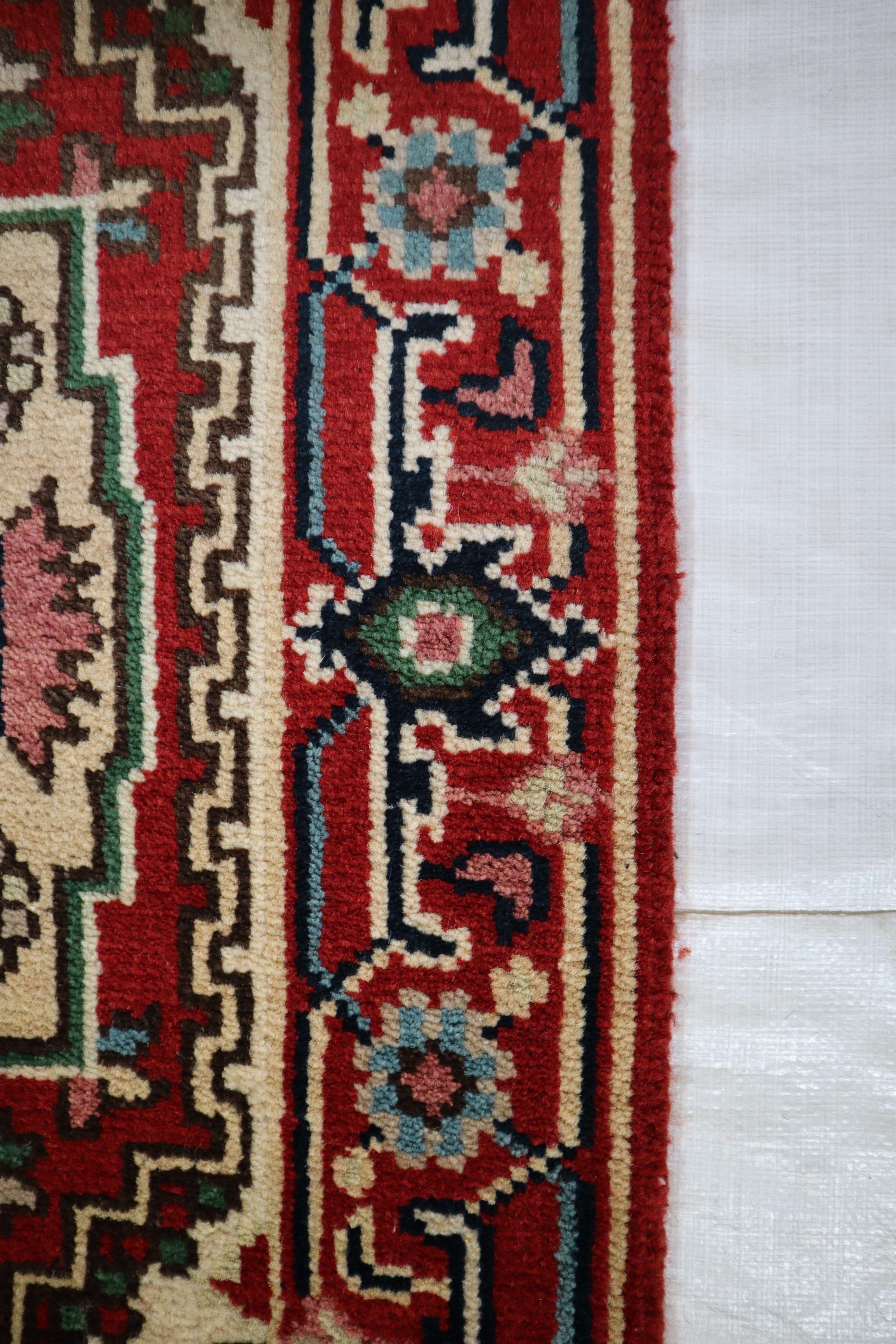 This rug is in excellent condition. Nice colors and patterning. Very natural wool and super colors.