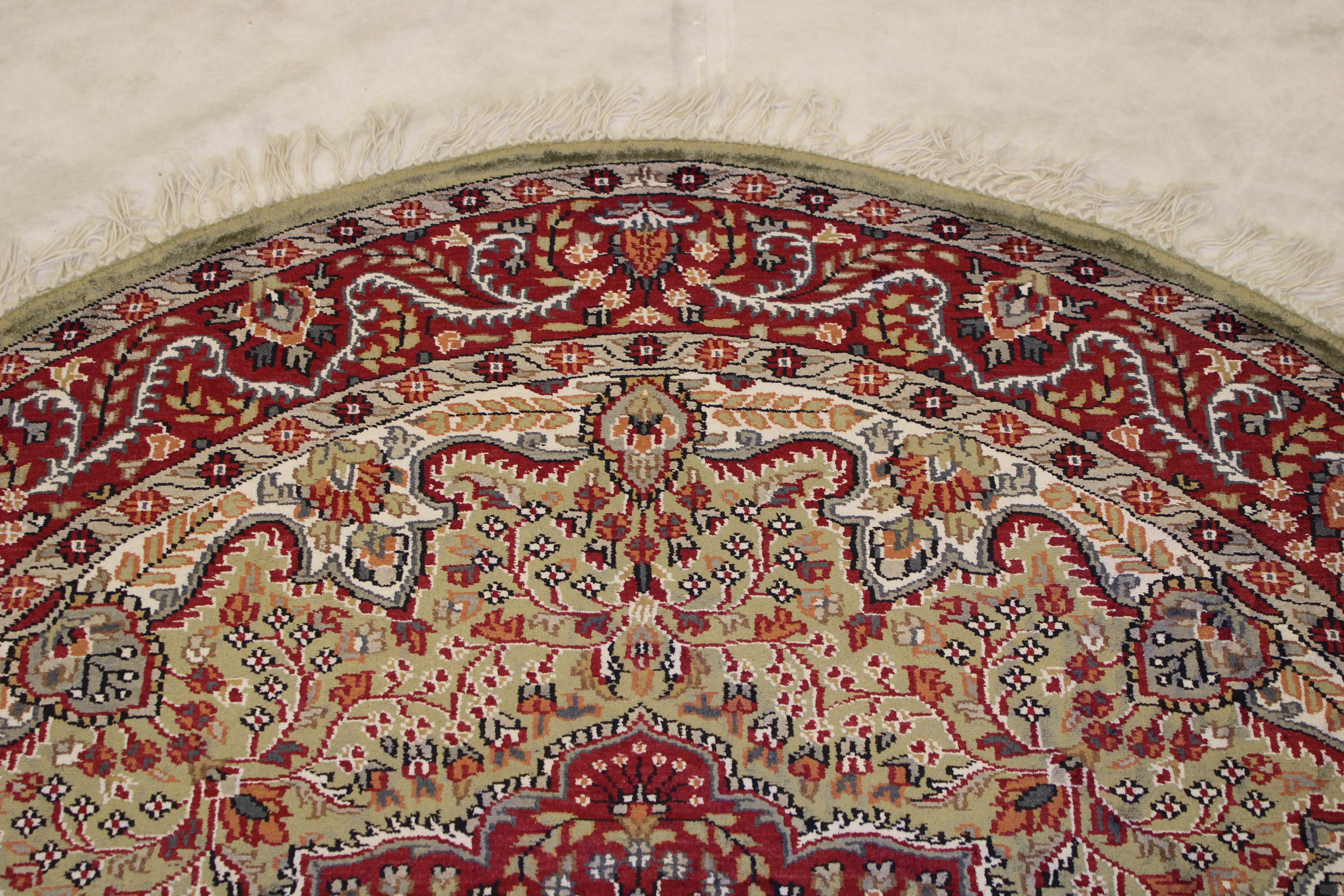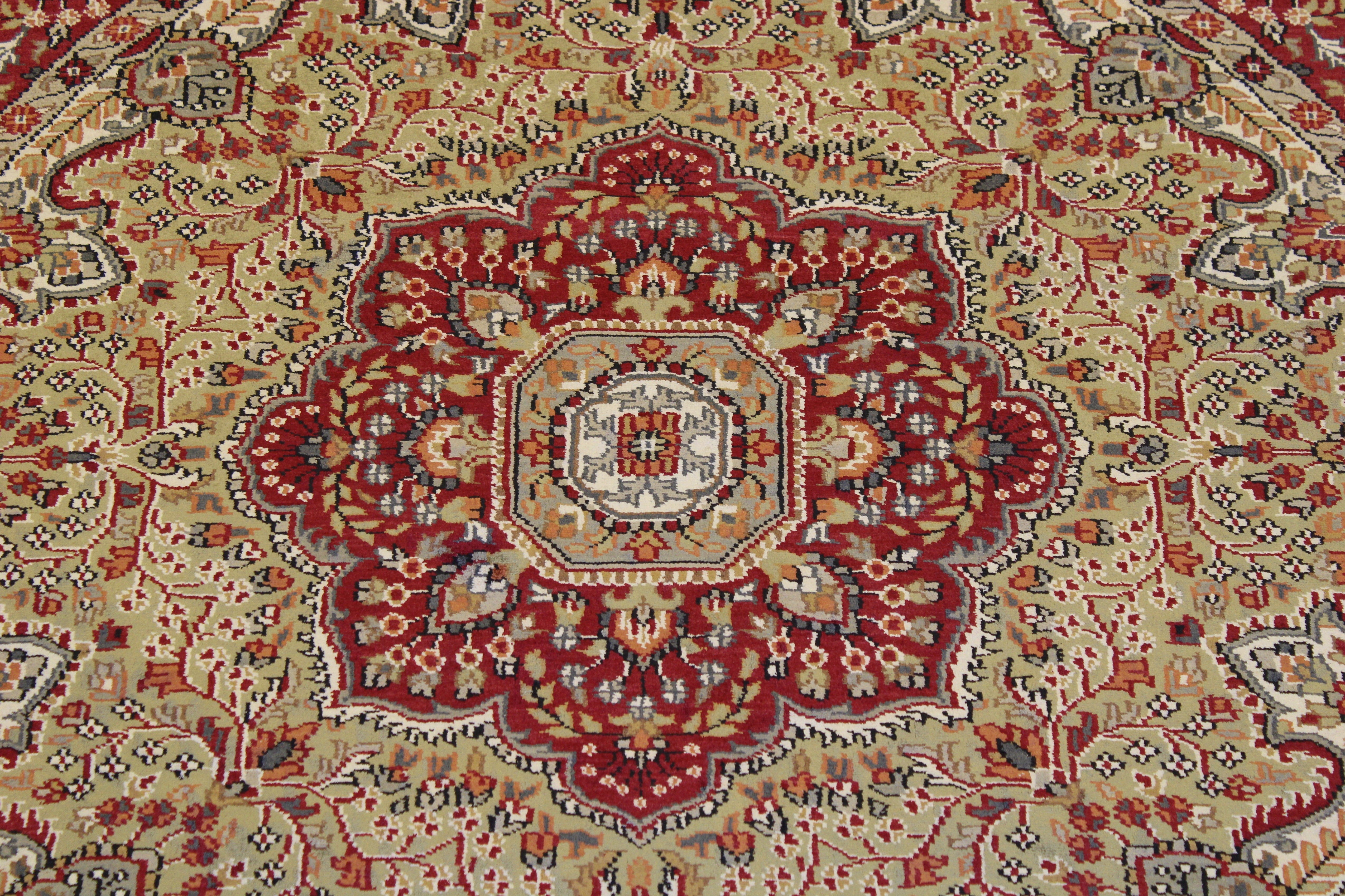 This beautiful hand-knotted rug is made with wool.