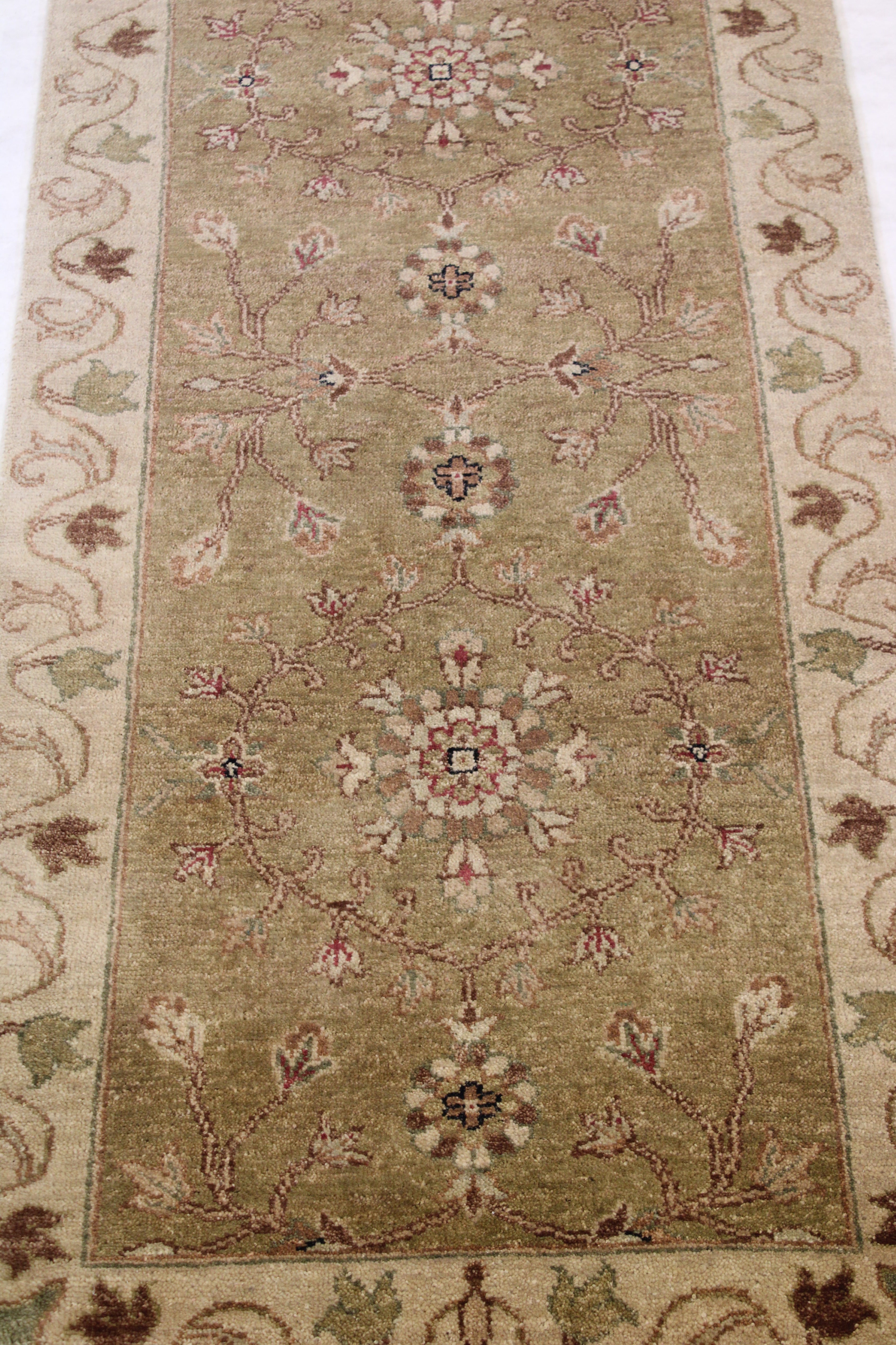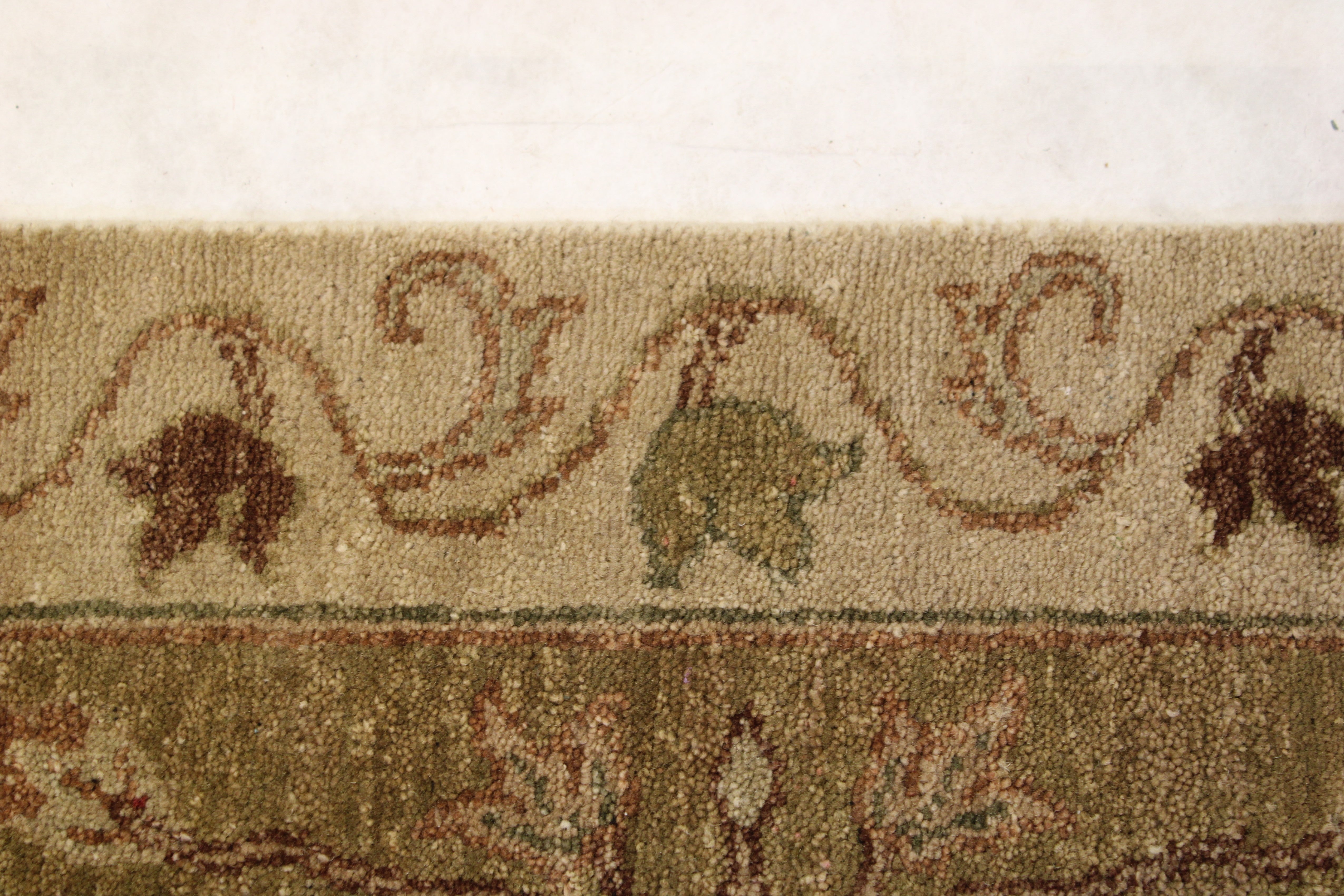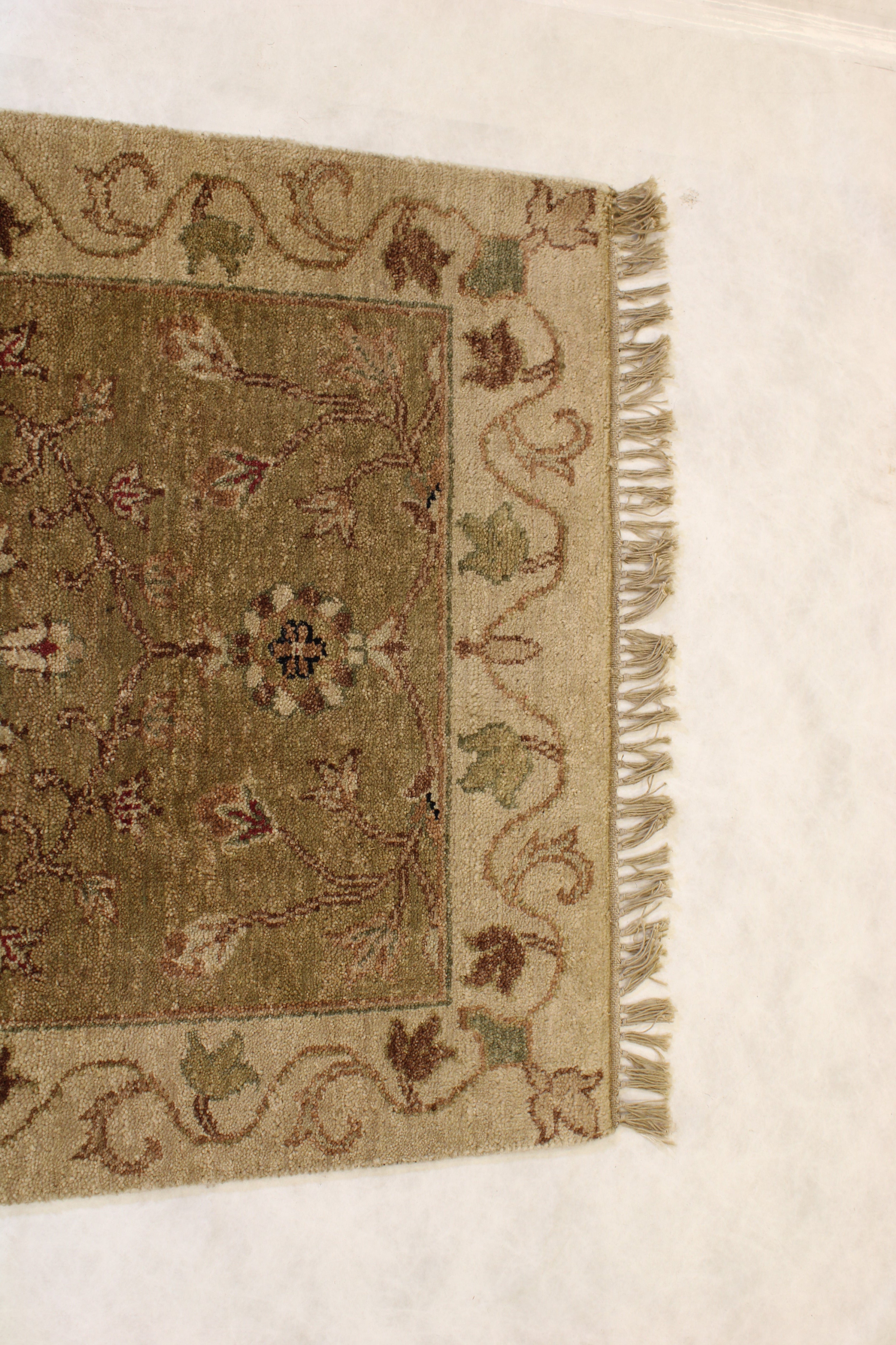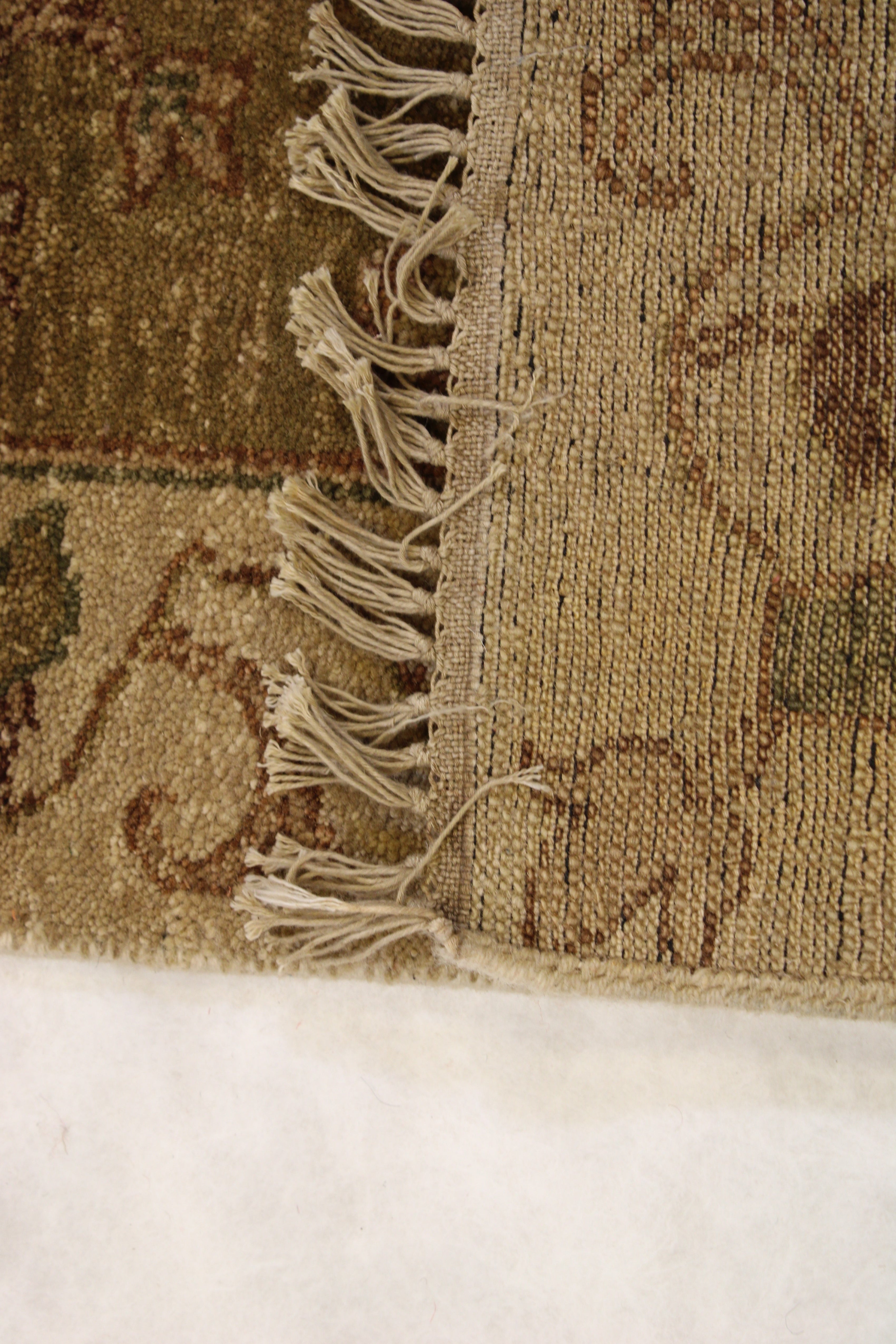 This beautiful hand-knotted rug is made with wool.