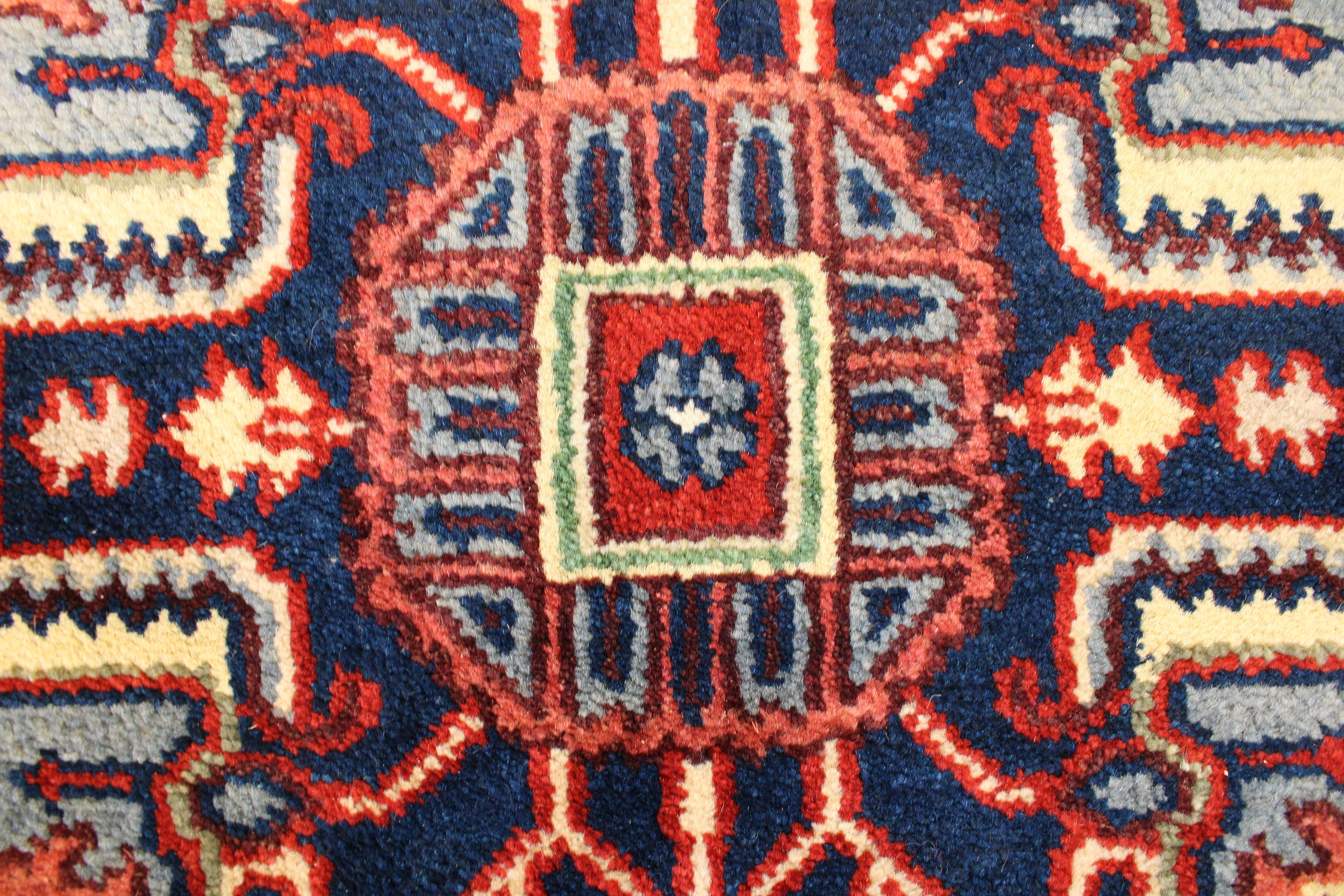 This rug is in an excellent condition. Nice colors and patterning. Very natural wool and super colors.