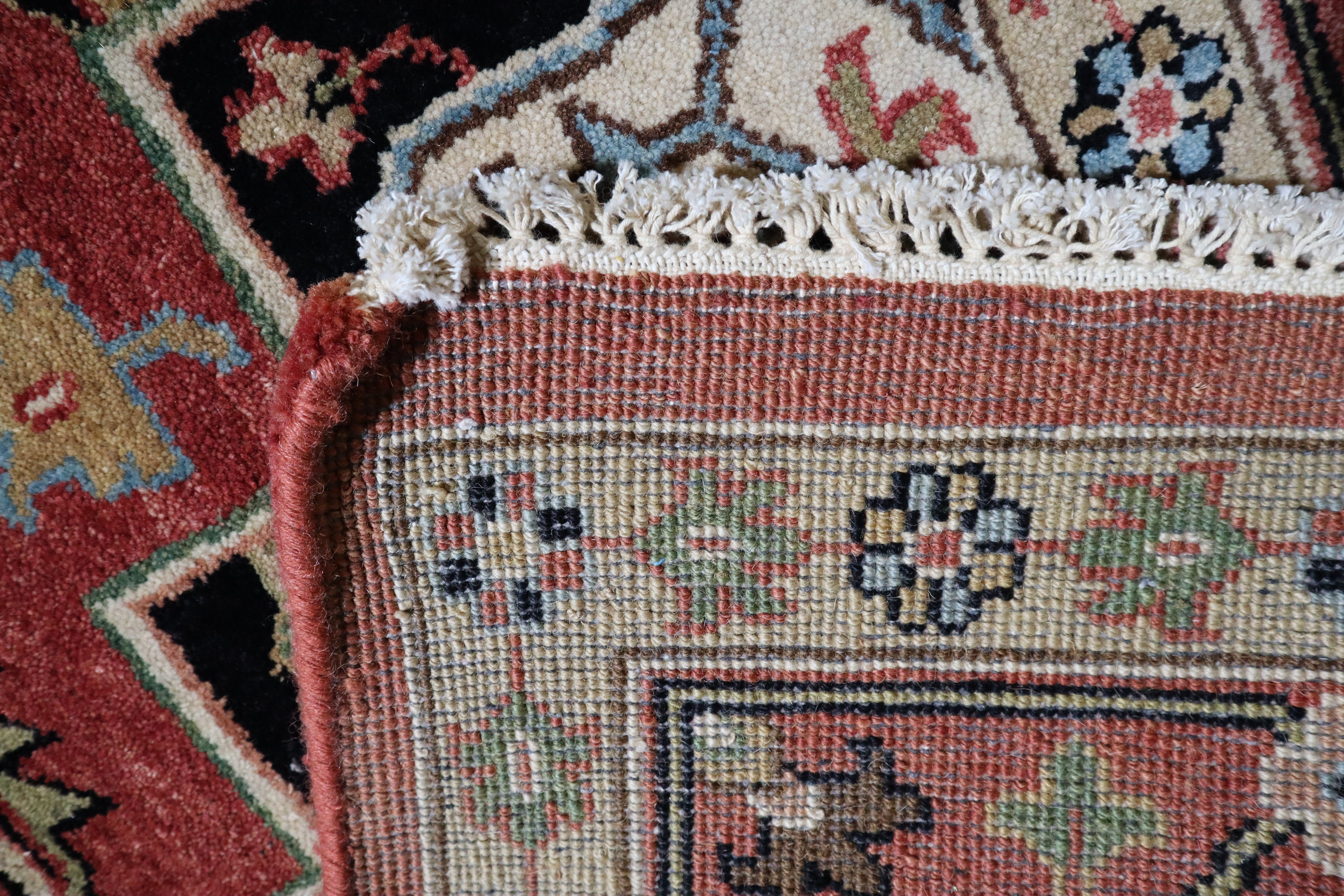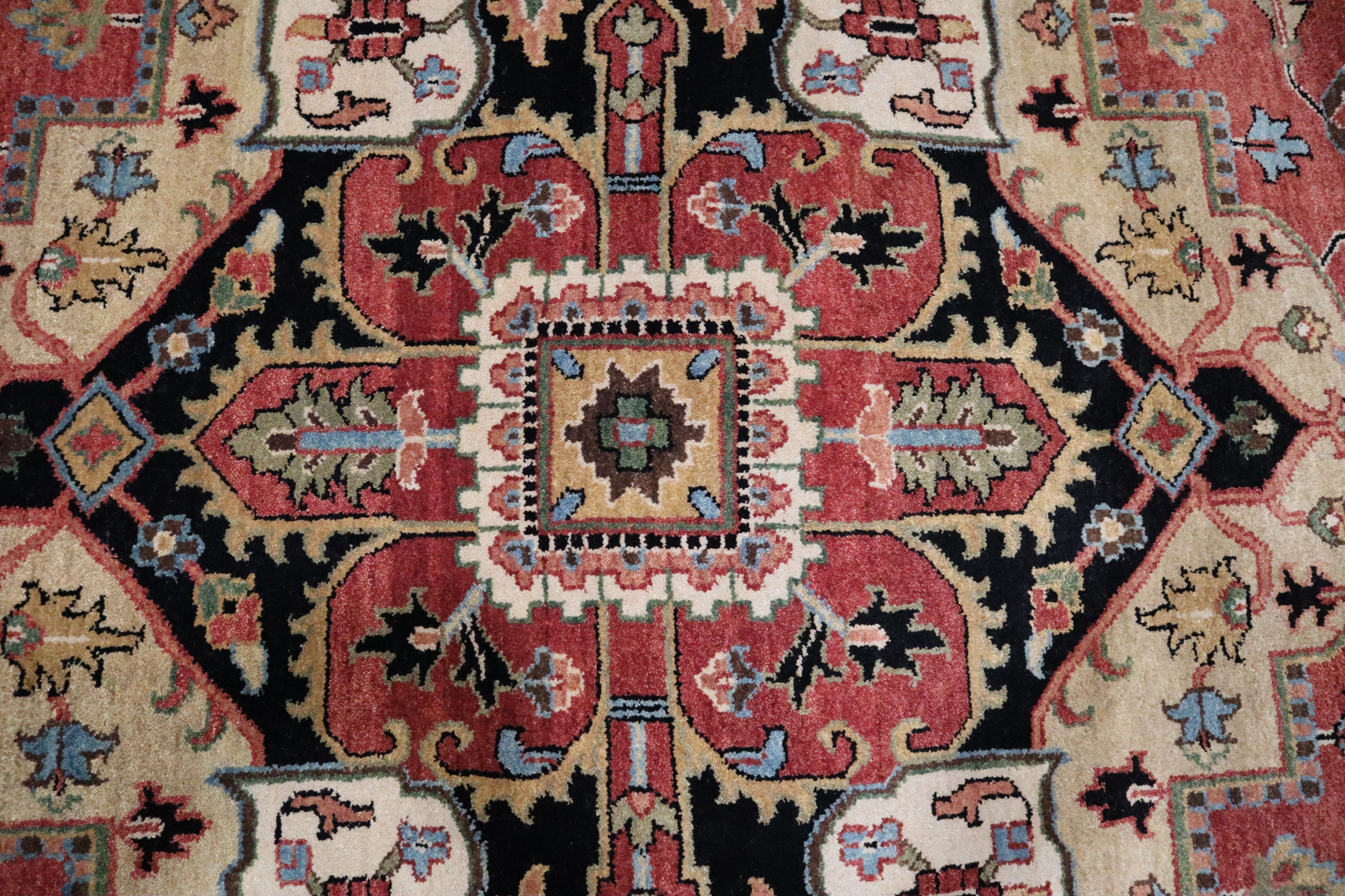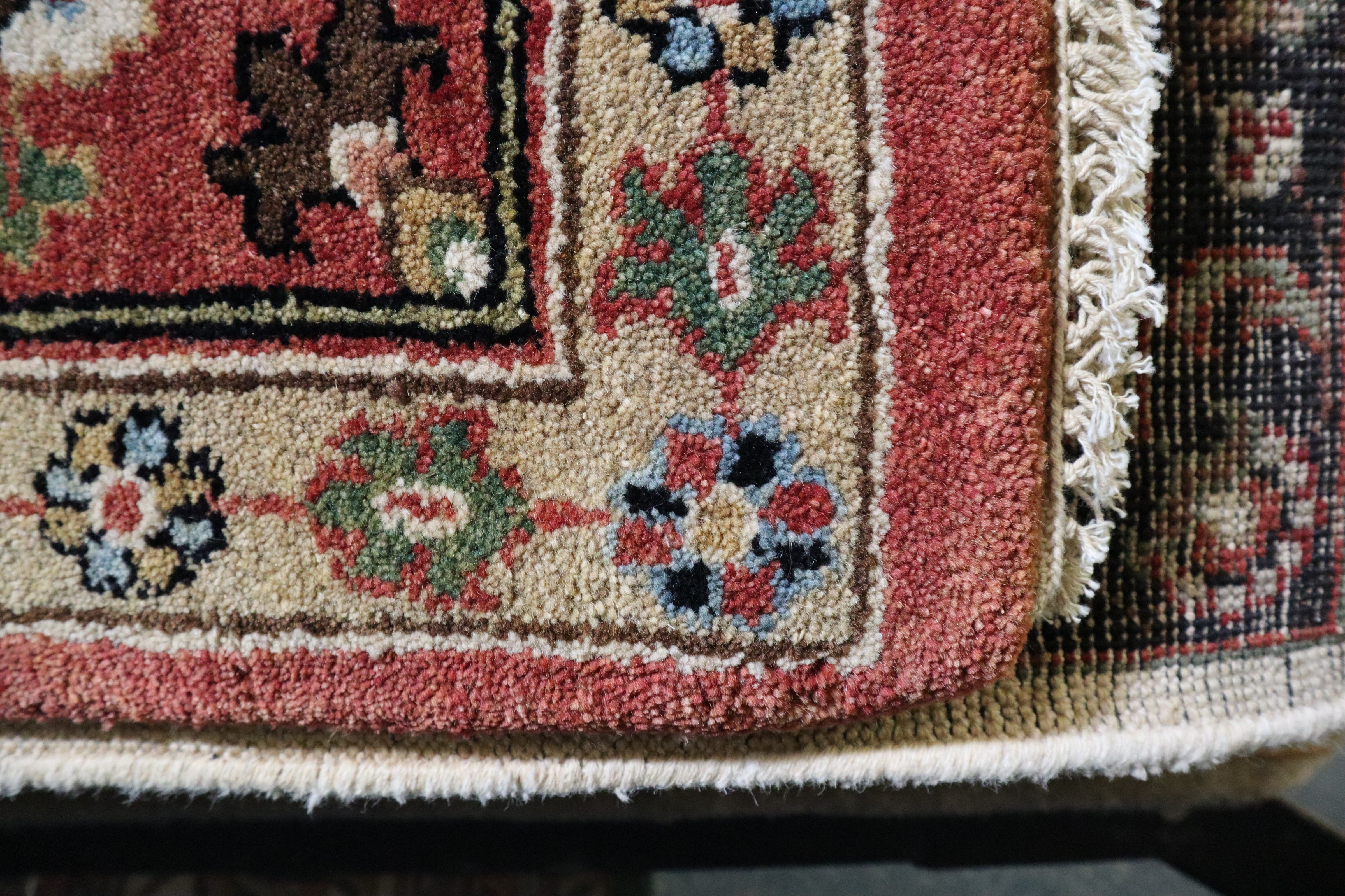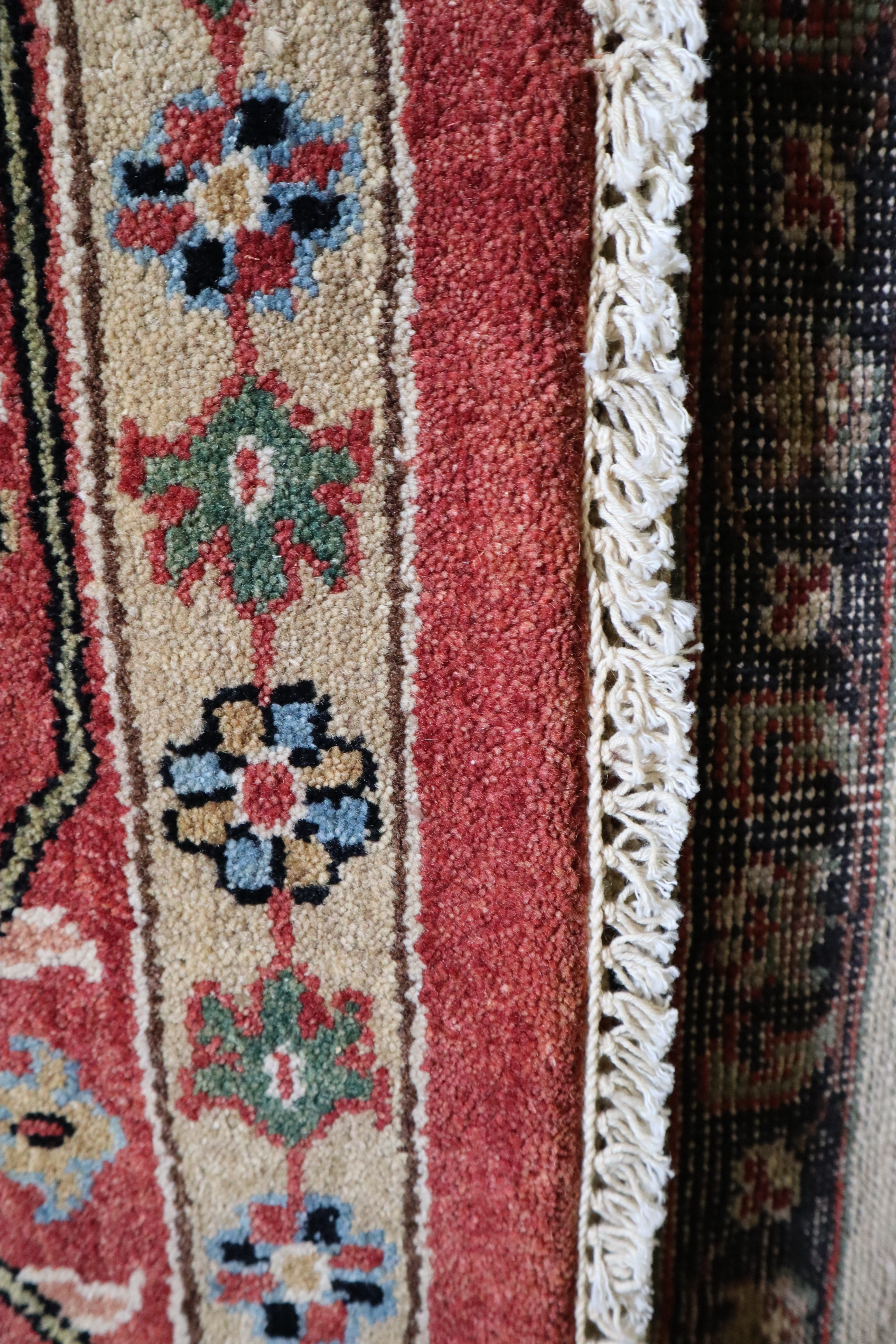 This beautiful hand-knotted rug is made with 100% wool.