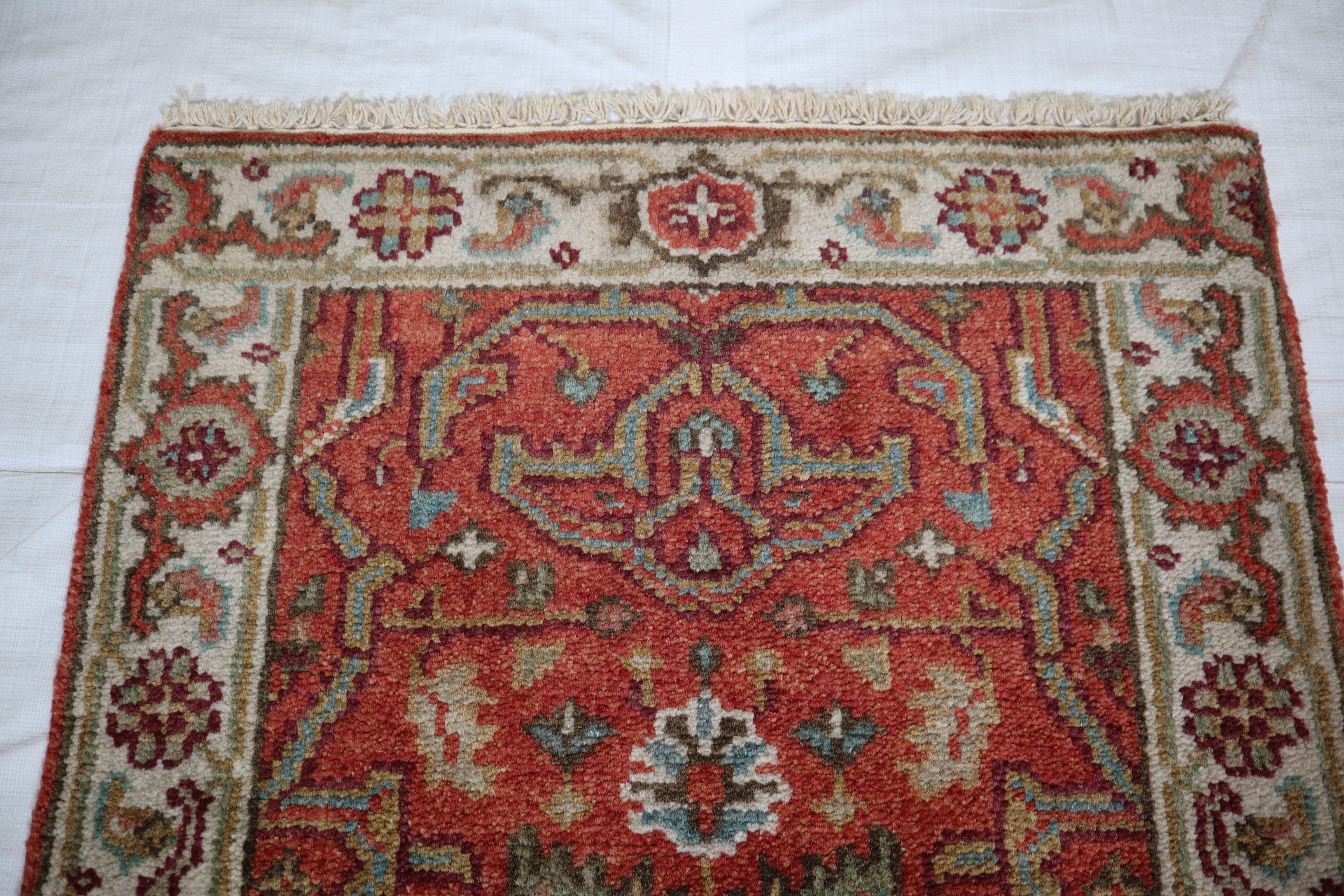 This rug is in excellent condition. Nice colors and patterning. Very natural wool and super colors.