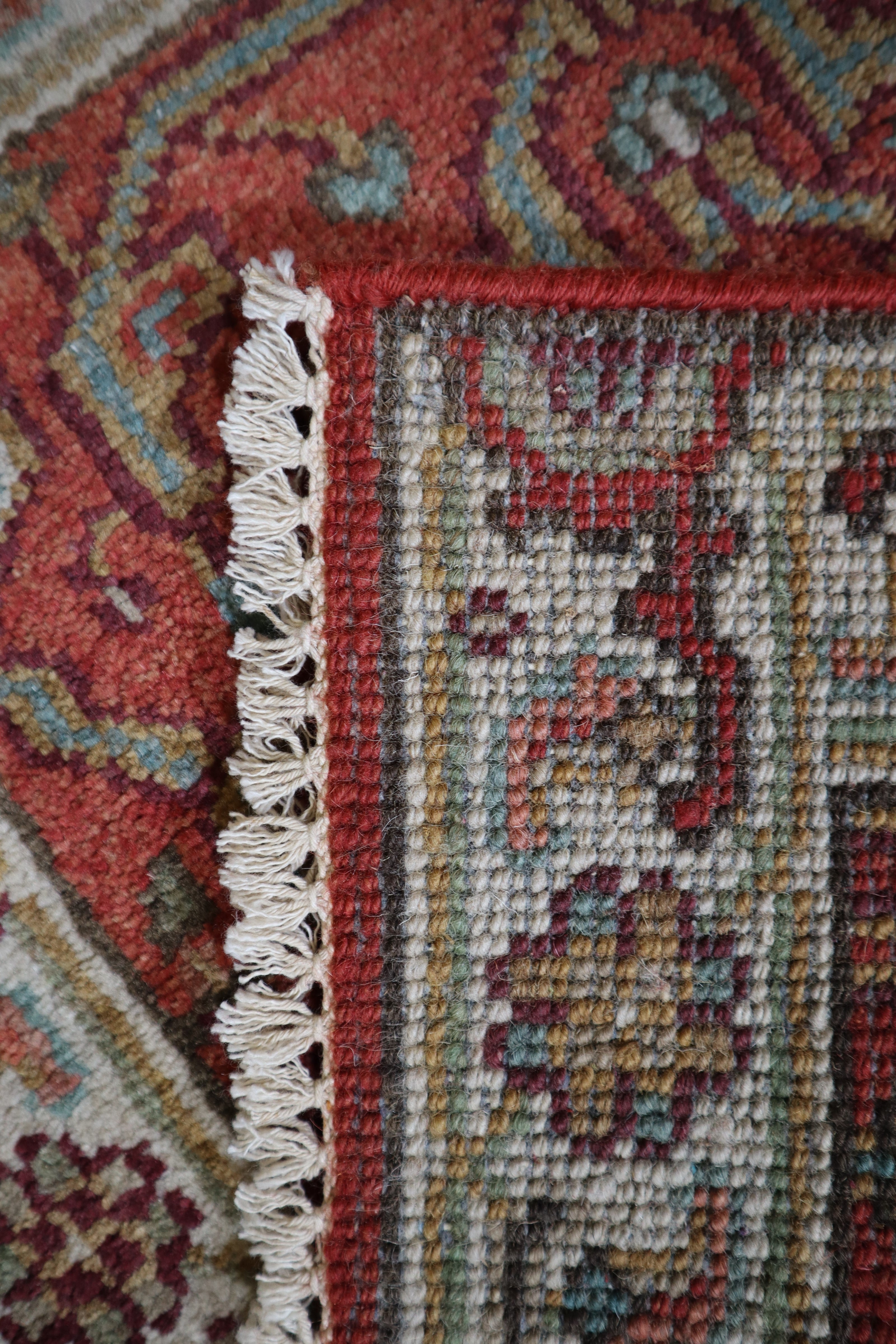 This beautiful hand-knotted rug is made with 100% wool.