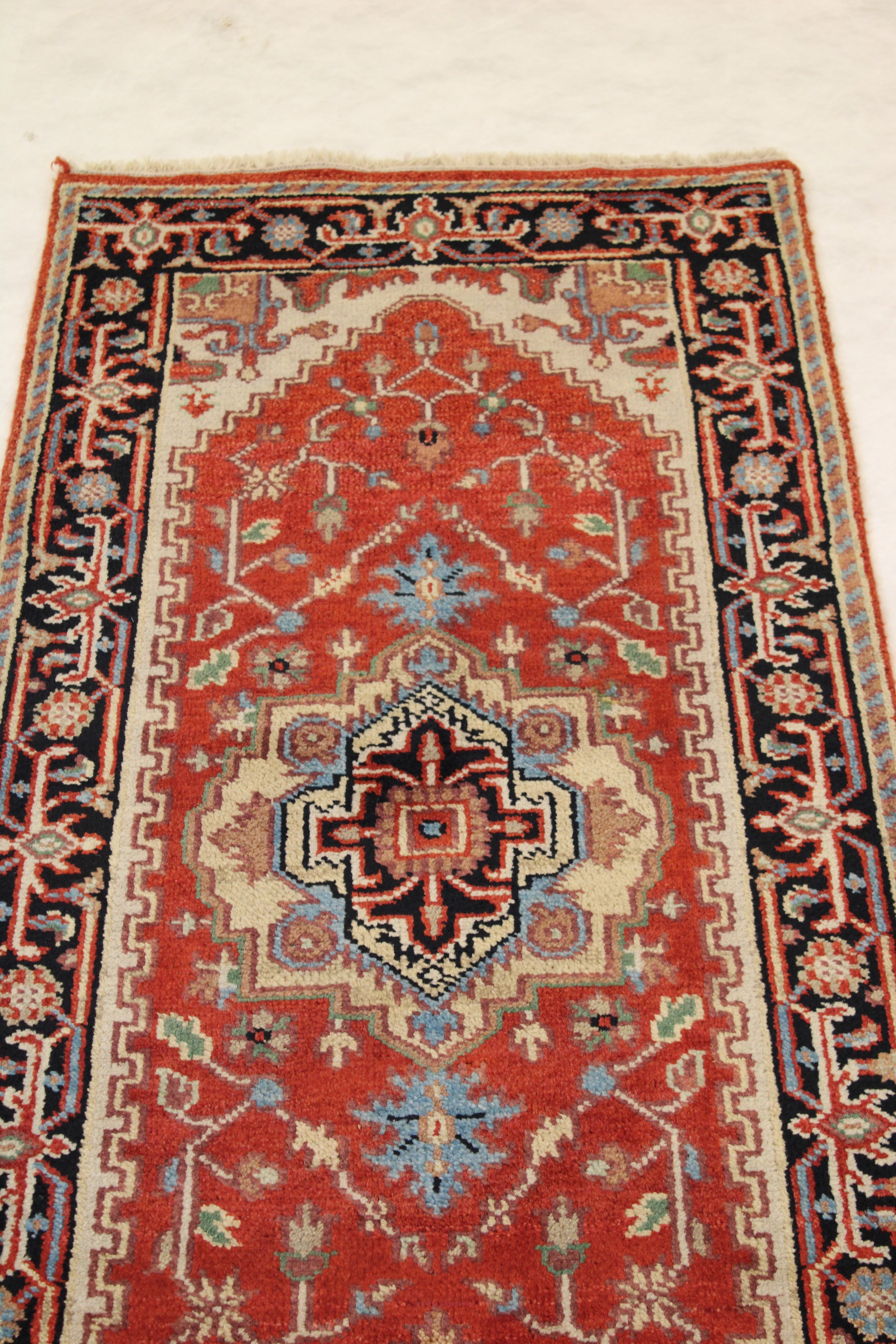 This beautiful hand-knotted rug is made with 100% lamb's wool.