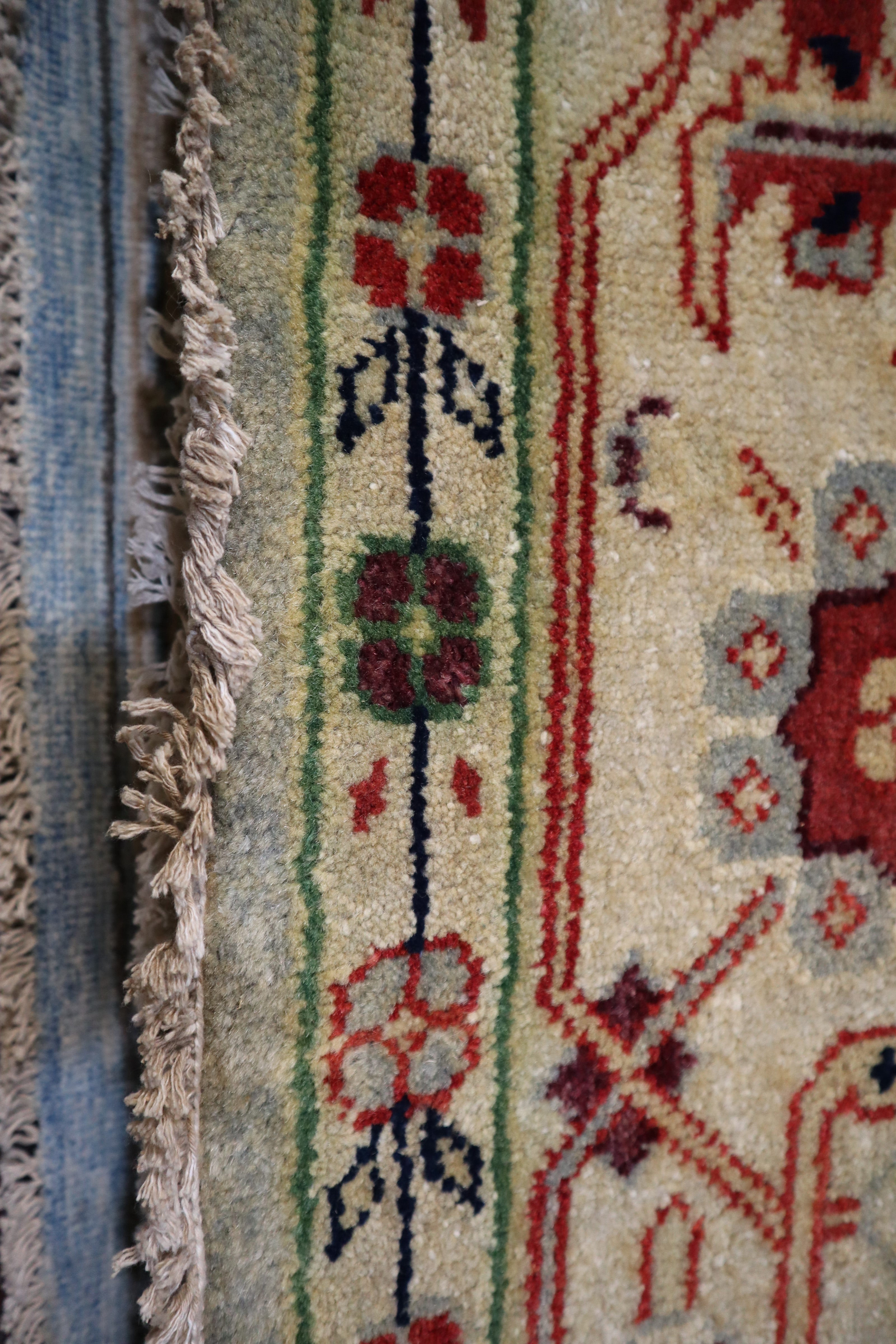 This rug is in excellent condition. Nice colors and patterning. Very natural wool and super colors.